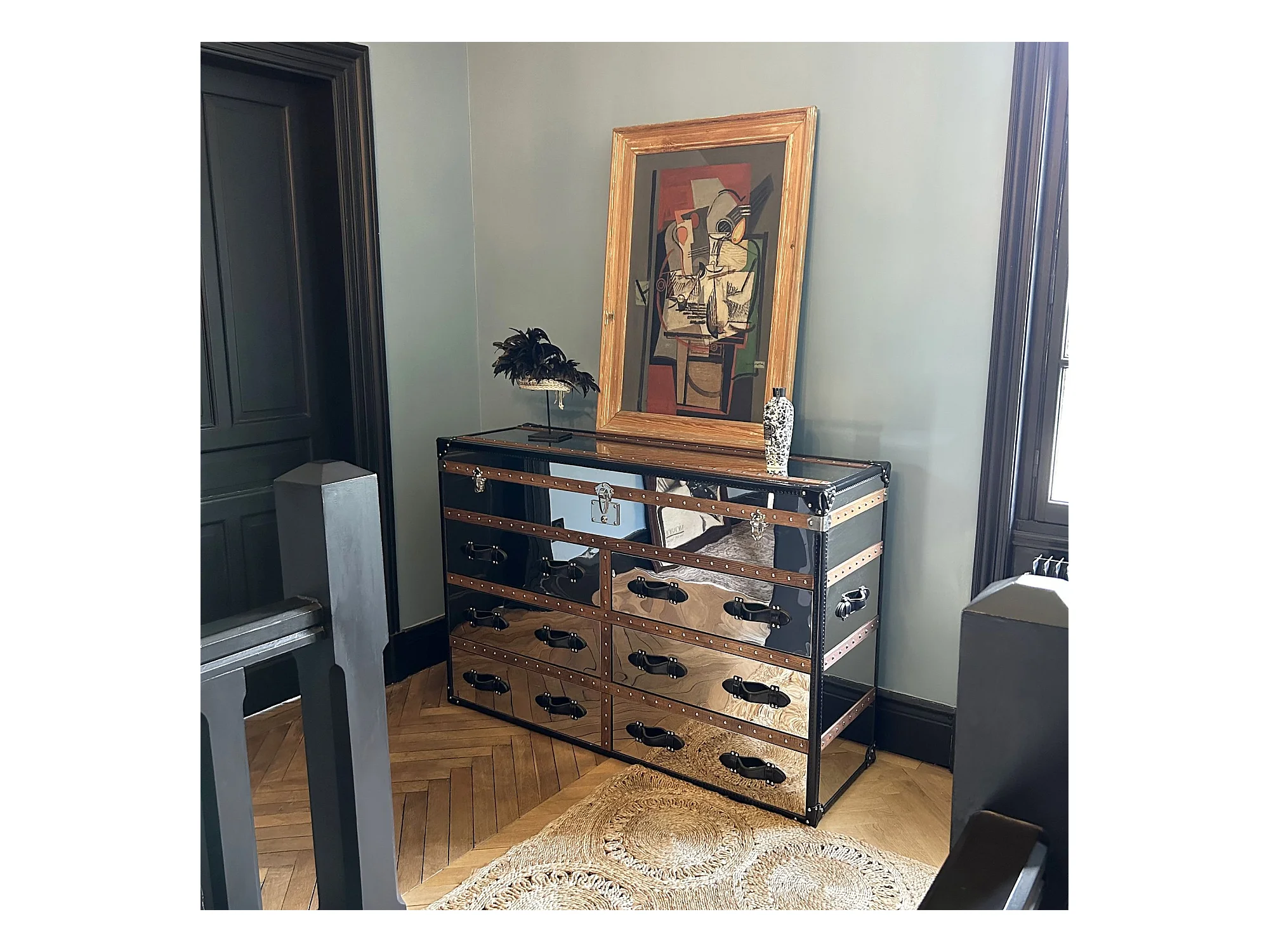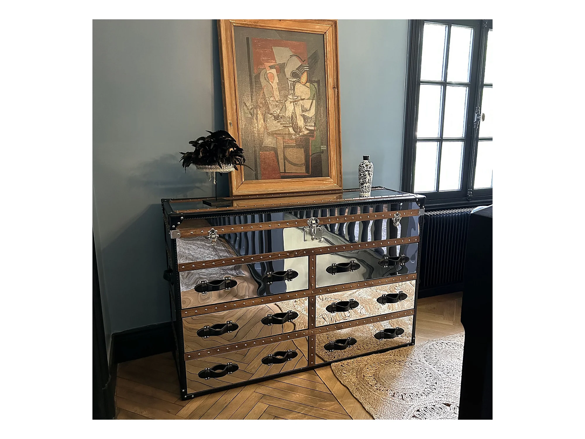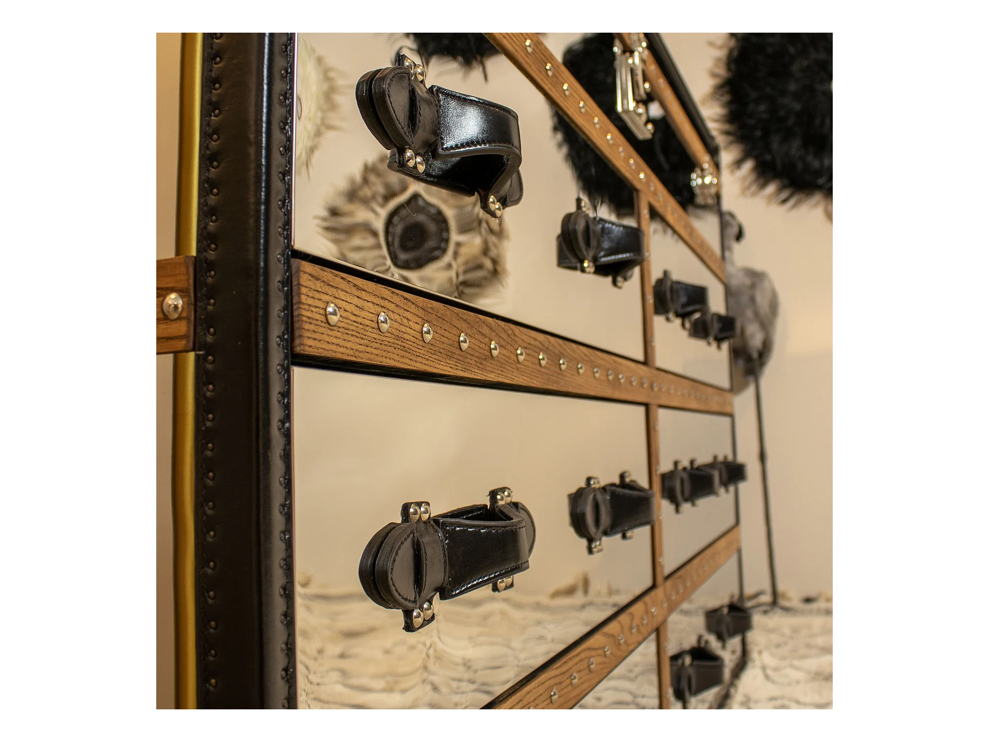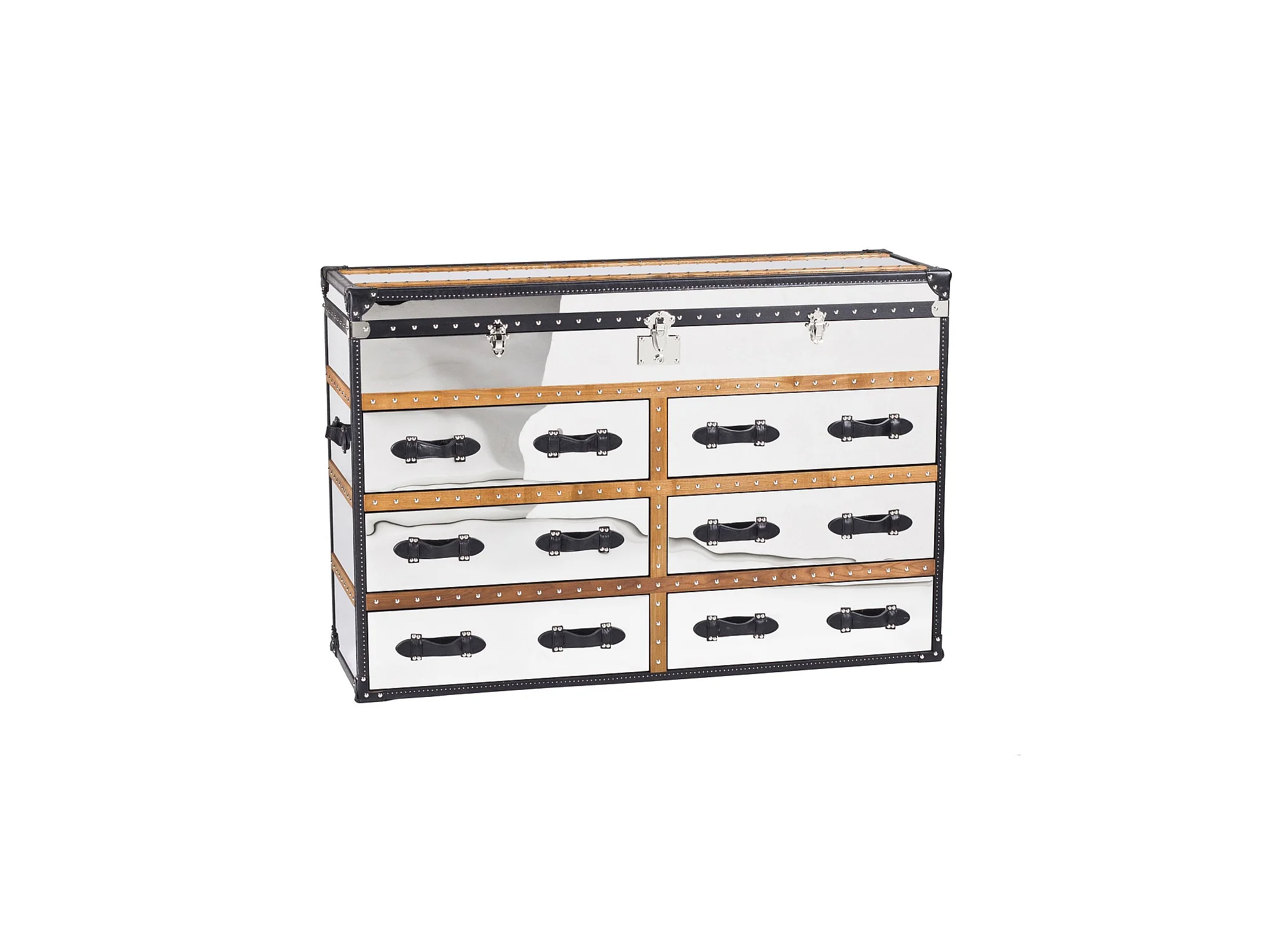 Now's Home - Commode Coffre Iliade 6tiroirs 150x49xht100cm Cuir Marron,a/inoxydable