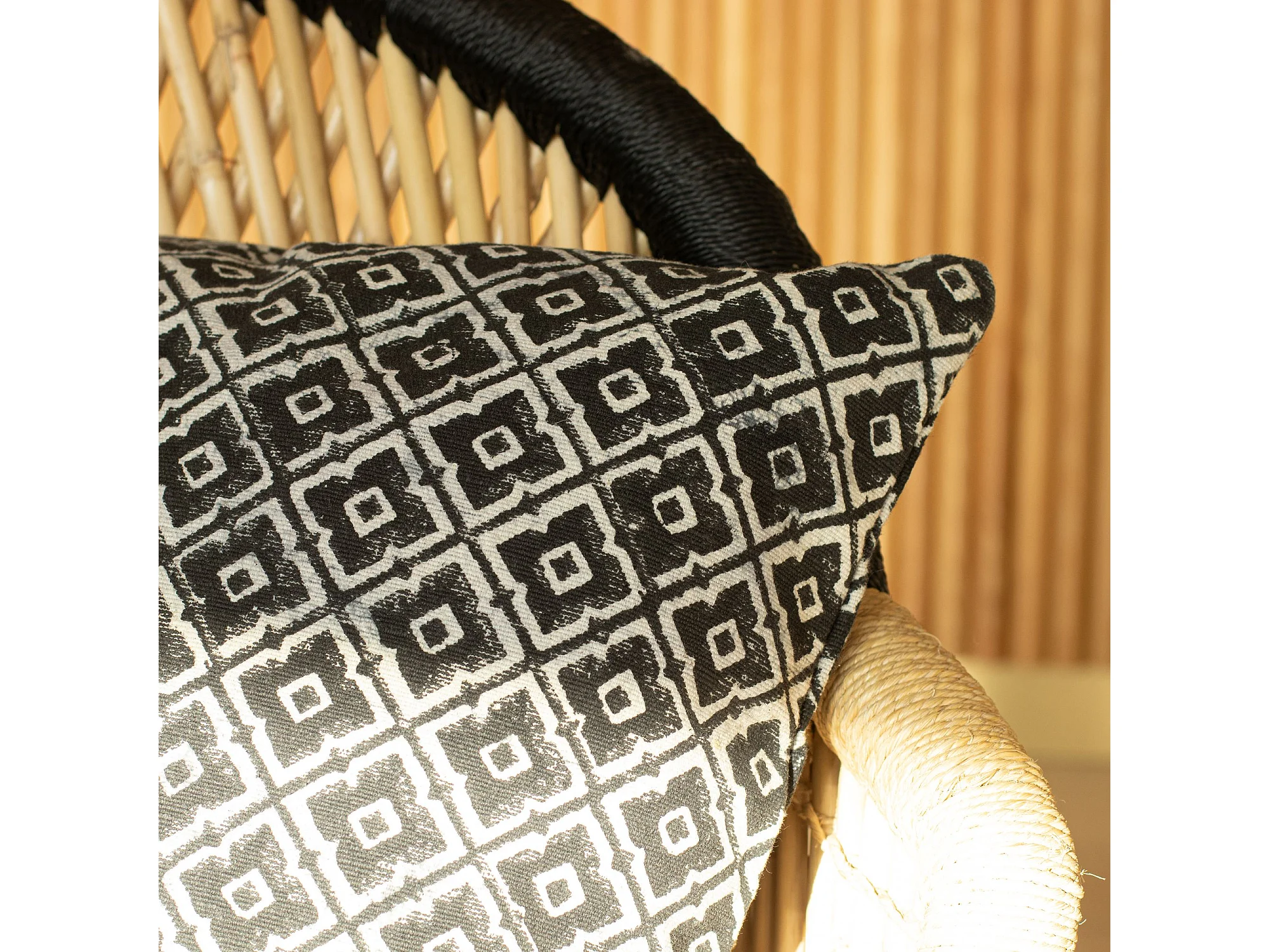 Now's Home - Coussin En Coton Imprime Bleu Et Noir 4 Pompons 45x45 Cm Wild