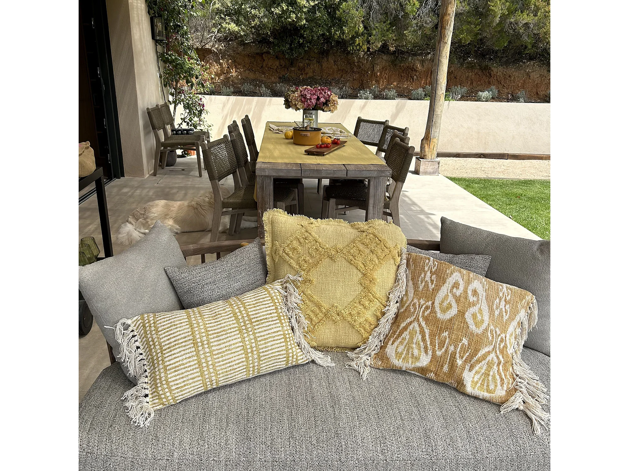 Now's Home - Coussin En Coton Tisse Frangé Jaune Mimosa 45x45cm Candido
