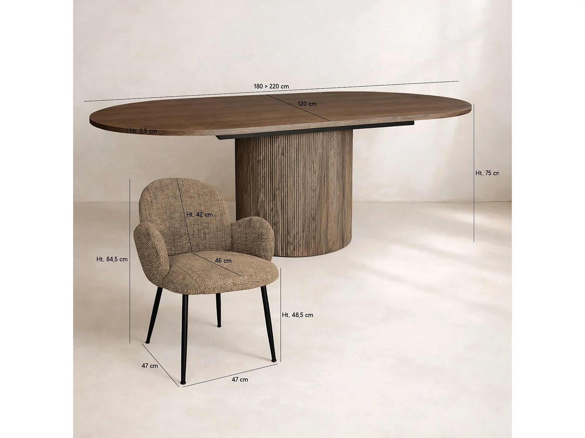 Now's Home - Ensemble Table Ovale Extensible Et 6 Fauteuils En Tweed