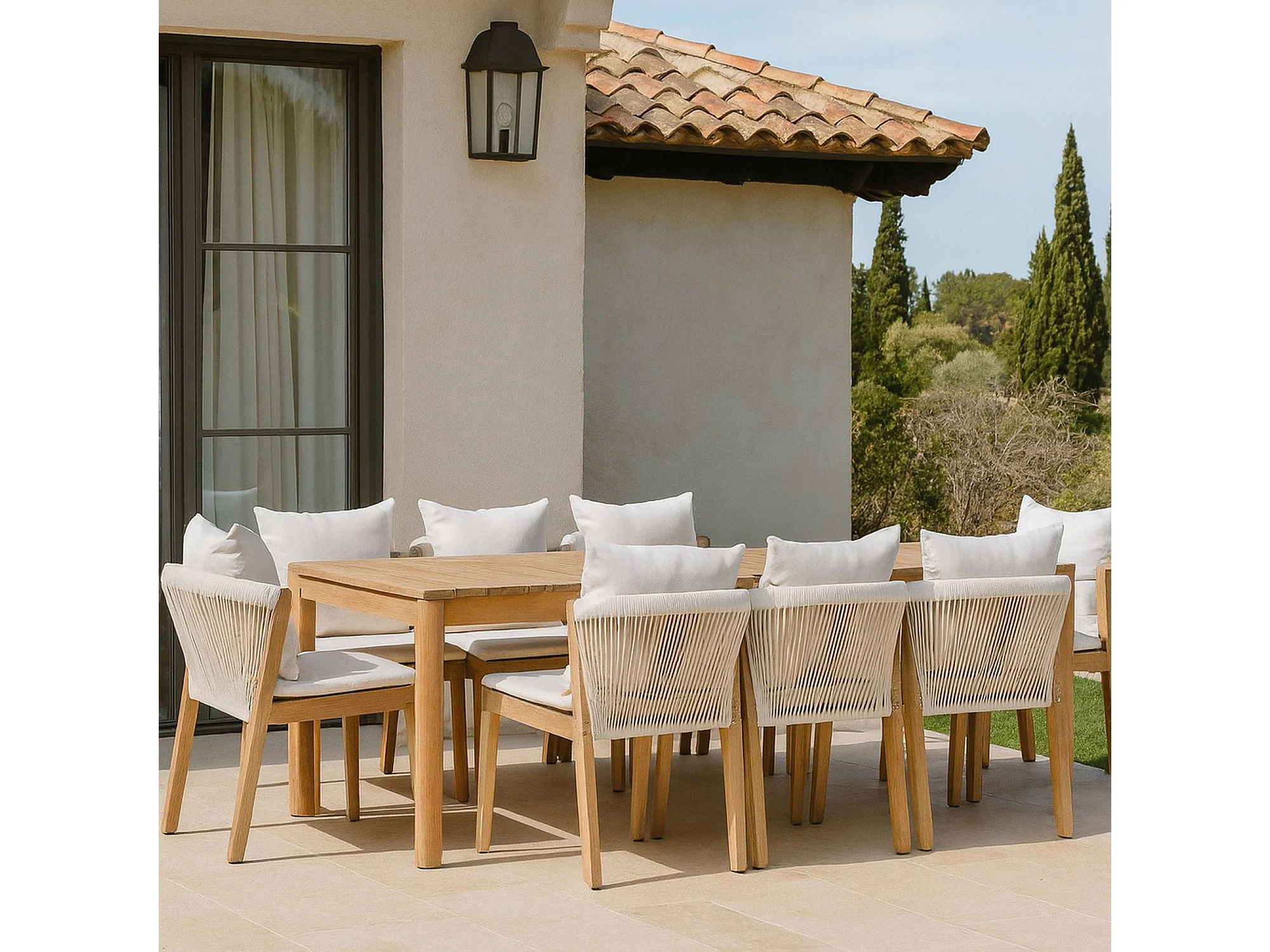 Now's Home - Ensemble De Jardin Table 2m+ 8 Chaises En Acacia Avec Coussin Blanc Fidji