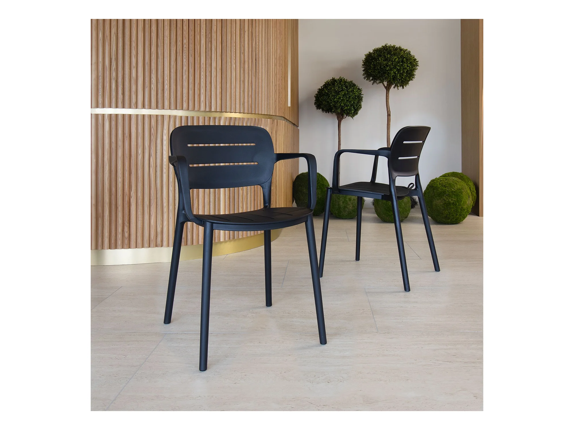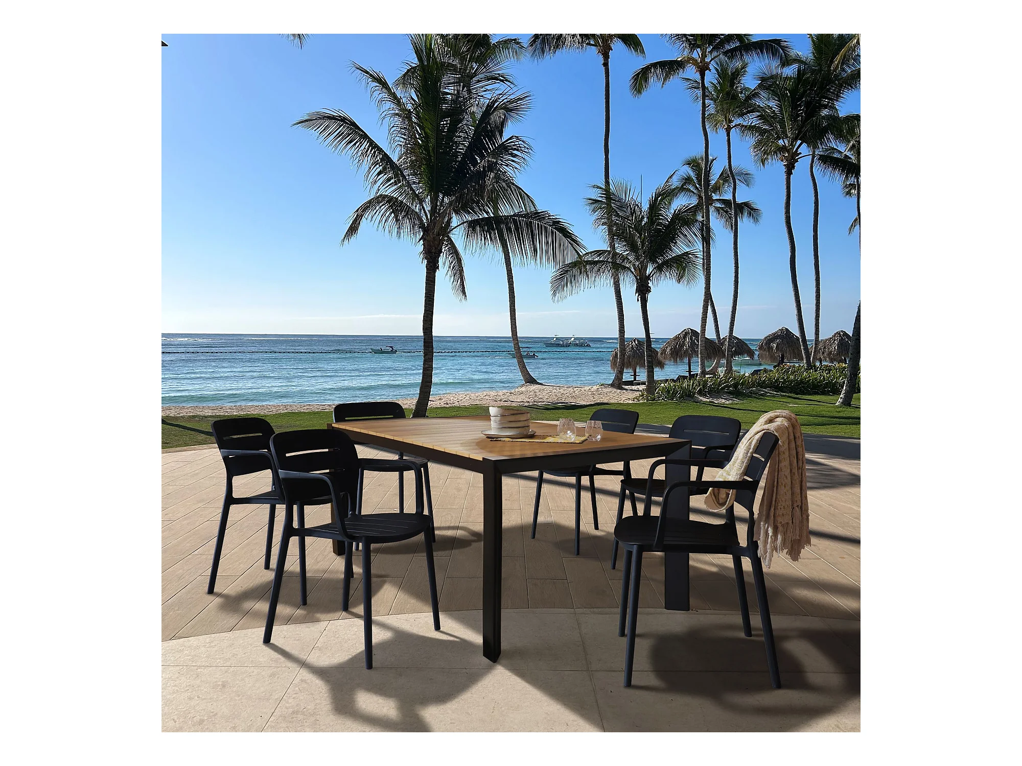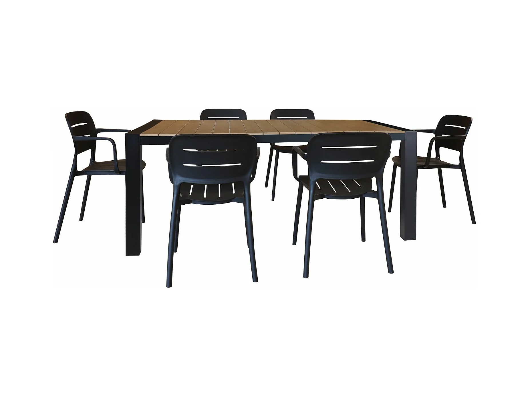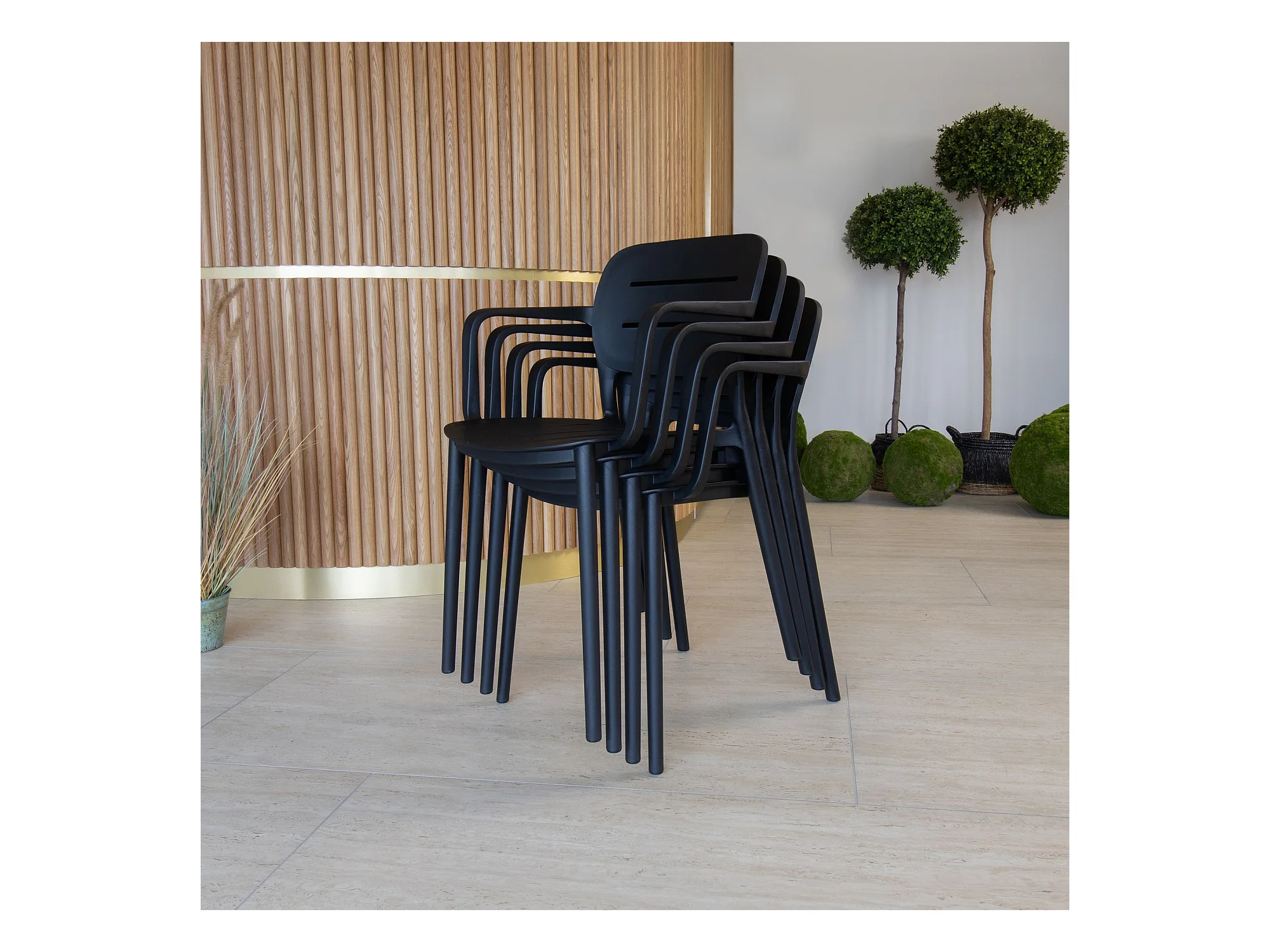 Now's Home - Ensemble De Jardin Table Polywood Noir Et Fauteuil 6 Places