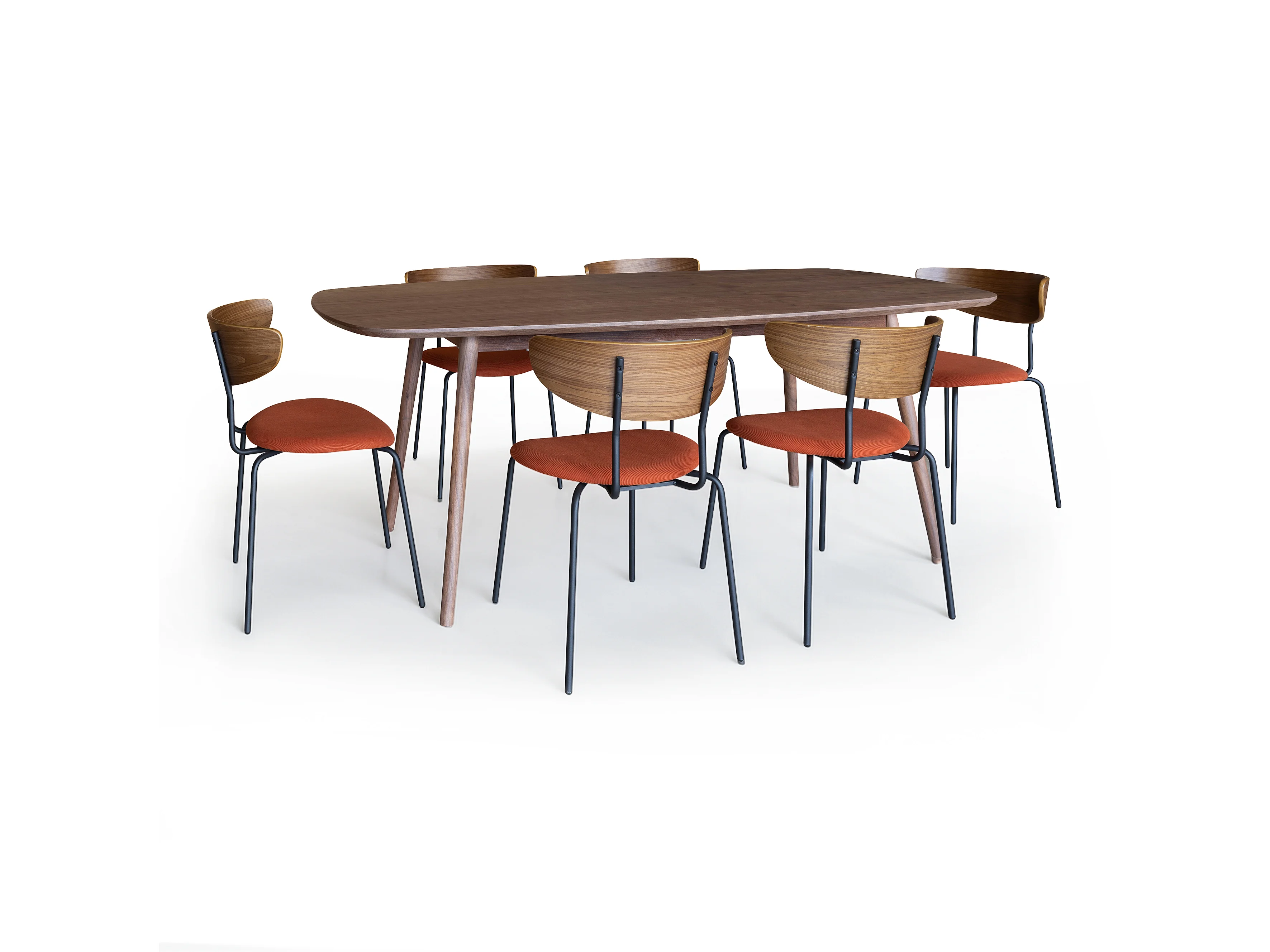 Now's Home - Ensemble Table Rectangle +6 Chaises En Velours Cotele Terrac Bois/metal