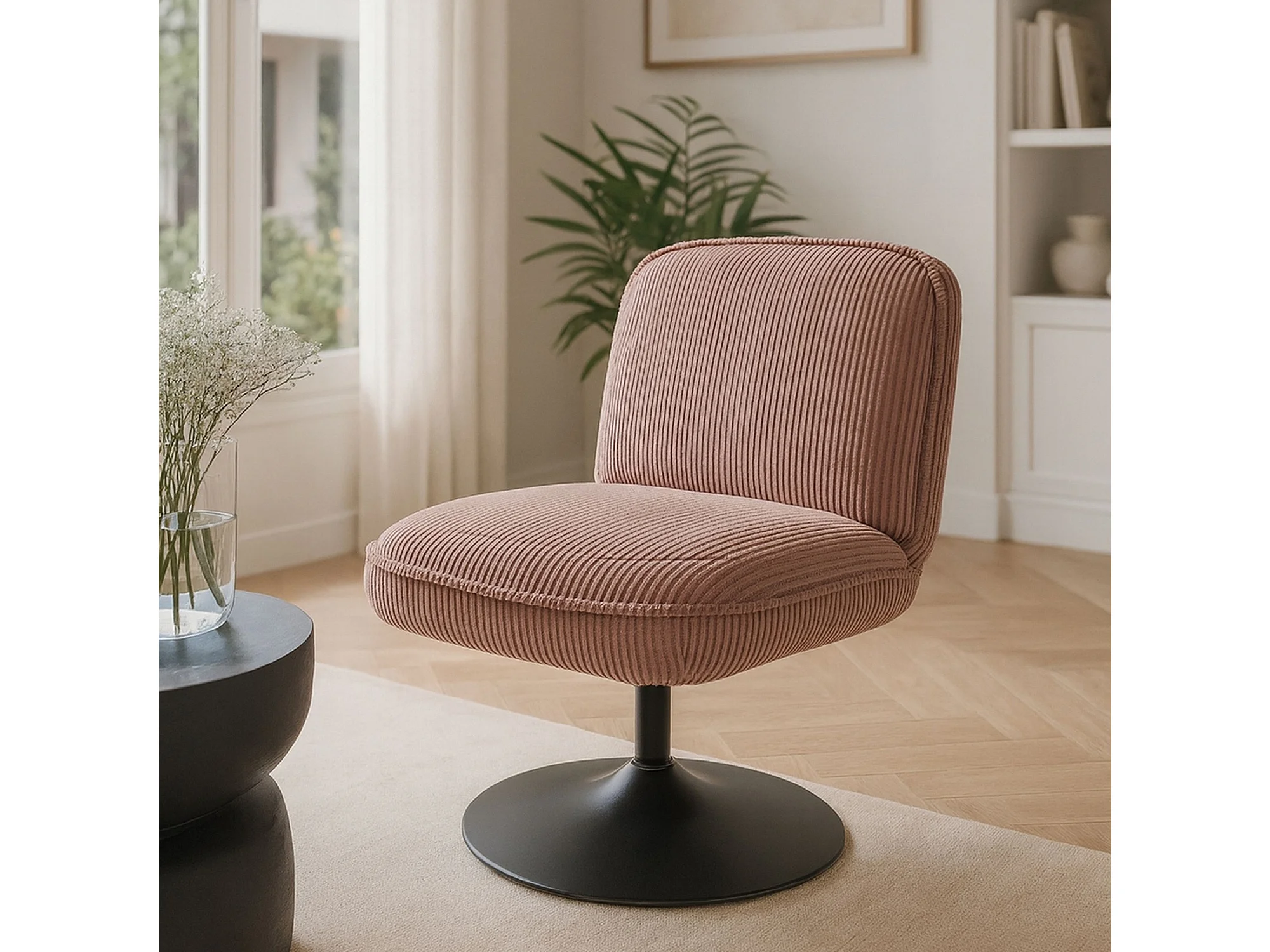 Now's Home - Fauteuil Pivotant Velour Cotele Rose Pied Metal Noir 62x74x75cm Funky