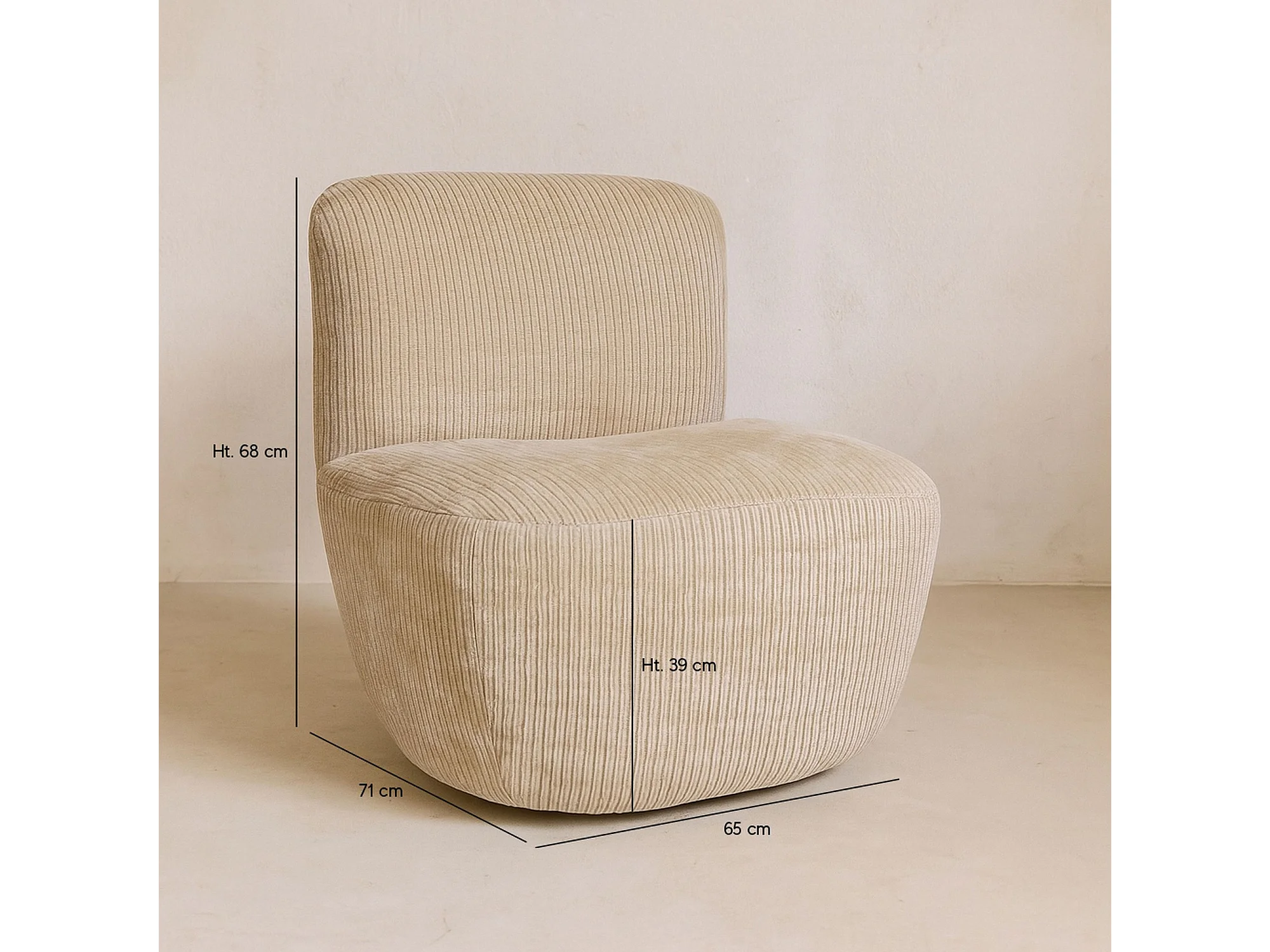 Now's Home - Fauteuil Tissu Velours Cotelé Beige Structure Bois 65x71x68cm Côme