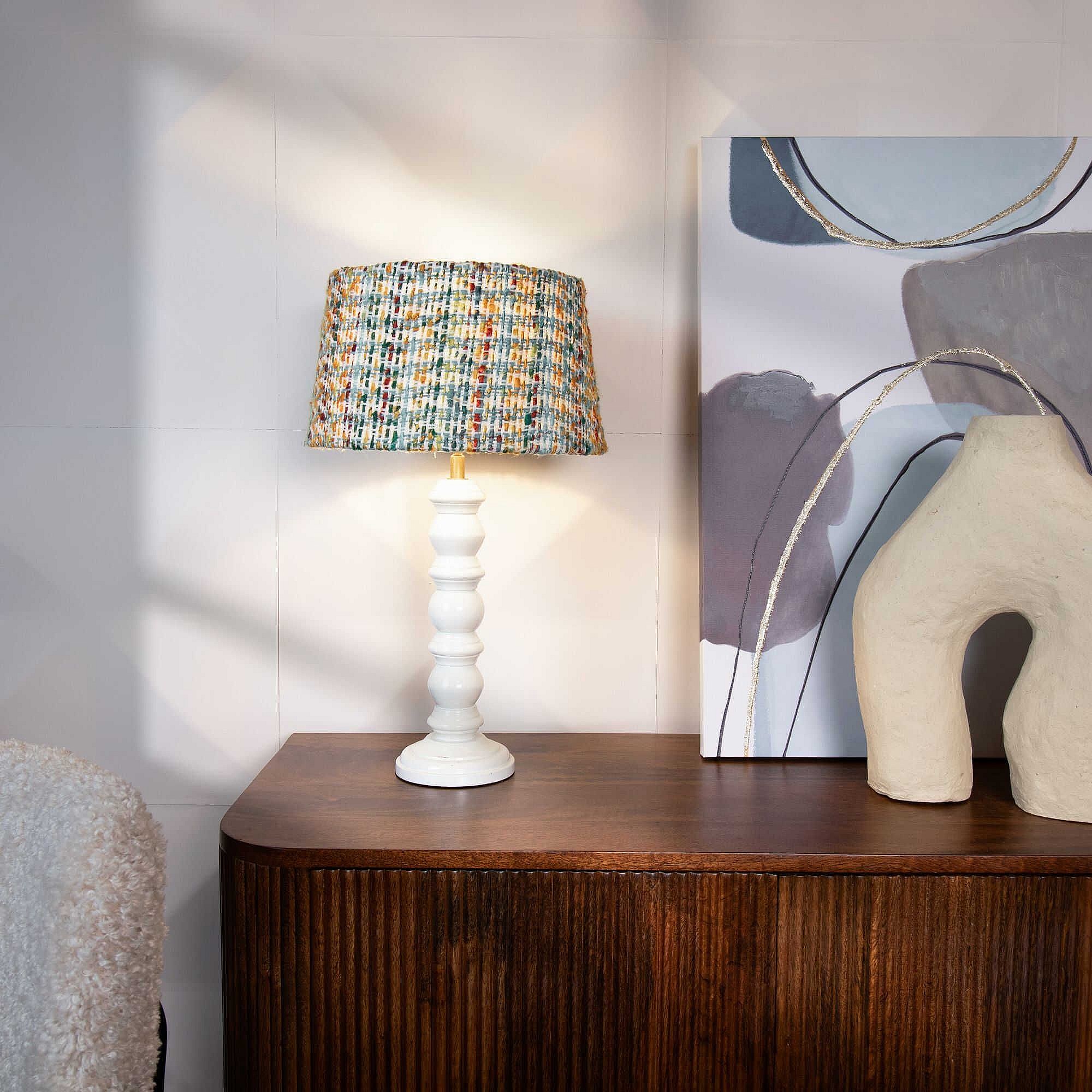 Lampe à poser en Rotin et Abat-jour Blanc H 55 cm