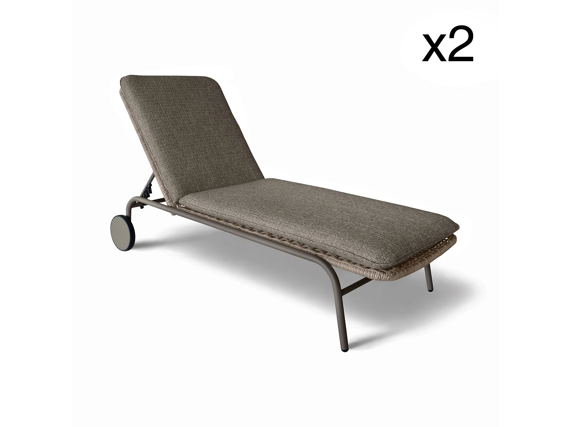 Now's Home - Lot 2 Chaises Longues A Roulette Aluminium Et Tissu Moka Madrague