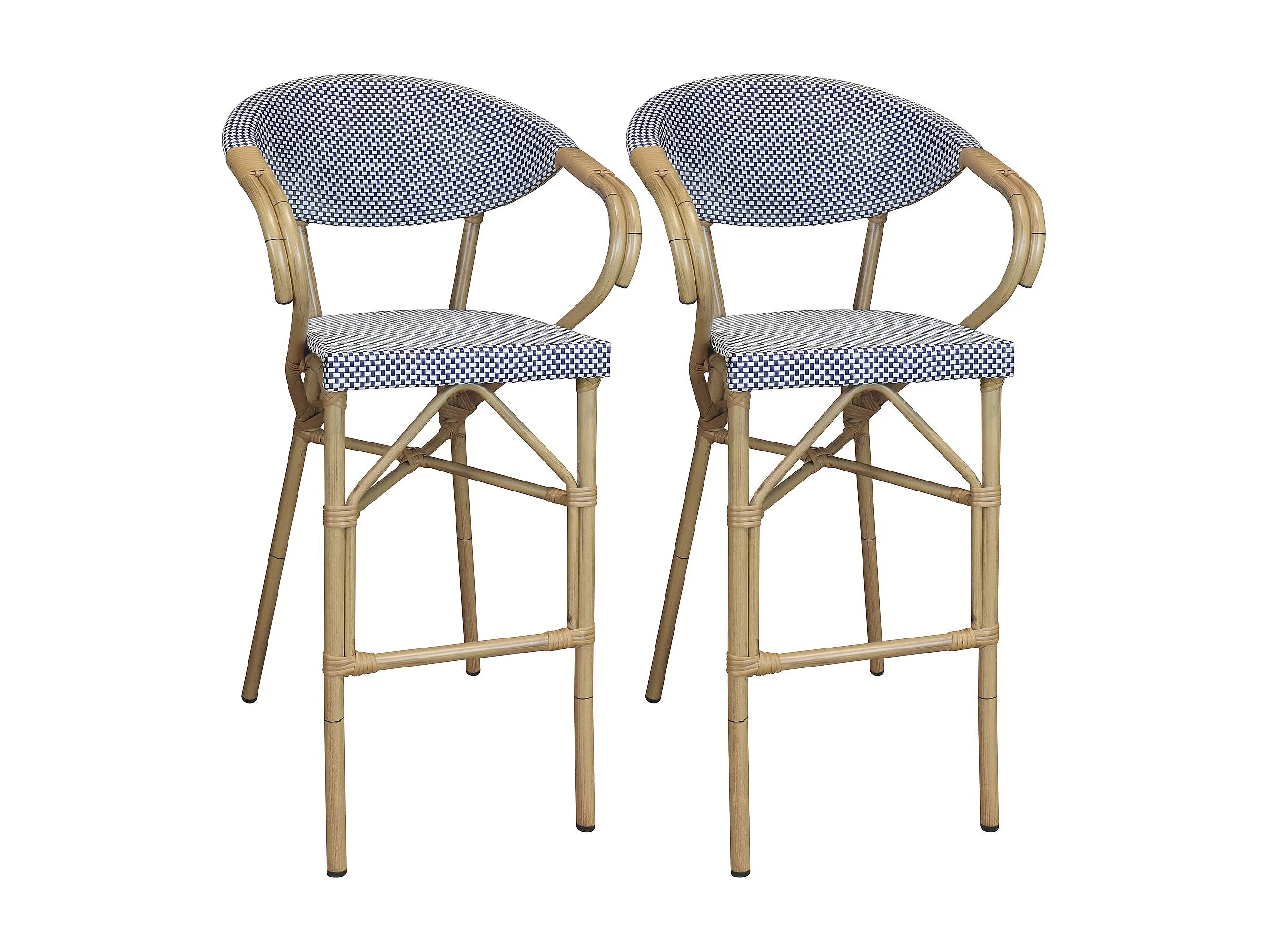 Now's Home - Lot De 2 Fauteuils De Bar Exterieur En Textilene Bleu Aspect Rotin Amalfi