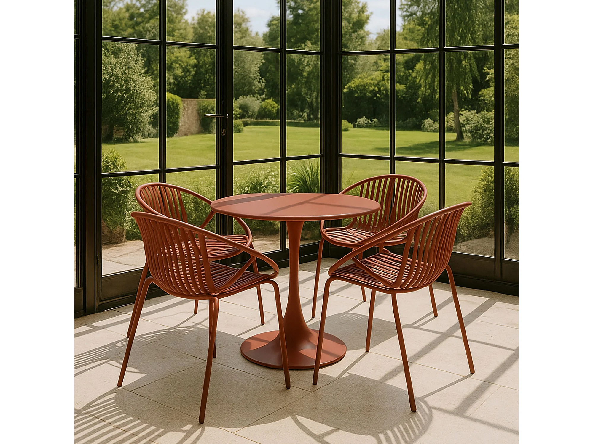 Now's Home - Lot De 4 Fauteuils De Table En Polypropylène Et Metal Brique Calypso