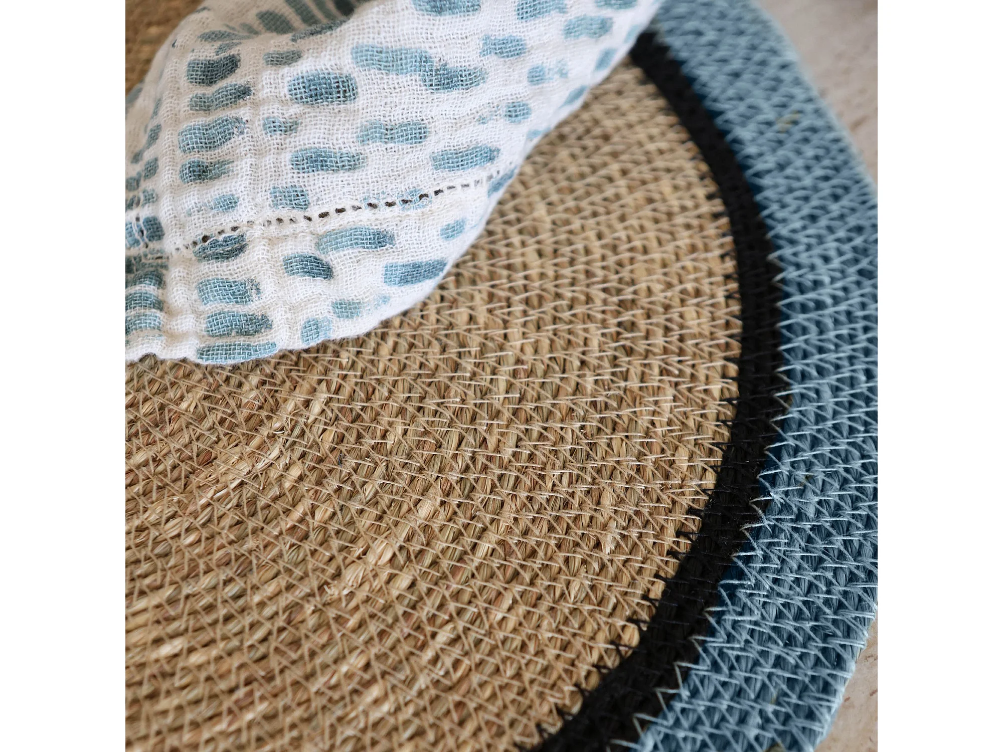 Now's Home - Lot De 6 Sets De Table D38cm En Jonc De Mer Naturel Et Bleu Iris