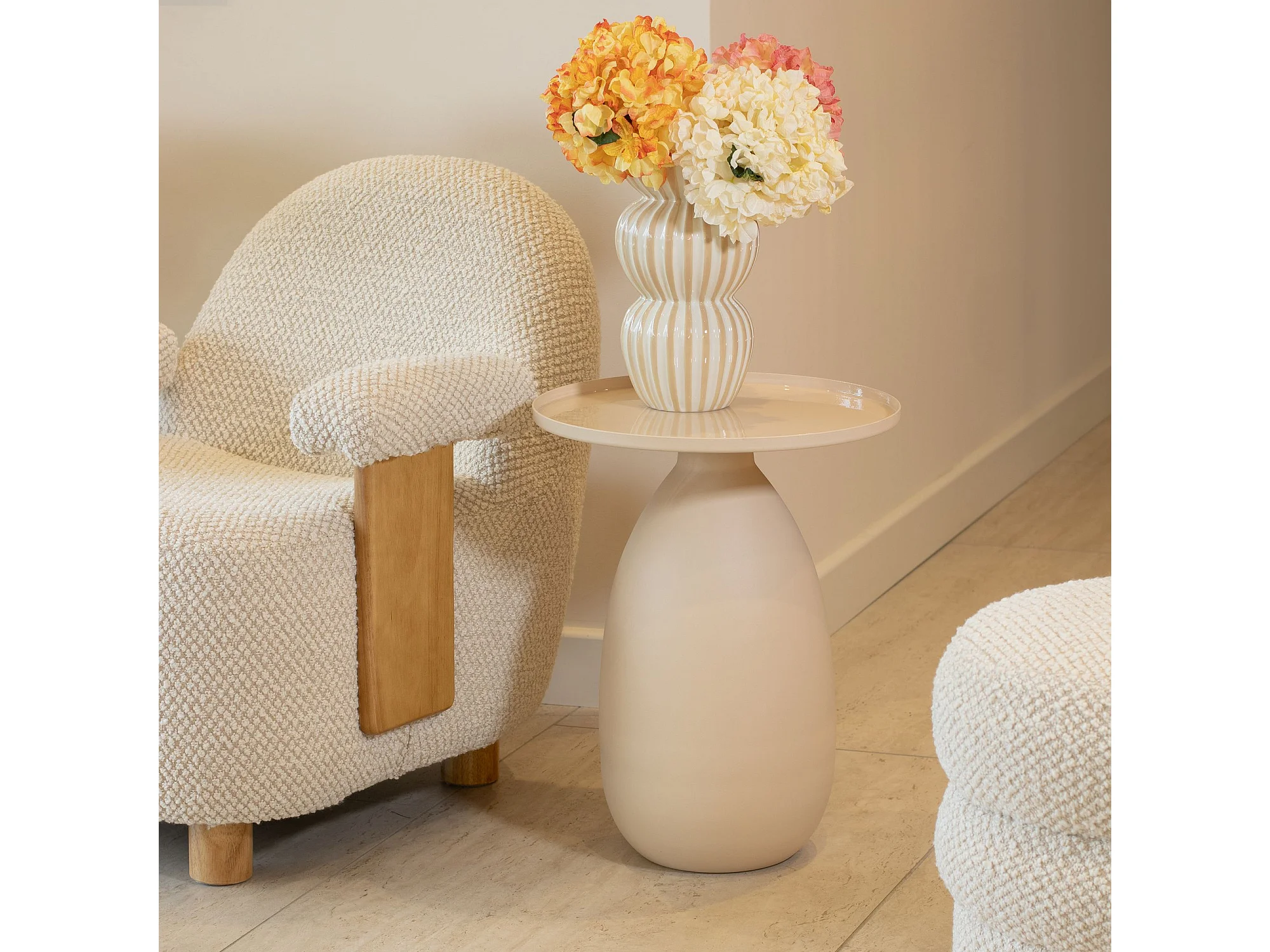 Now's Home - Table D'appoint Plateau En Métal Et Pied En Céramique écru