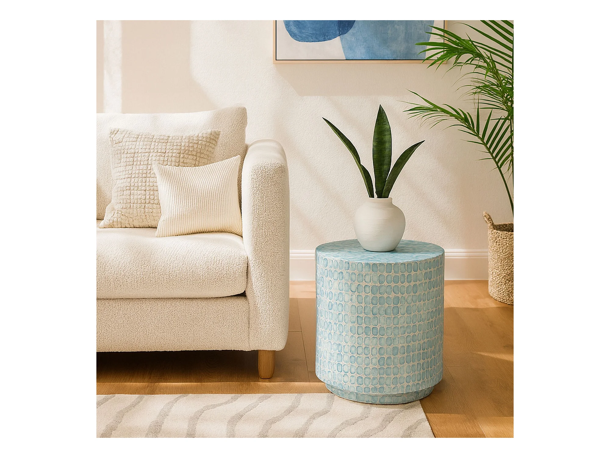 Now's Home - Meuble D Appoint En Coquilles De Capiz Bleu 50x50xht40cm Solna