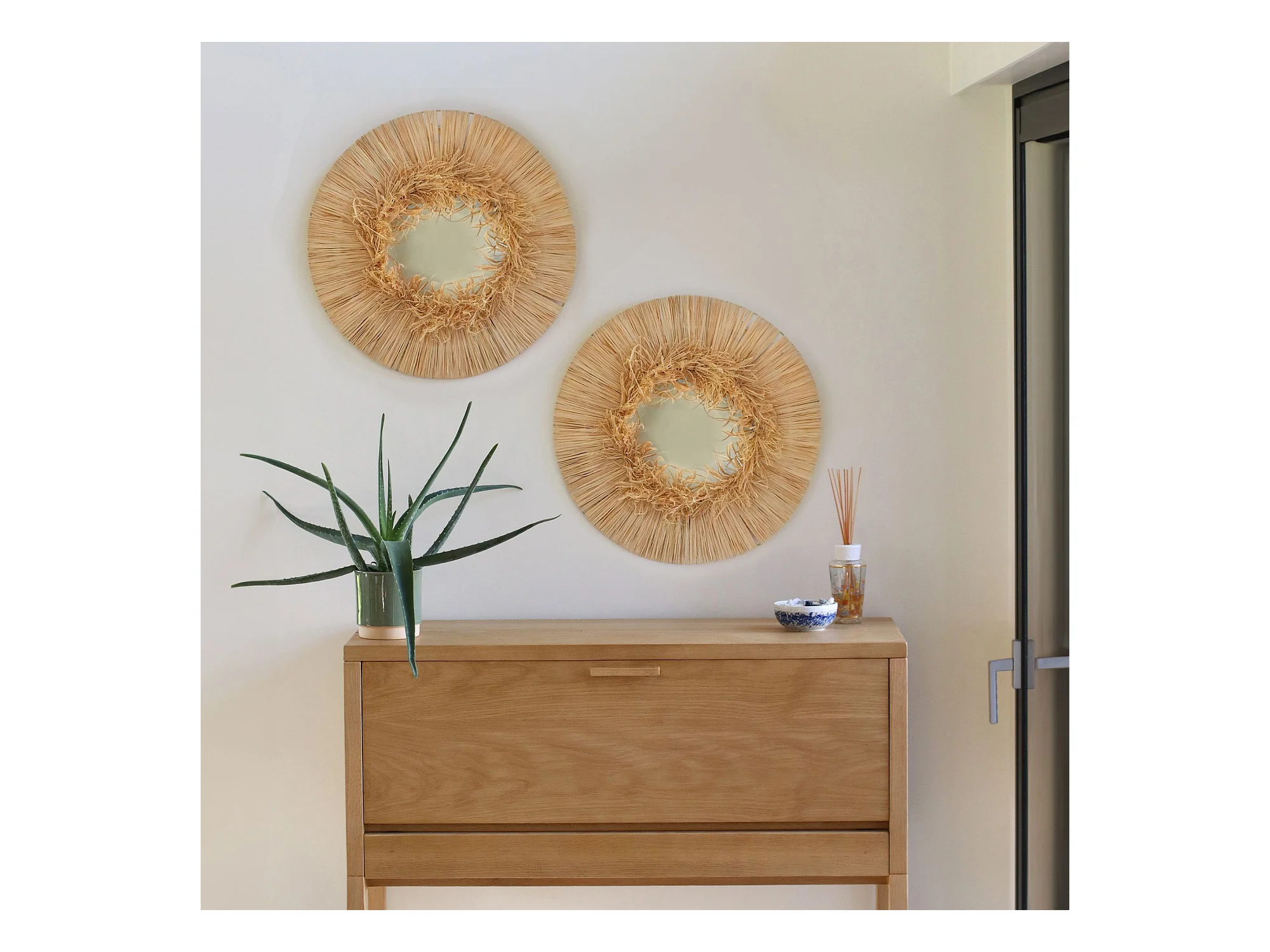 Lot de 3 miroirs muraux ronds en jonc de mer 25cm