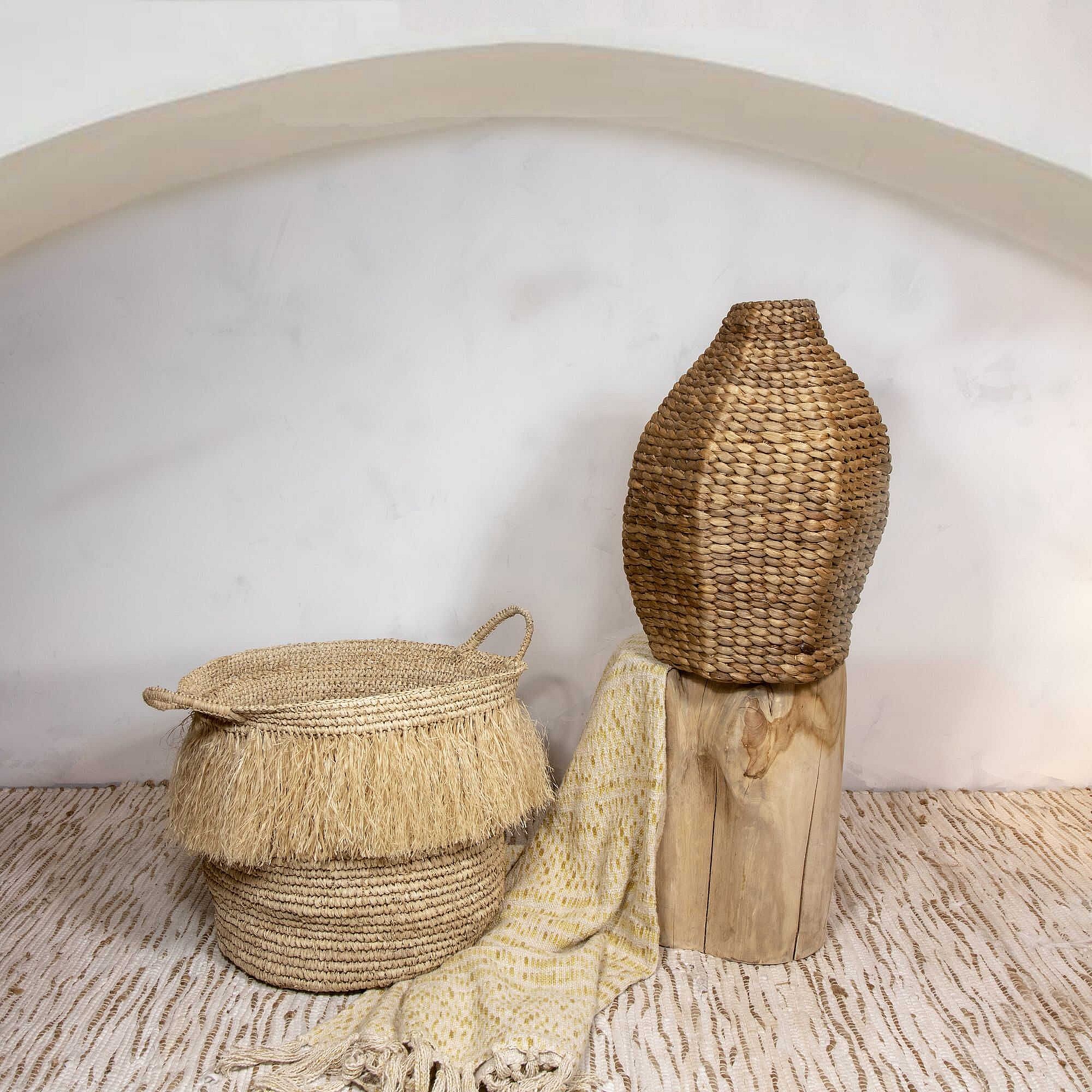 Now's Home - Panier A Franges En Raphia Naturel Avec Anses D44xh41cm Luys