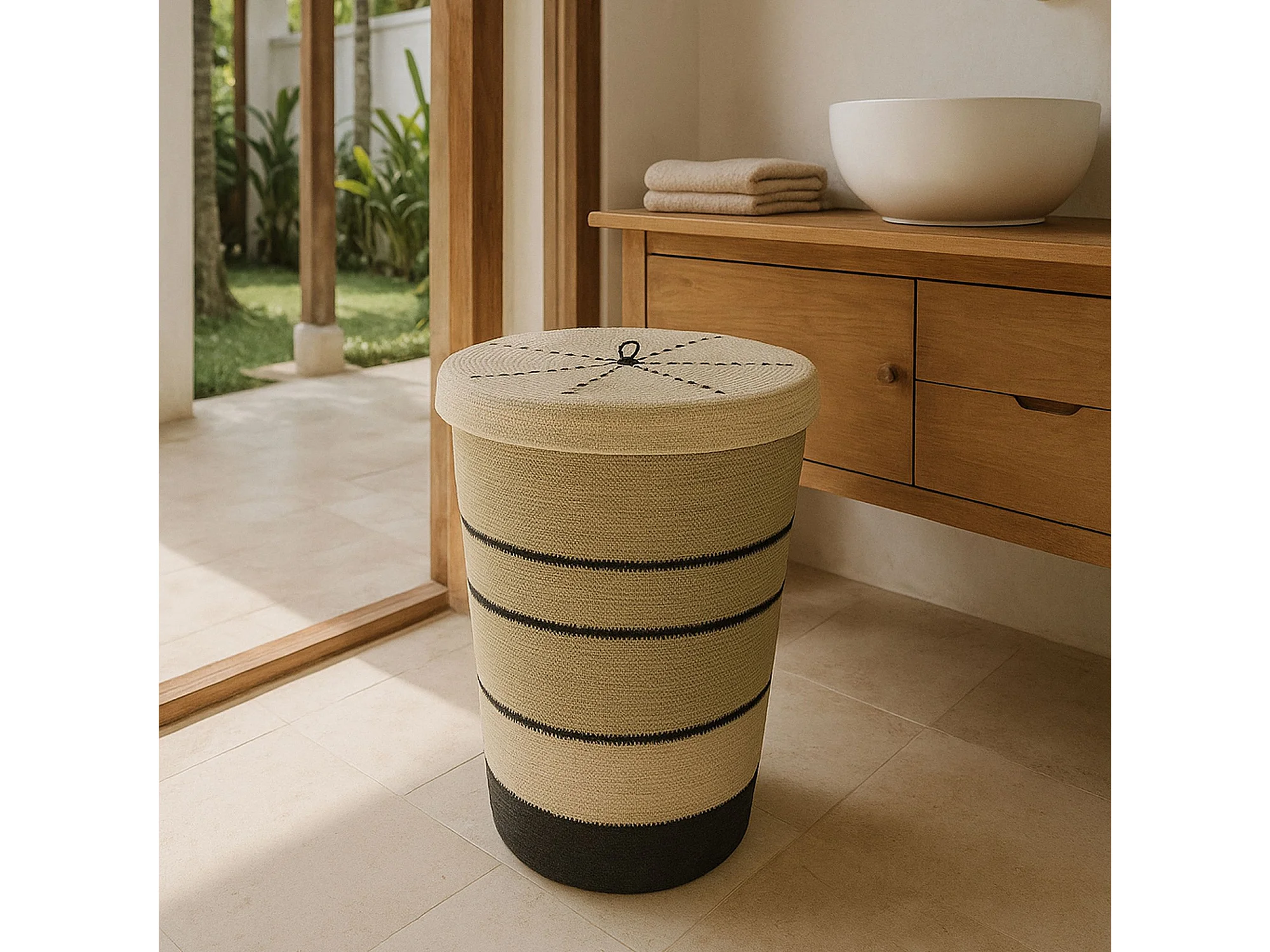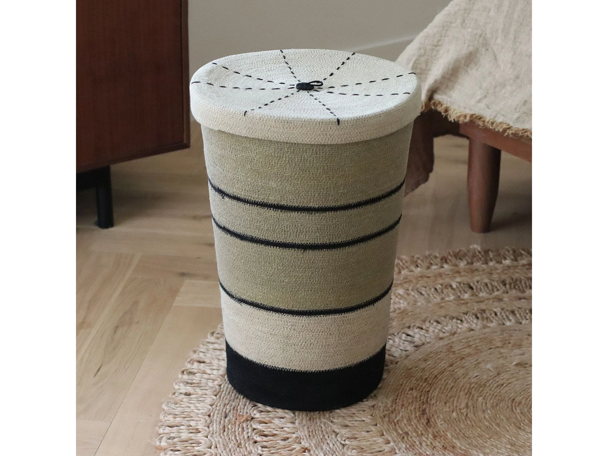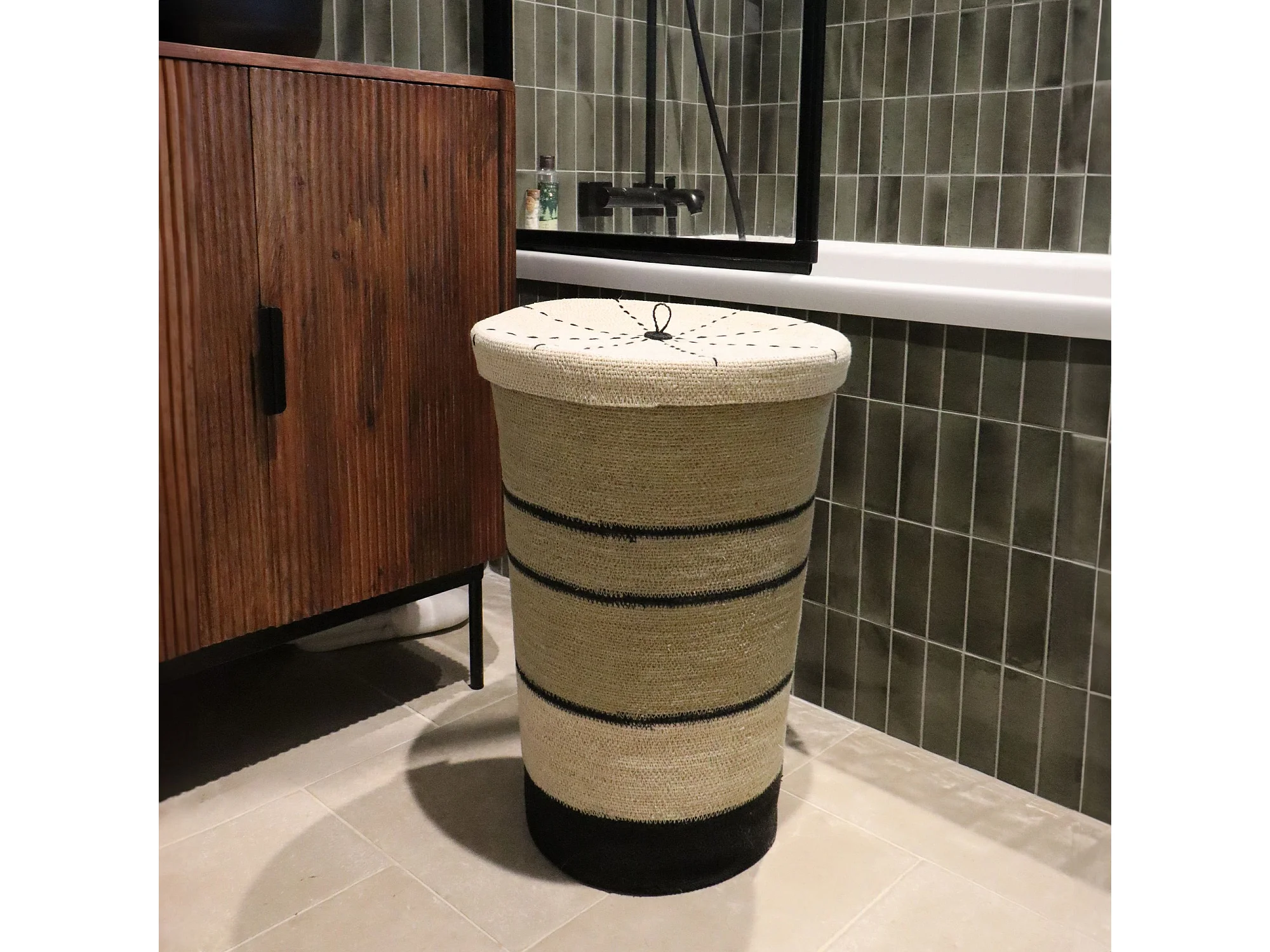 Now's Home - Panier à Linge En Jonc De Mer Naturel Et Noir 38xh57cm Grenada