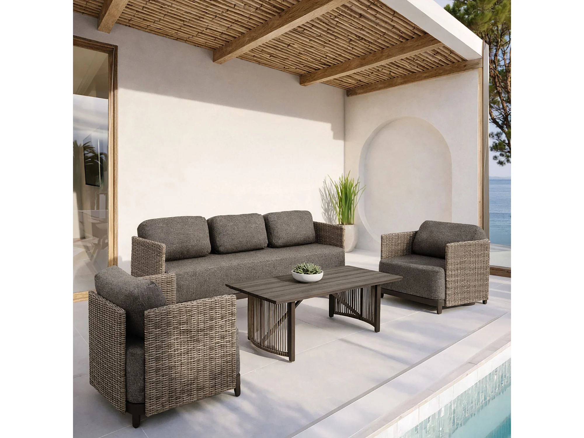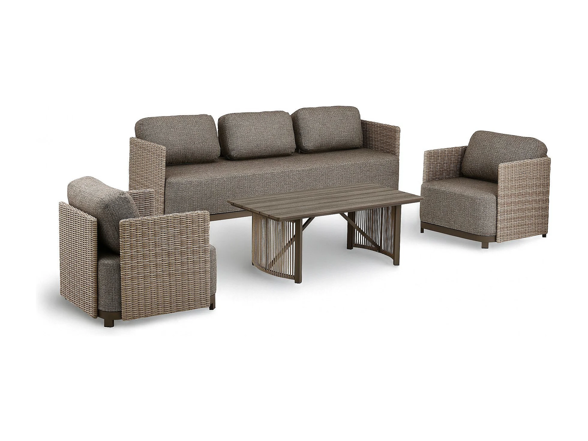 Now's Home - Salon De Jardin 4 Places En Aluminium Et Tissu Moka Madrague