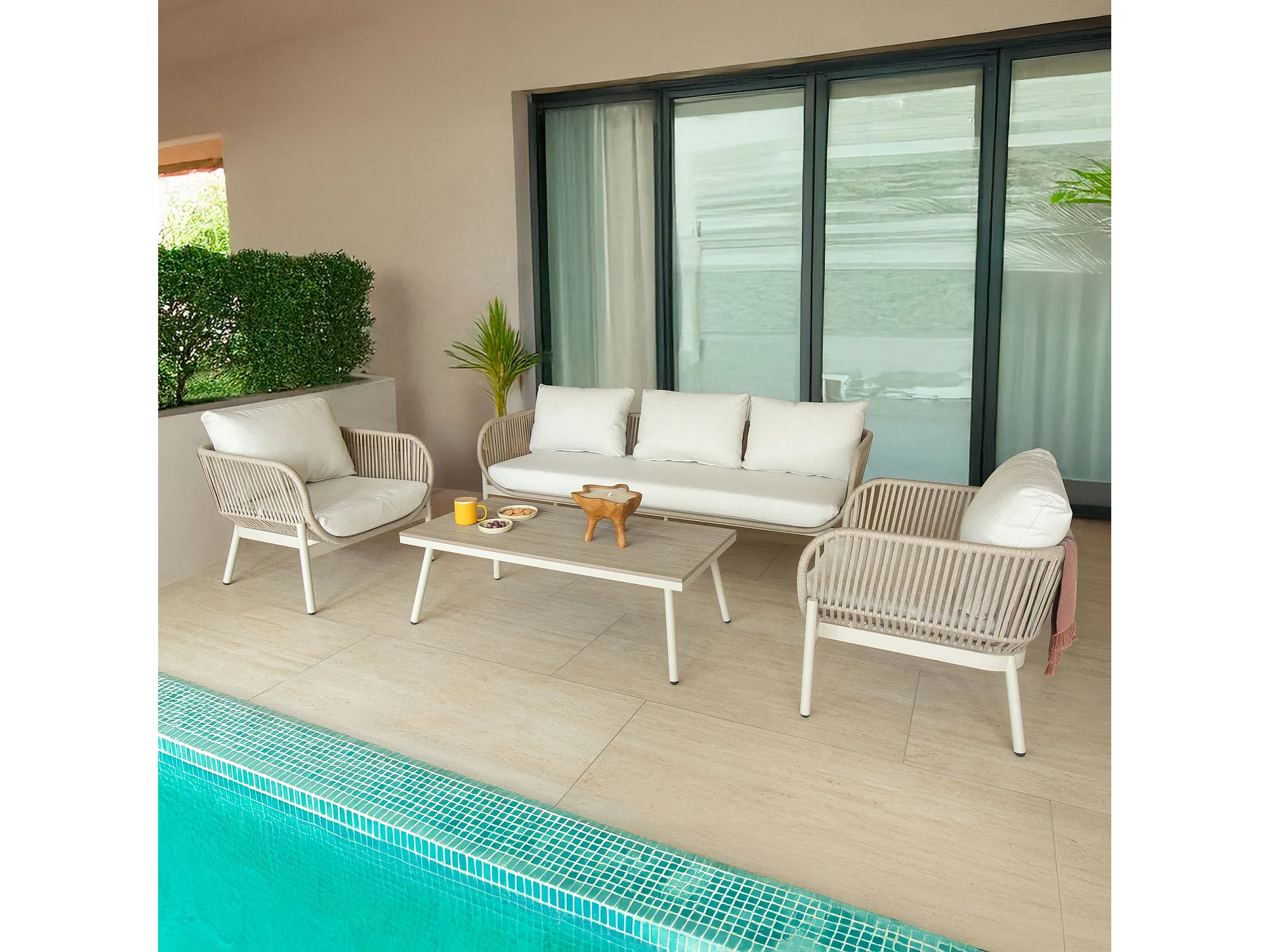 Now's Home - Salon De Jardin 5 Places En Aluminium Sable Et Table Basse Figari