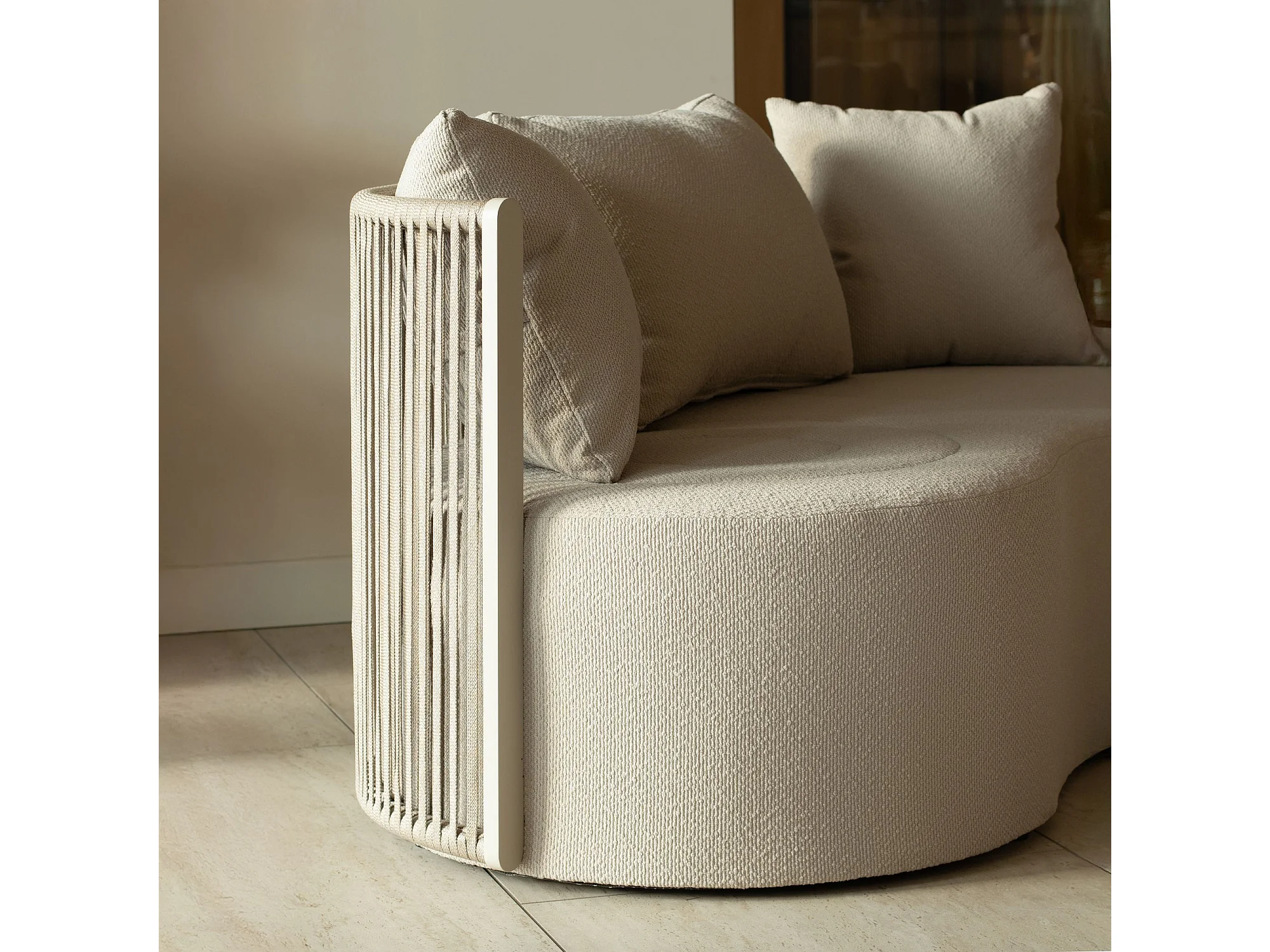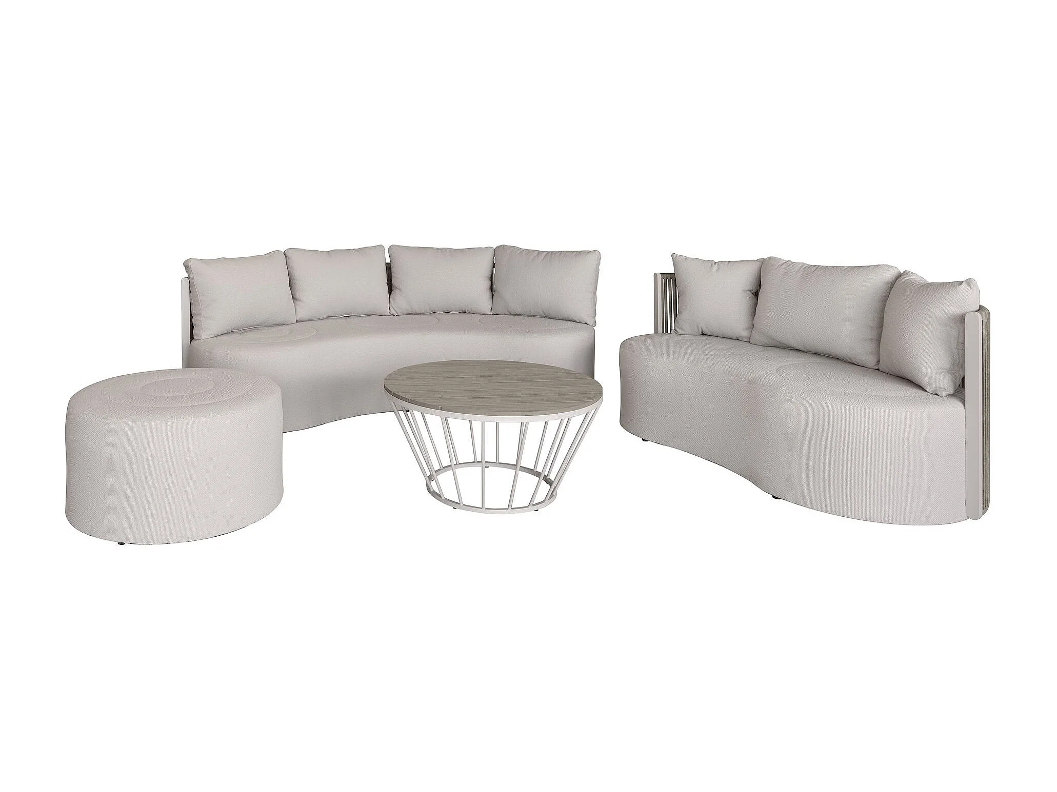 Now's Home - Salon De Jardin Avec Canape Pouf+tble Basse Aluminium Sable Bellagio