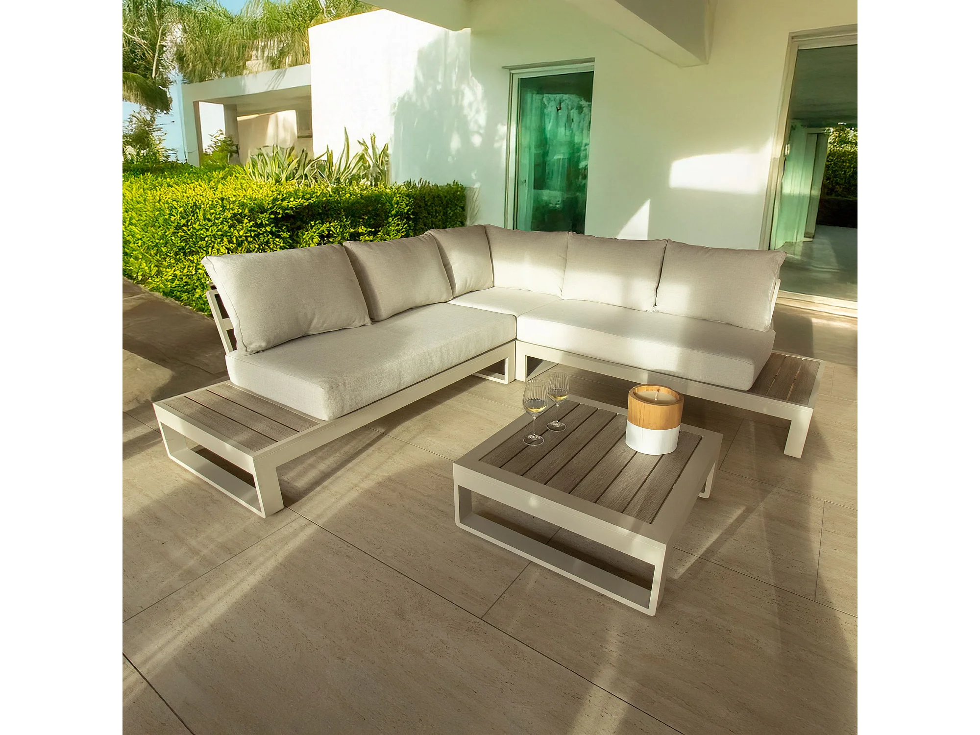 Now's Home - Salon De Jardin Structur Aluminium Sable Coussin En Olefine Riva Bella