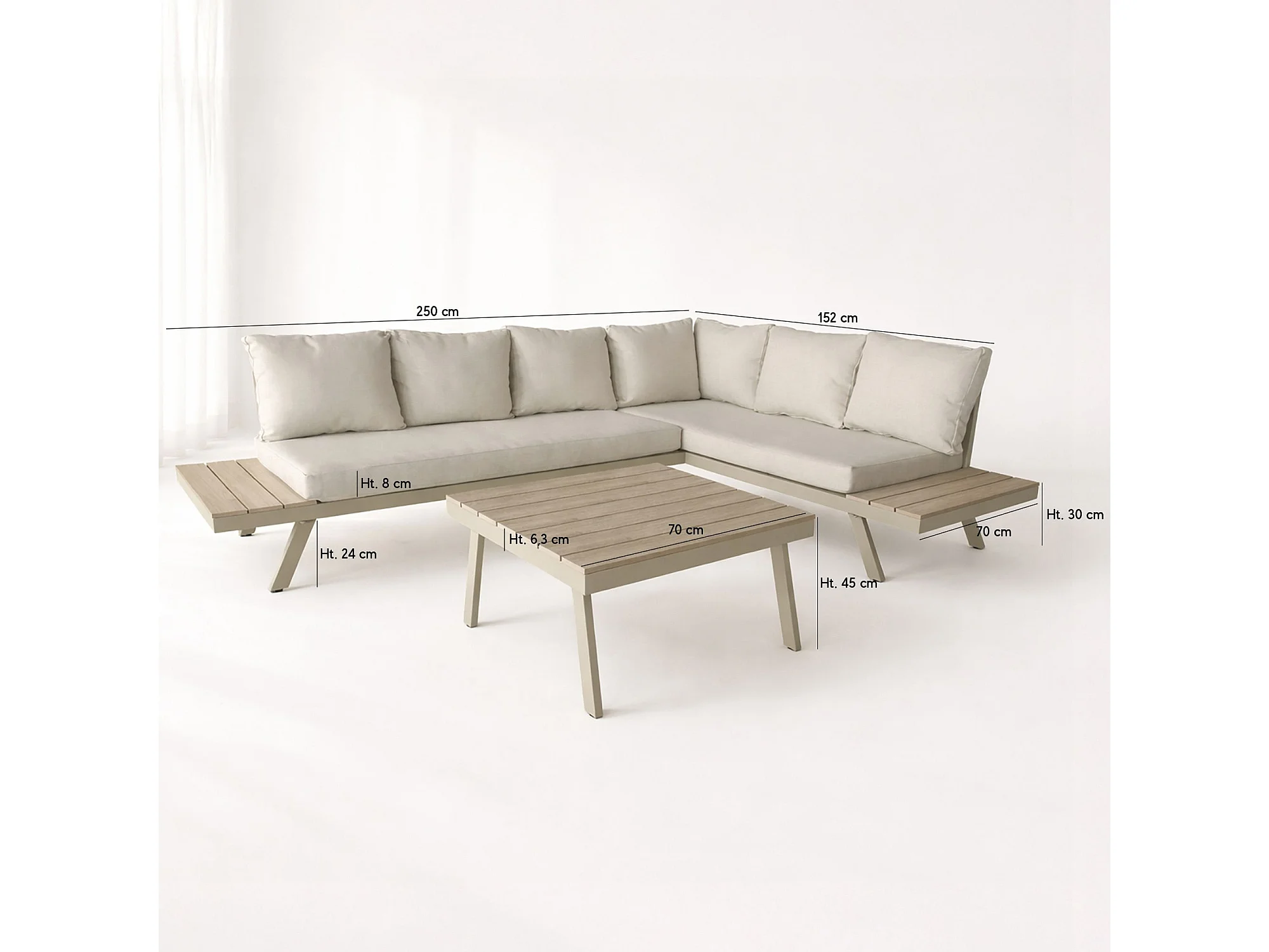 Now's Home - Salon De Jardin Structur En Aluminium Sable Avec Coussin En Oléfine Calvi