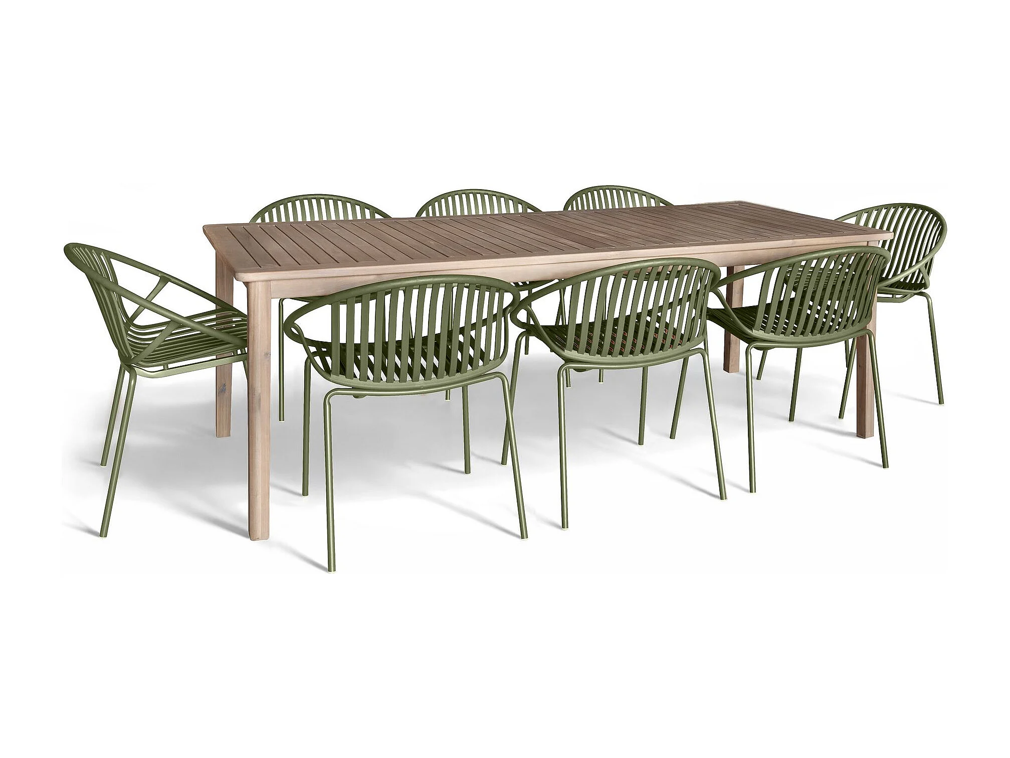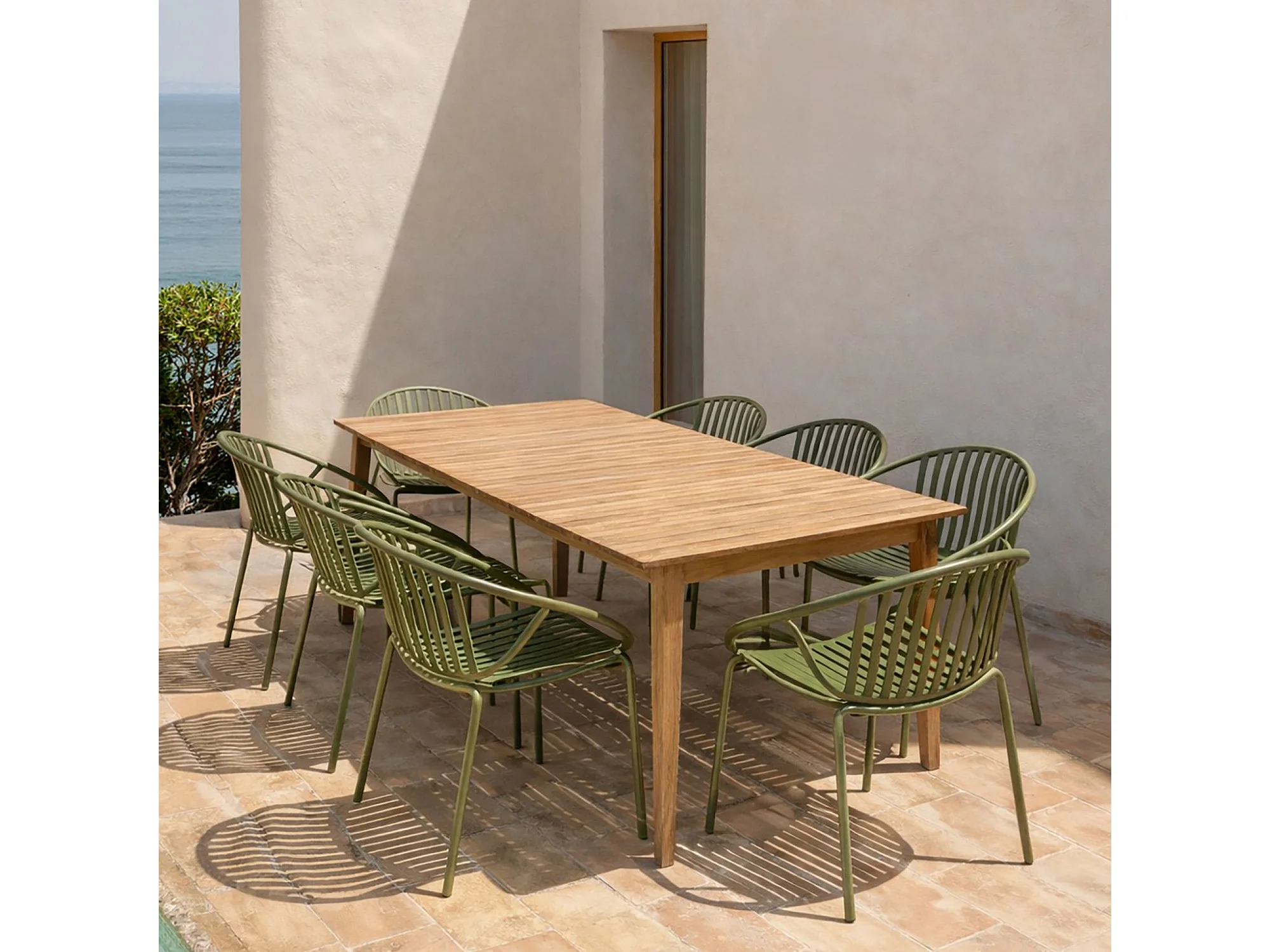 Now's Home - Salon De Jardin Table En Bois D'acacia 220cm Et 8 Fauteuils En Polypropylene Vert Calypso