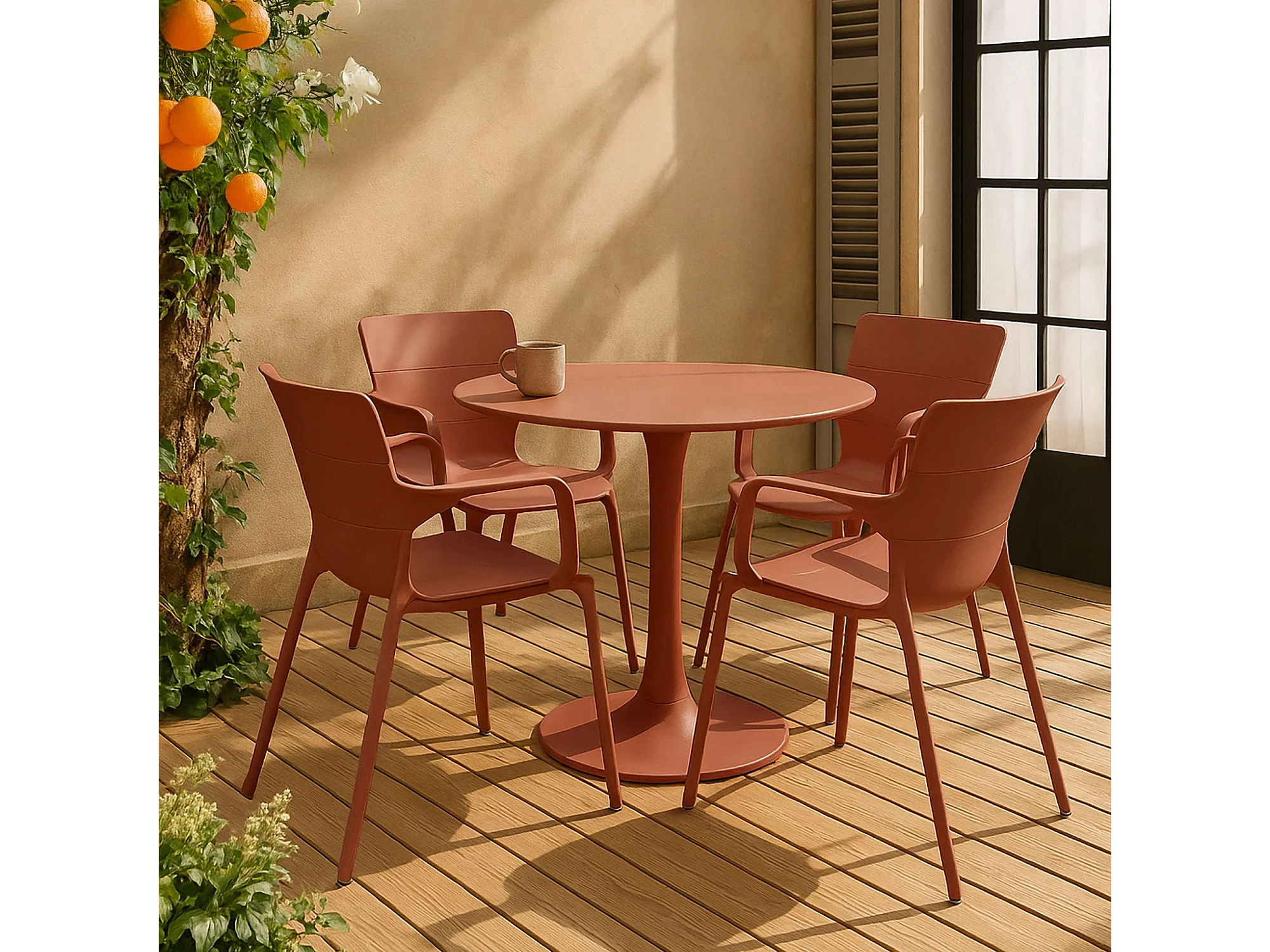 Now's Home - Salon De Jardin Table Et 4 Fauteuils En Polypopylene Et Metal Brique Montauk
