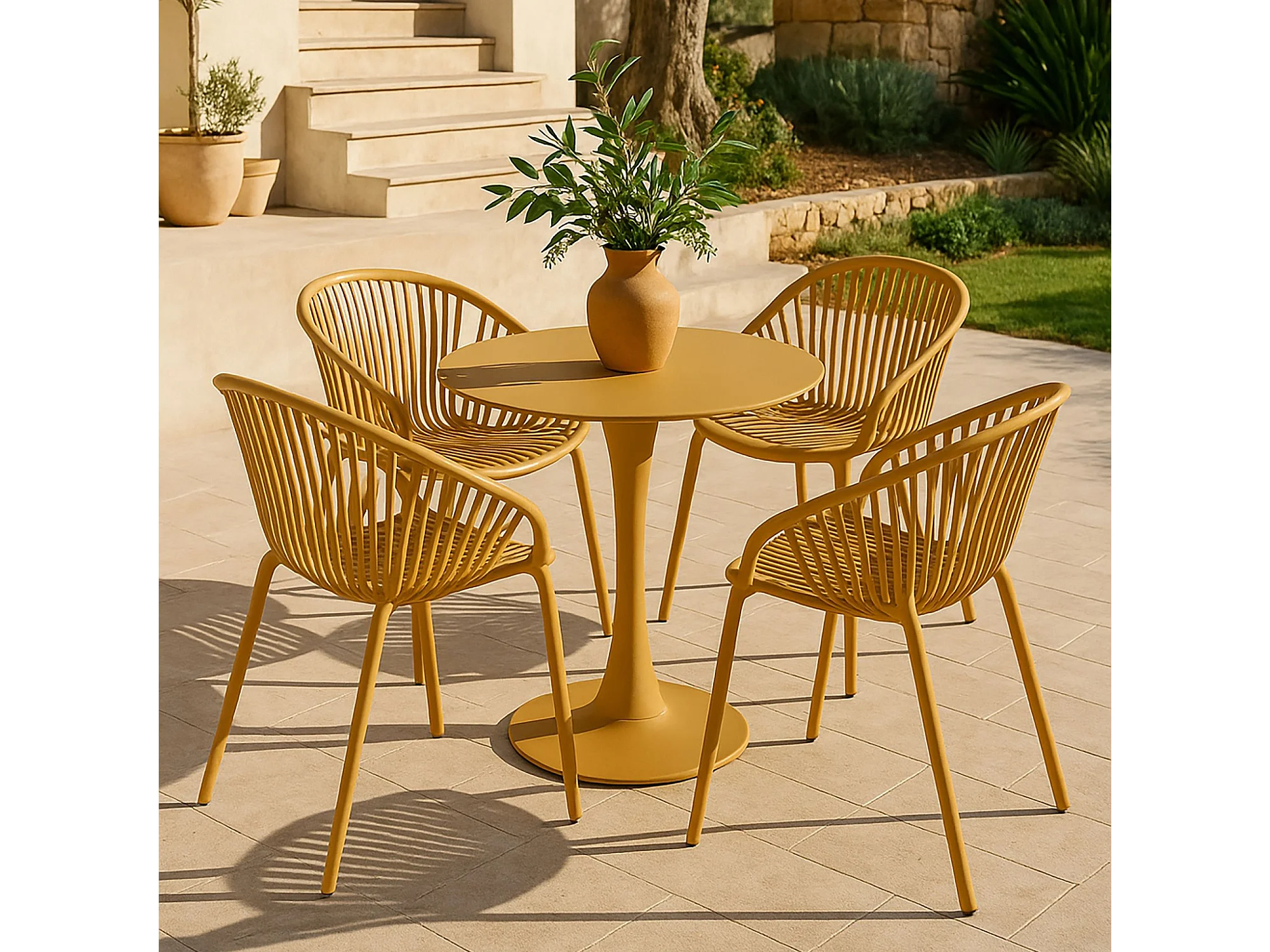 Now's Home - Salon De Jardin Table Et 4 Fauteuils En Polypopylene Et Metal Ocre Calypso