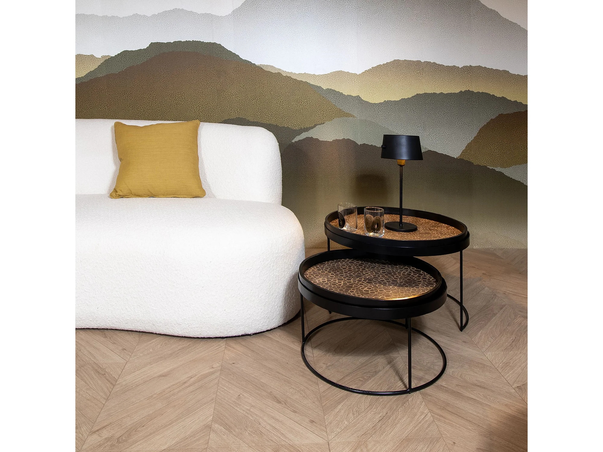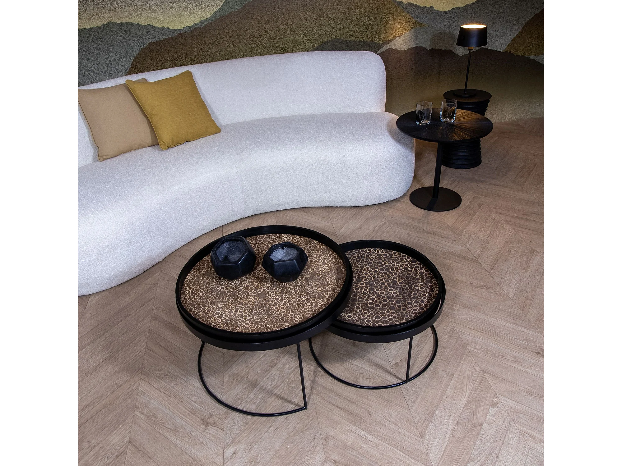 Now's Home - Set De 2 Tble Gigognes Noix De Coco Pieds Metal Noir D50 Et D60cm Racha
