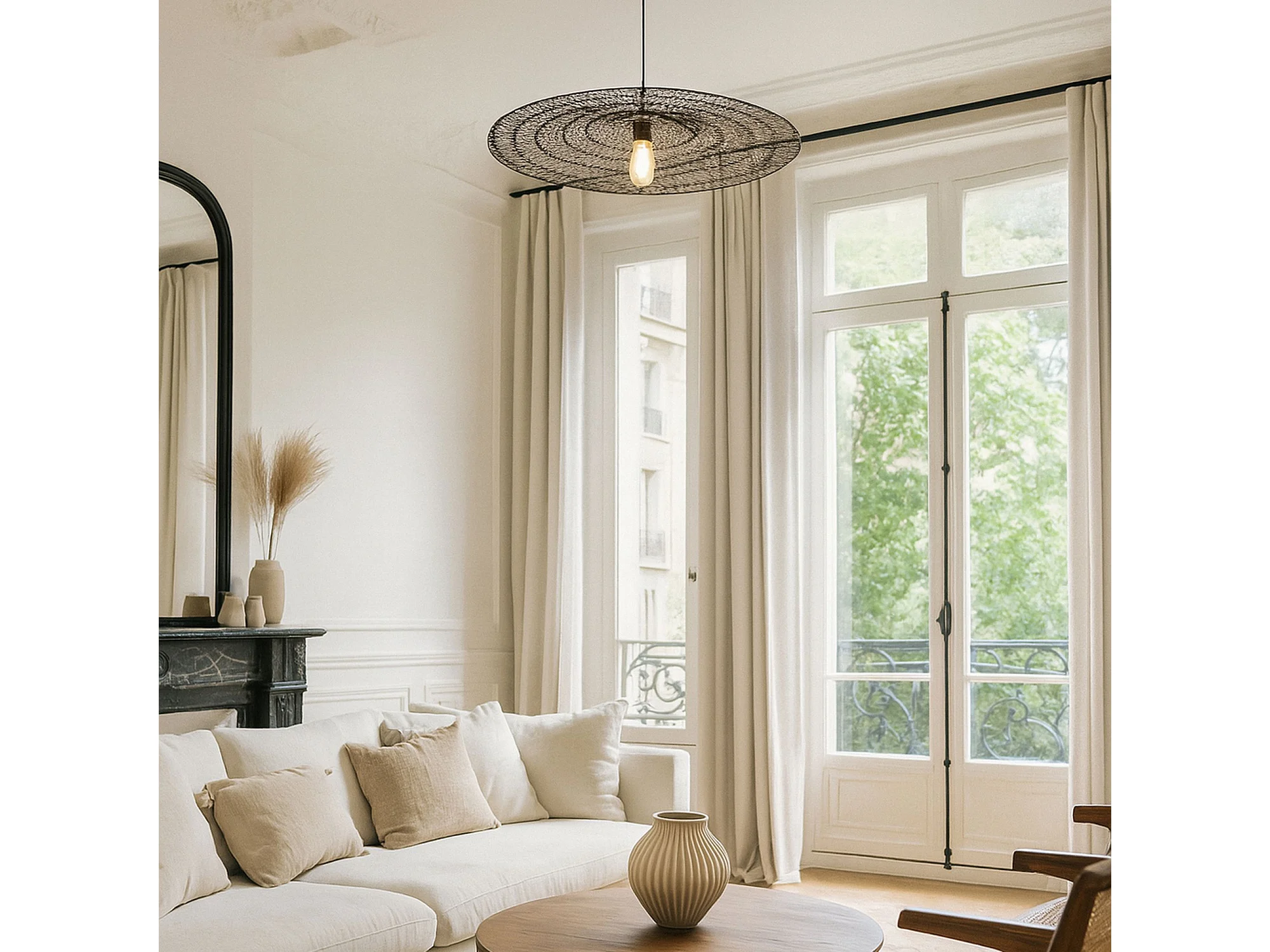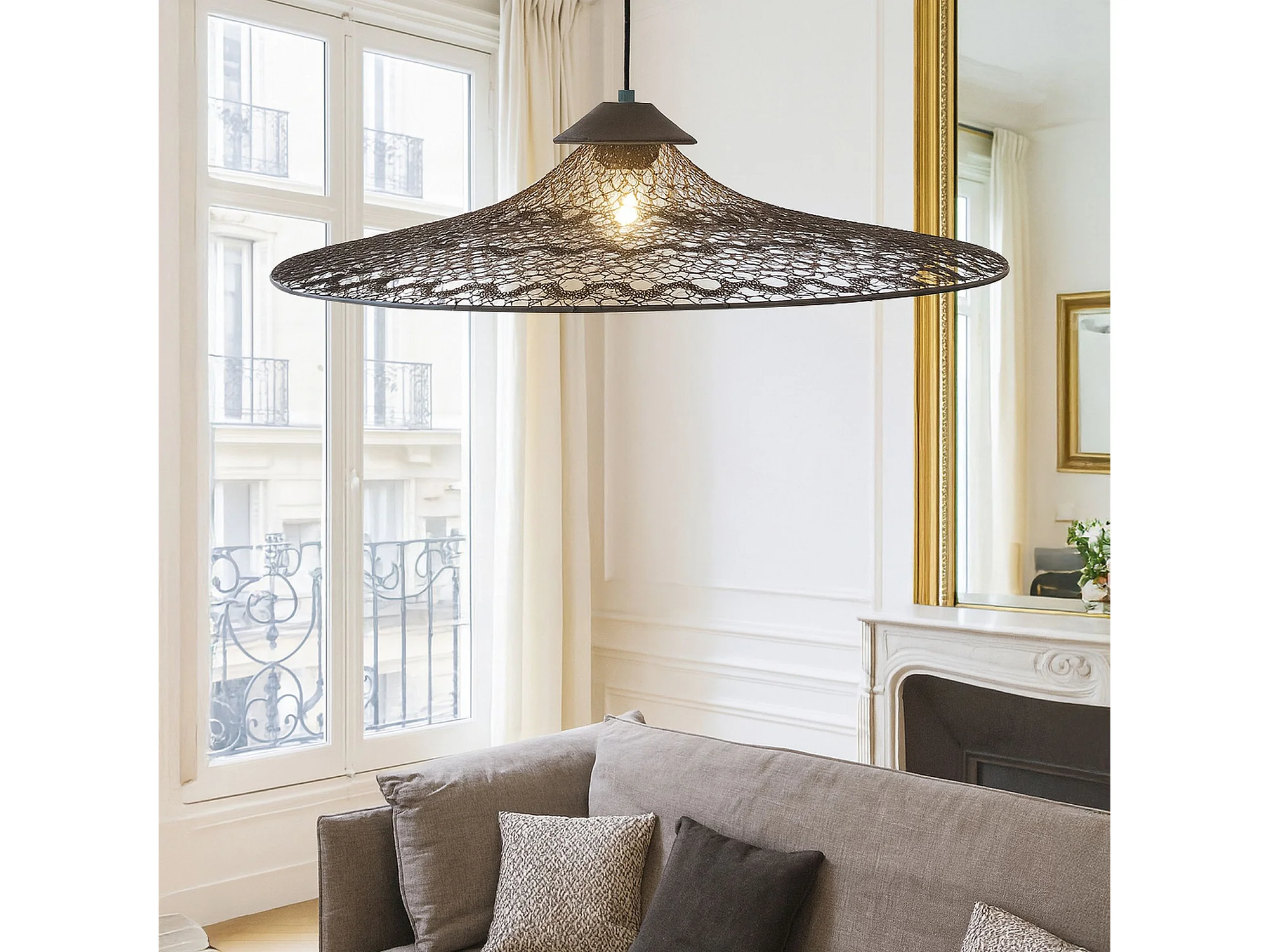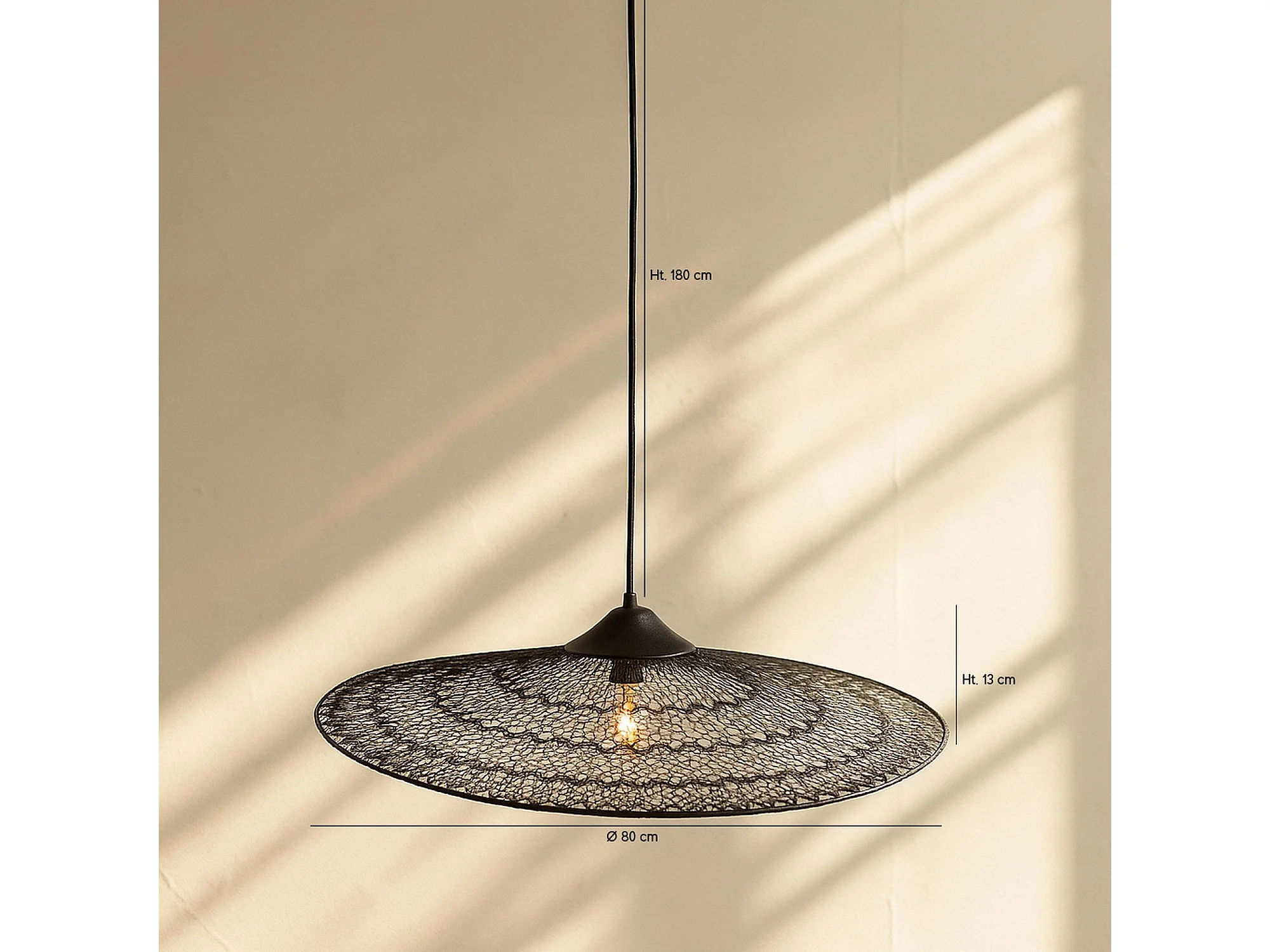Now's Home - Suspension En Métal Noir Crocheté Fait Main 80x80x13 Cm Irawa