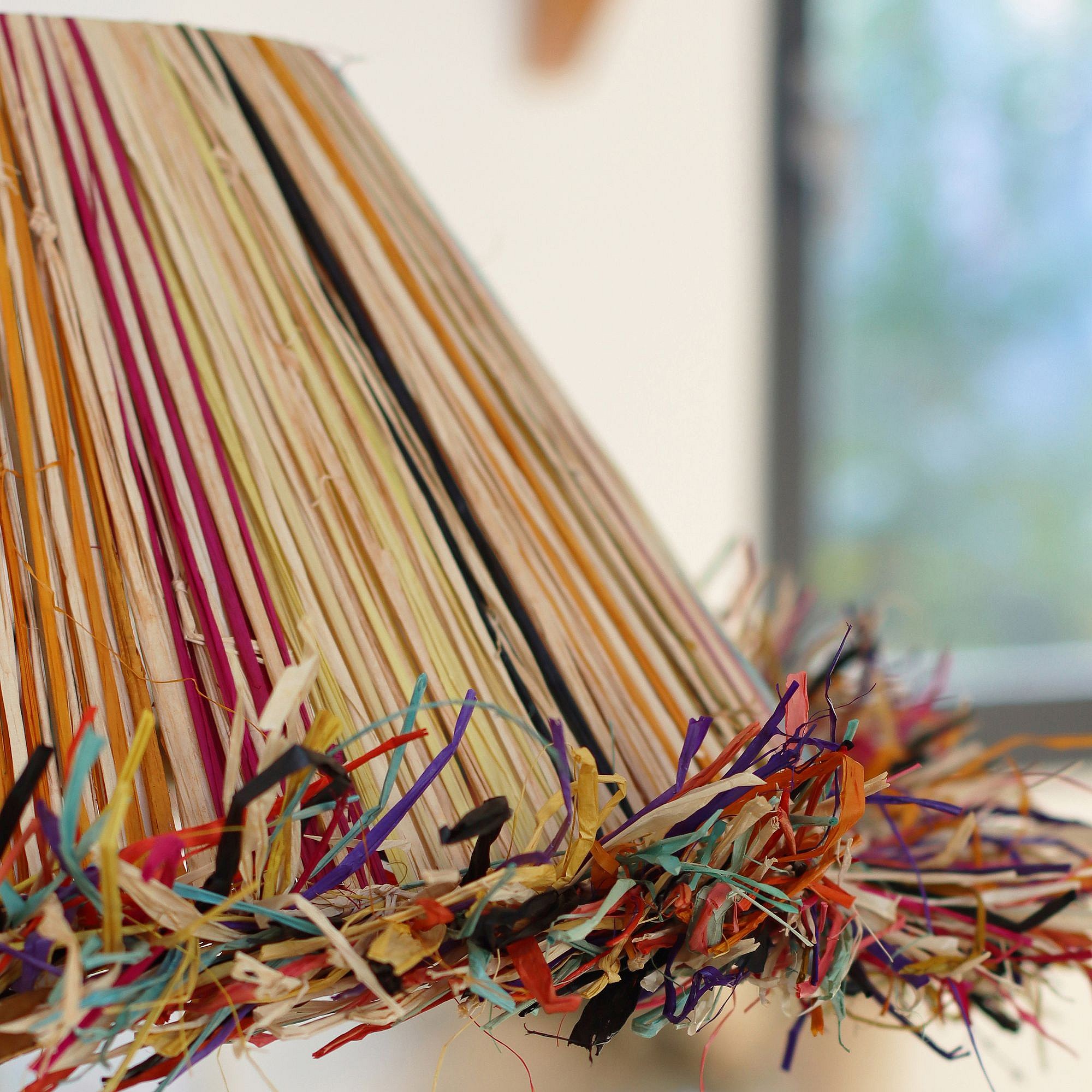 Now's Home - Suspension En Raphia Naturel Colore Avec Franges D60xh20cm Jolo