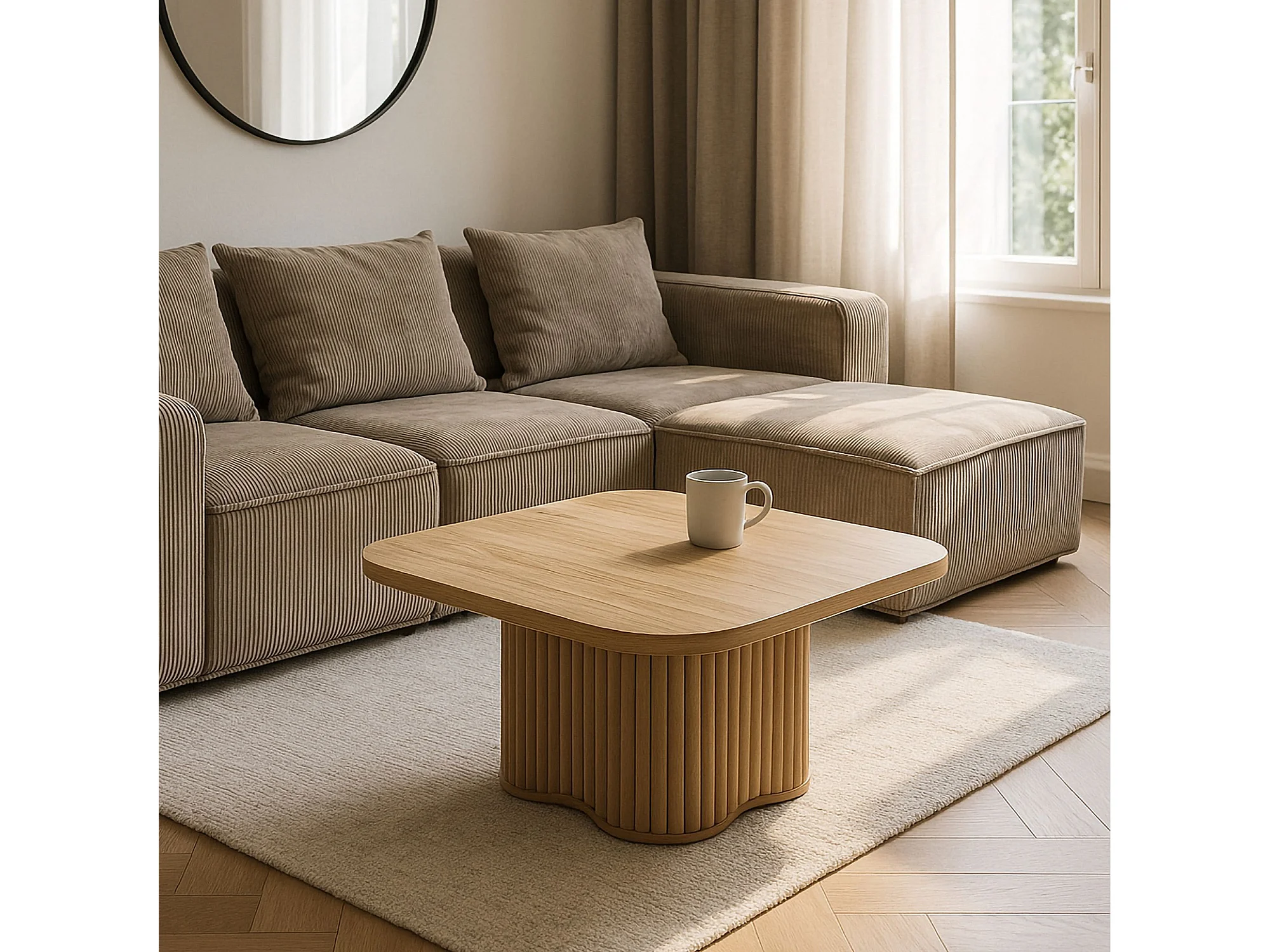 Now's Home - Table Basse Effet Bois Naturel Pied Organique D80x40cm Alba