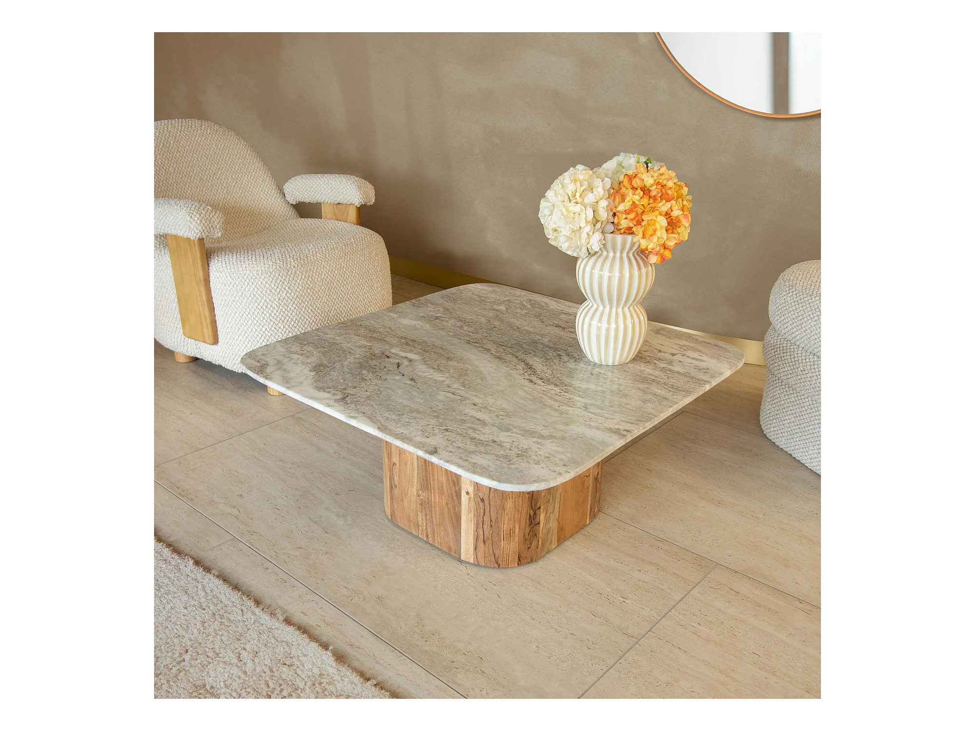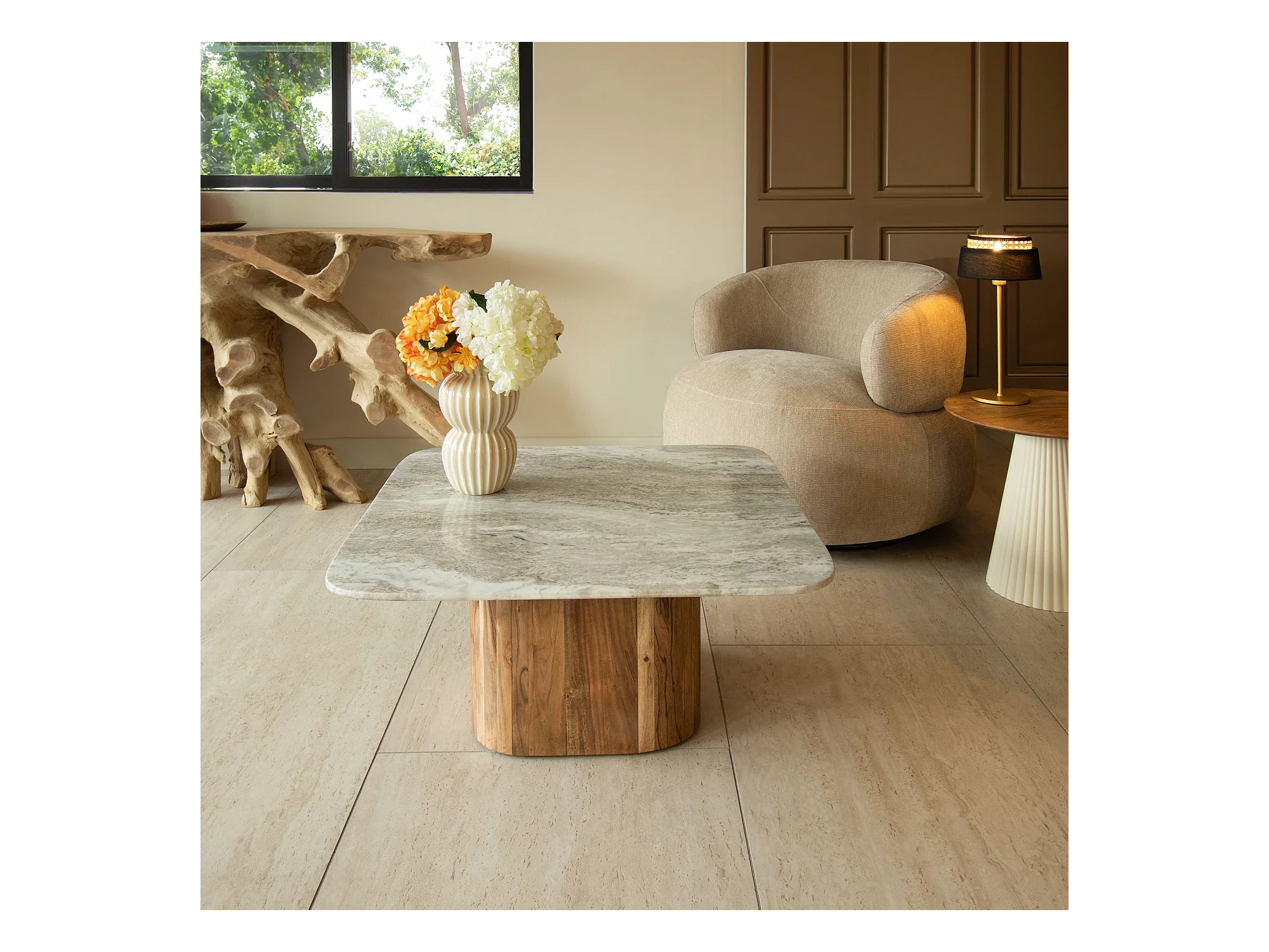 Now's Home - Table Basse En Marbre Gris Et Pied En Bois D'acacia