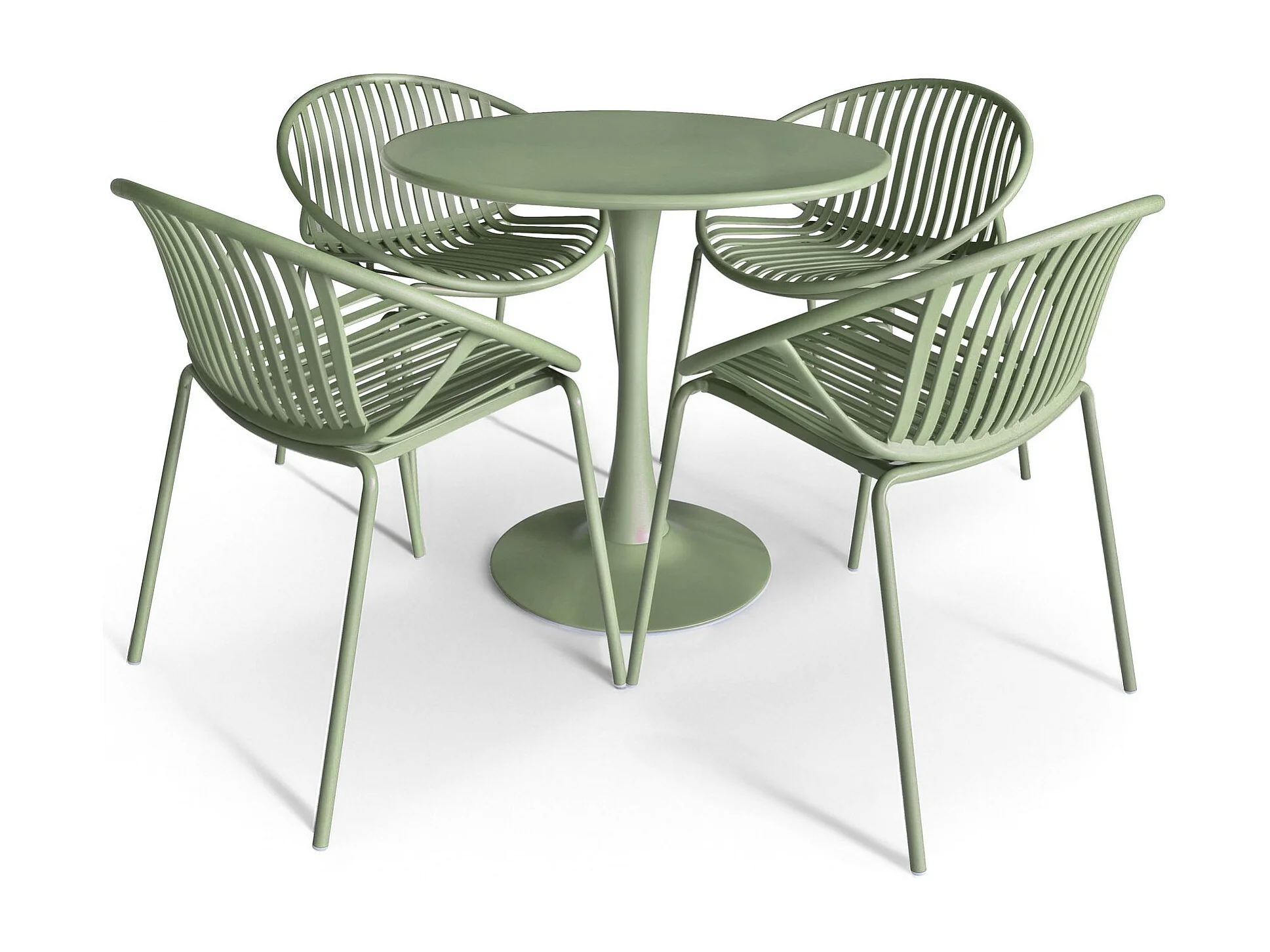 Now's Home - Table Et 4 Fauteuils De Table En Polypopylene Et Metal Vert Calypso