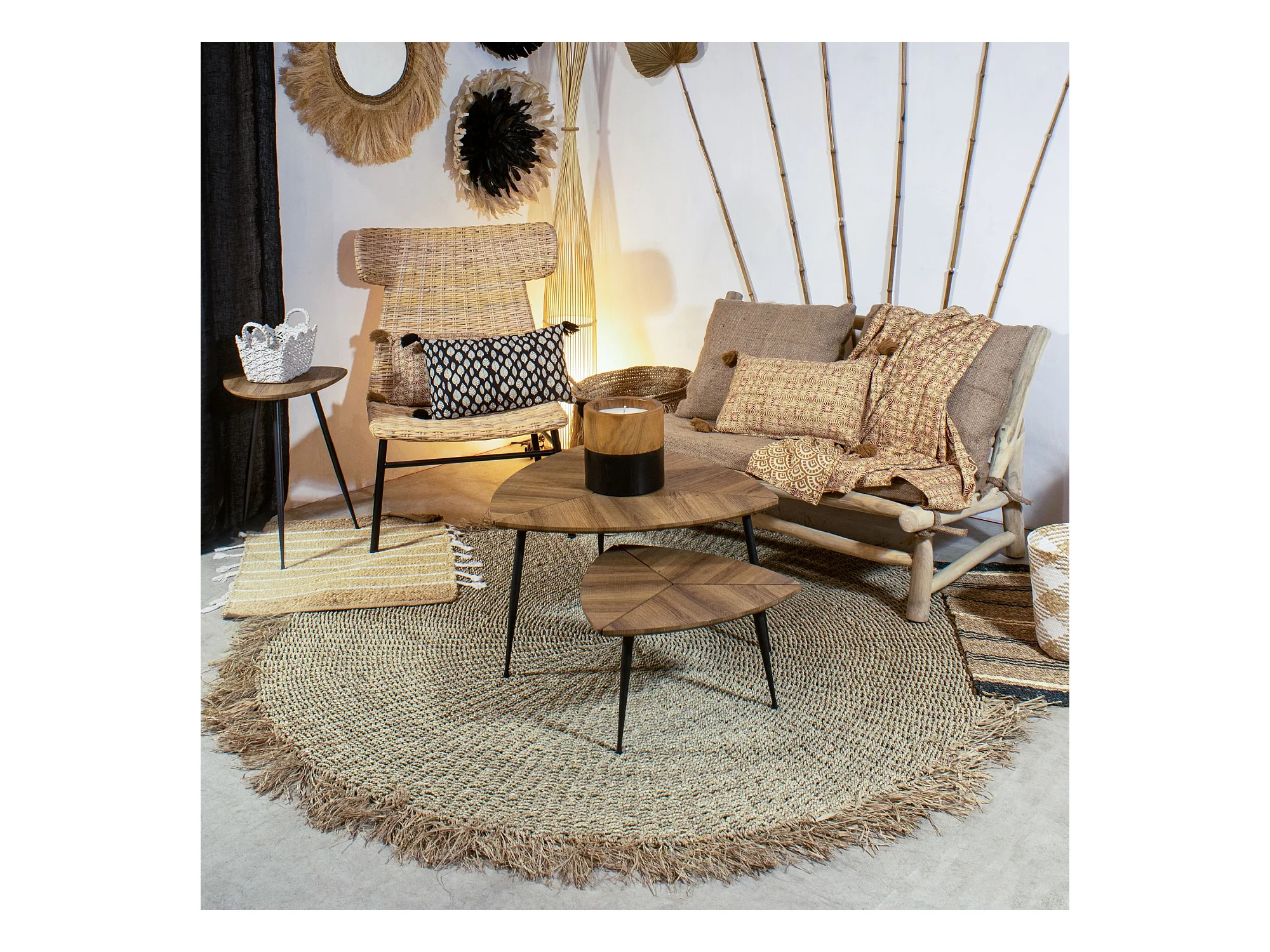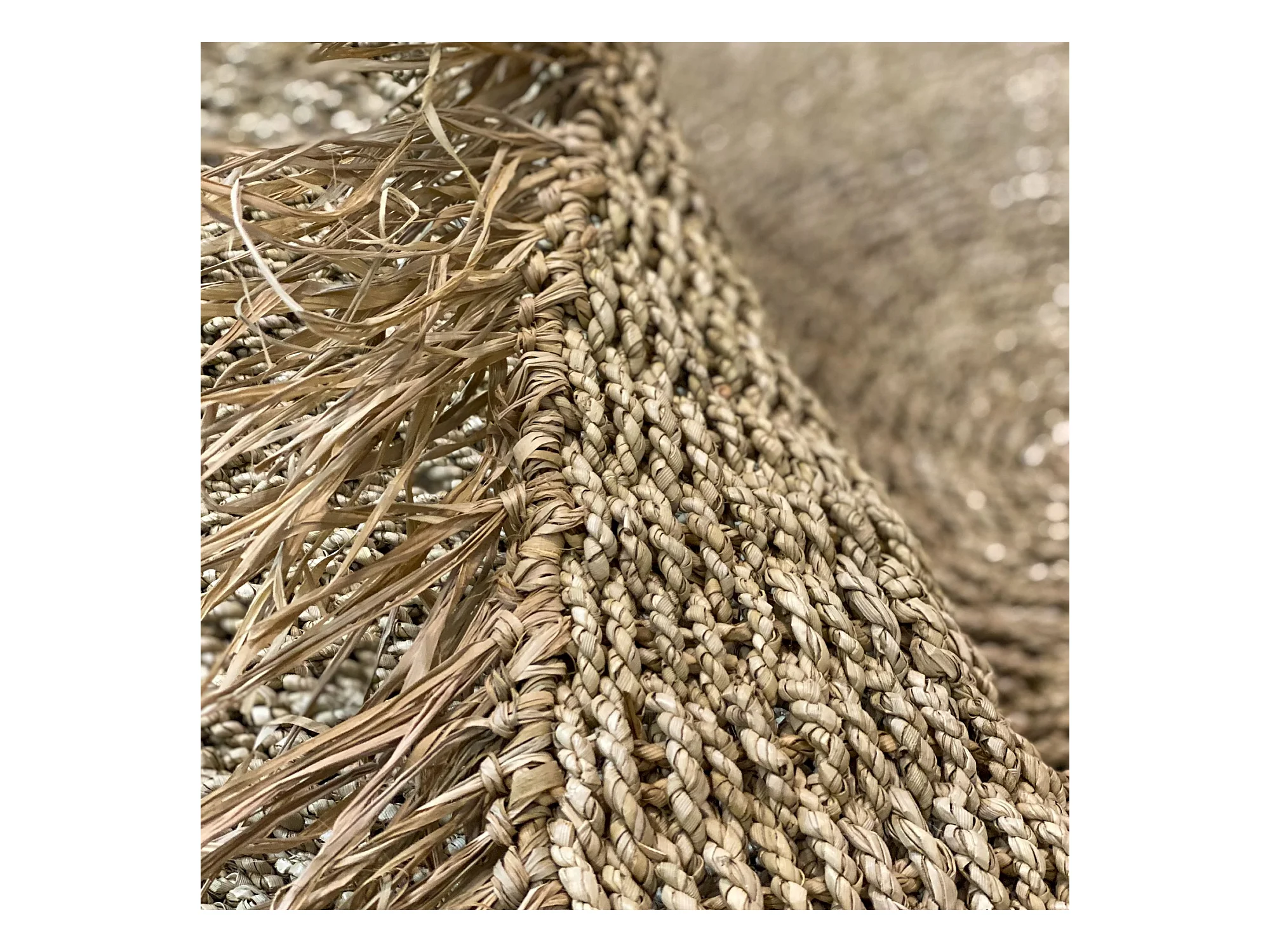 Now's Home - Tapis Rond En Fibres Naturelles De Mendong Frange D180cm Serifos