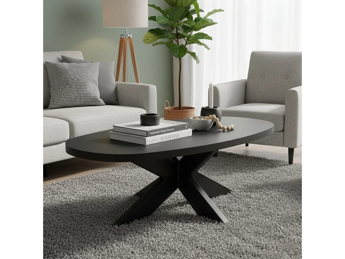 NOX - Table Basse Aspect Bois Piètement Araignée Métal Noir
