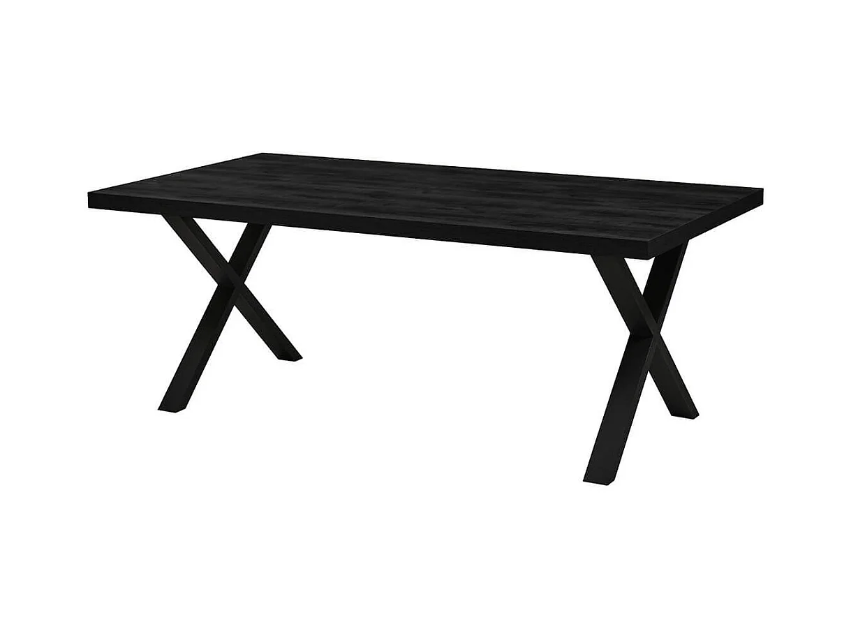 NOX - Table Rectangulaire 230cm Aspect Bois Noir Piètement X Métal Noir