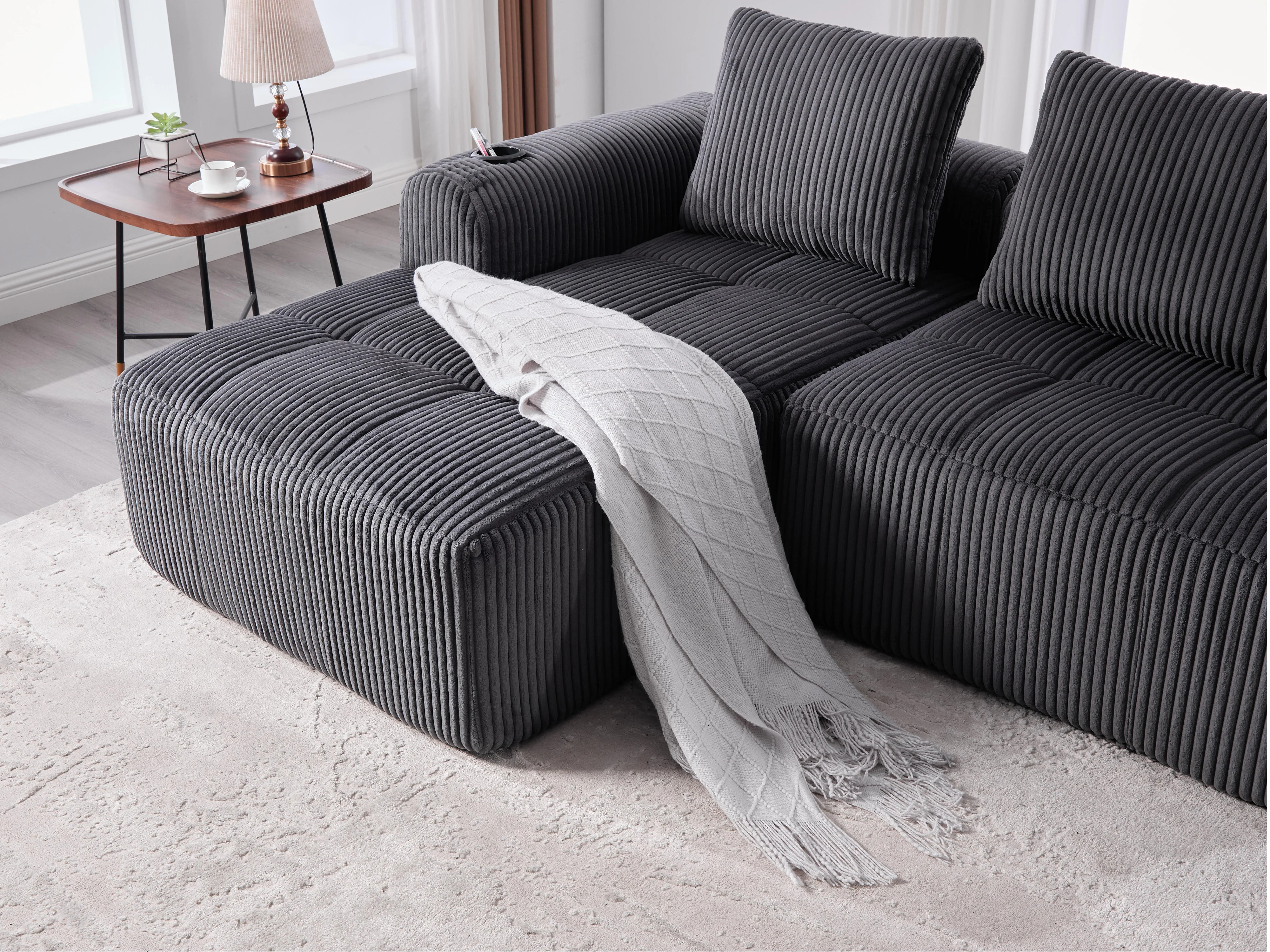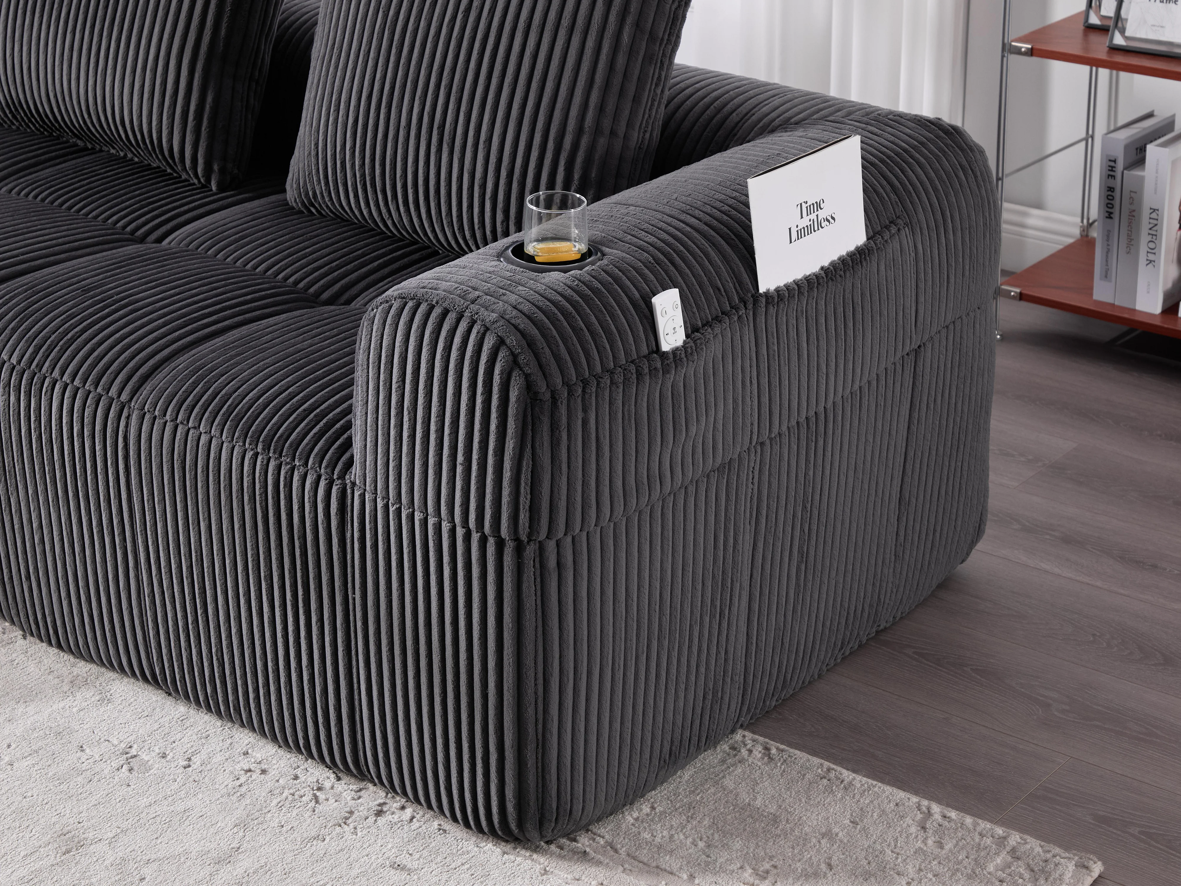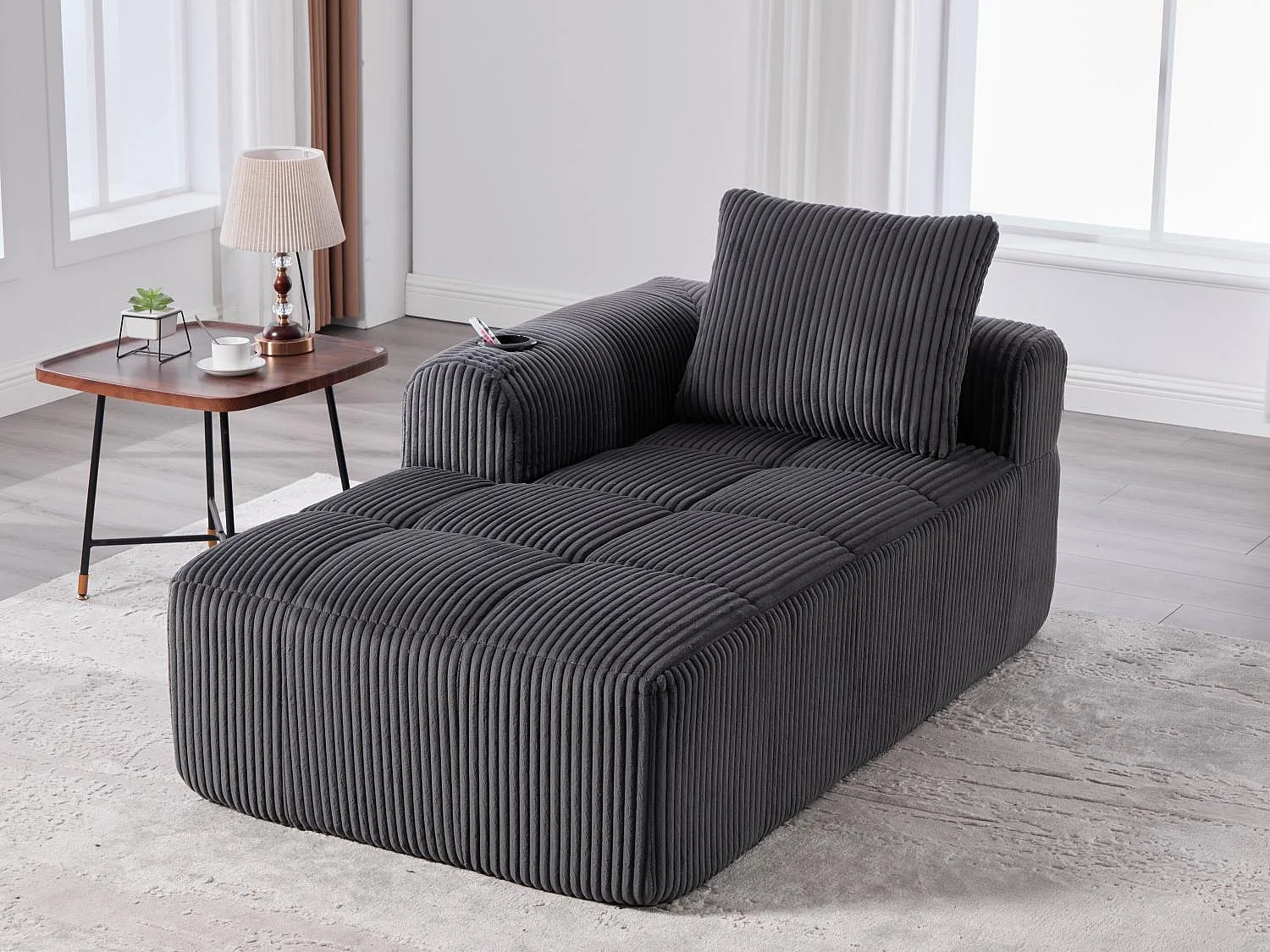 Nube - Méridienne en Velours Côtelé - Mousse Haute Densité, Rangement & Porte-Gobelets – Idéale pour Salon, Studio et Petits Espaces