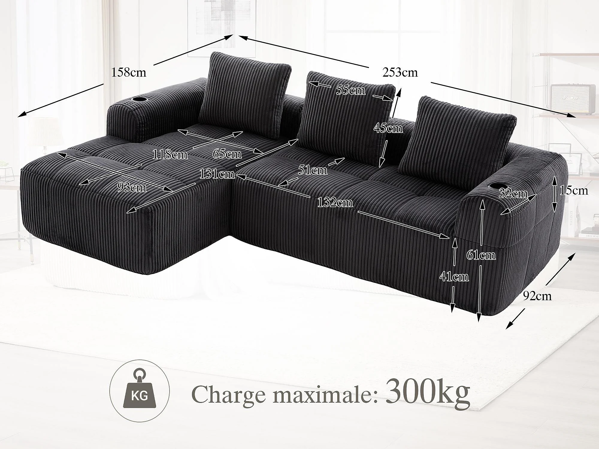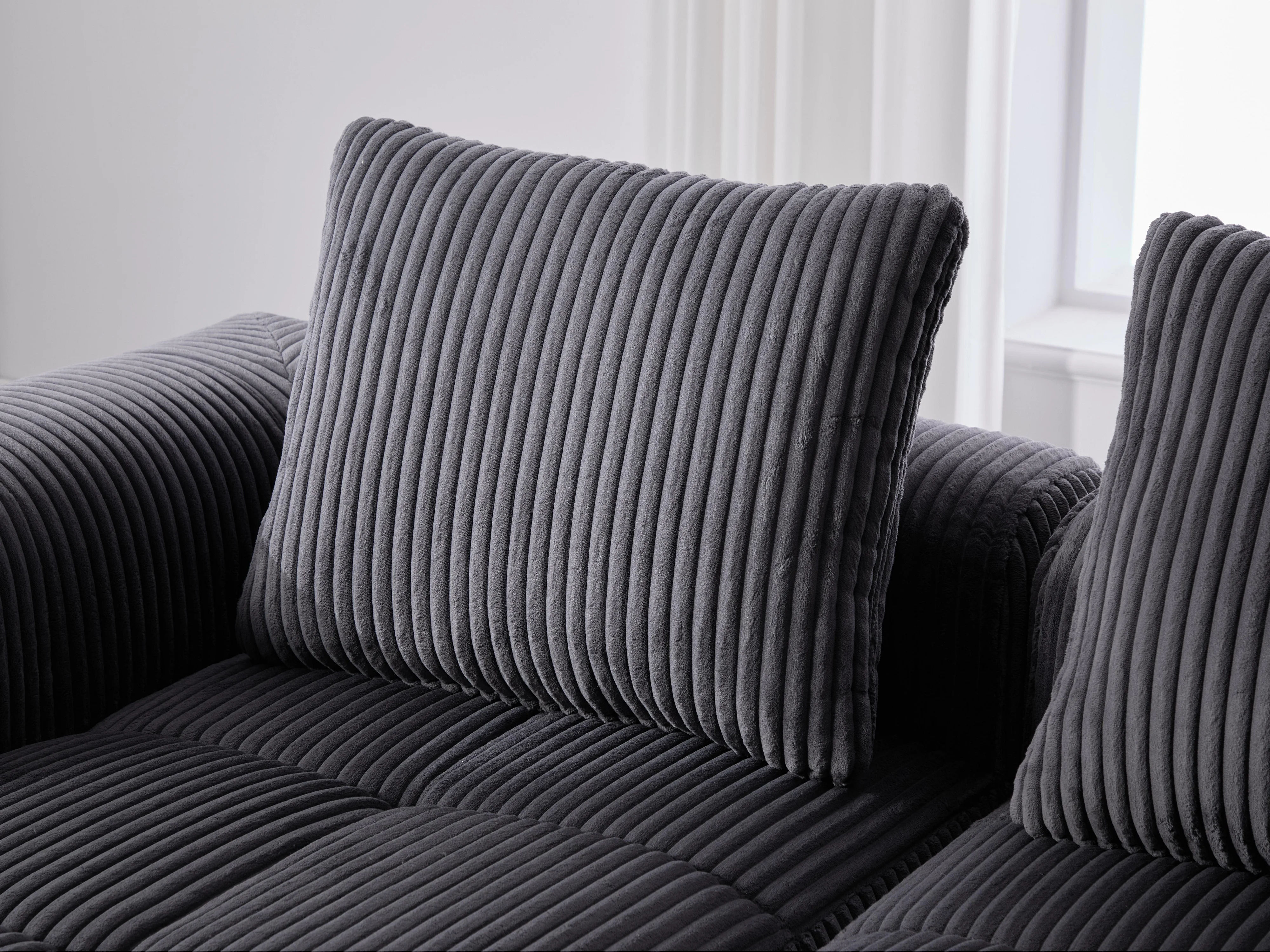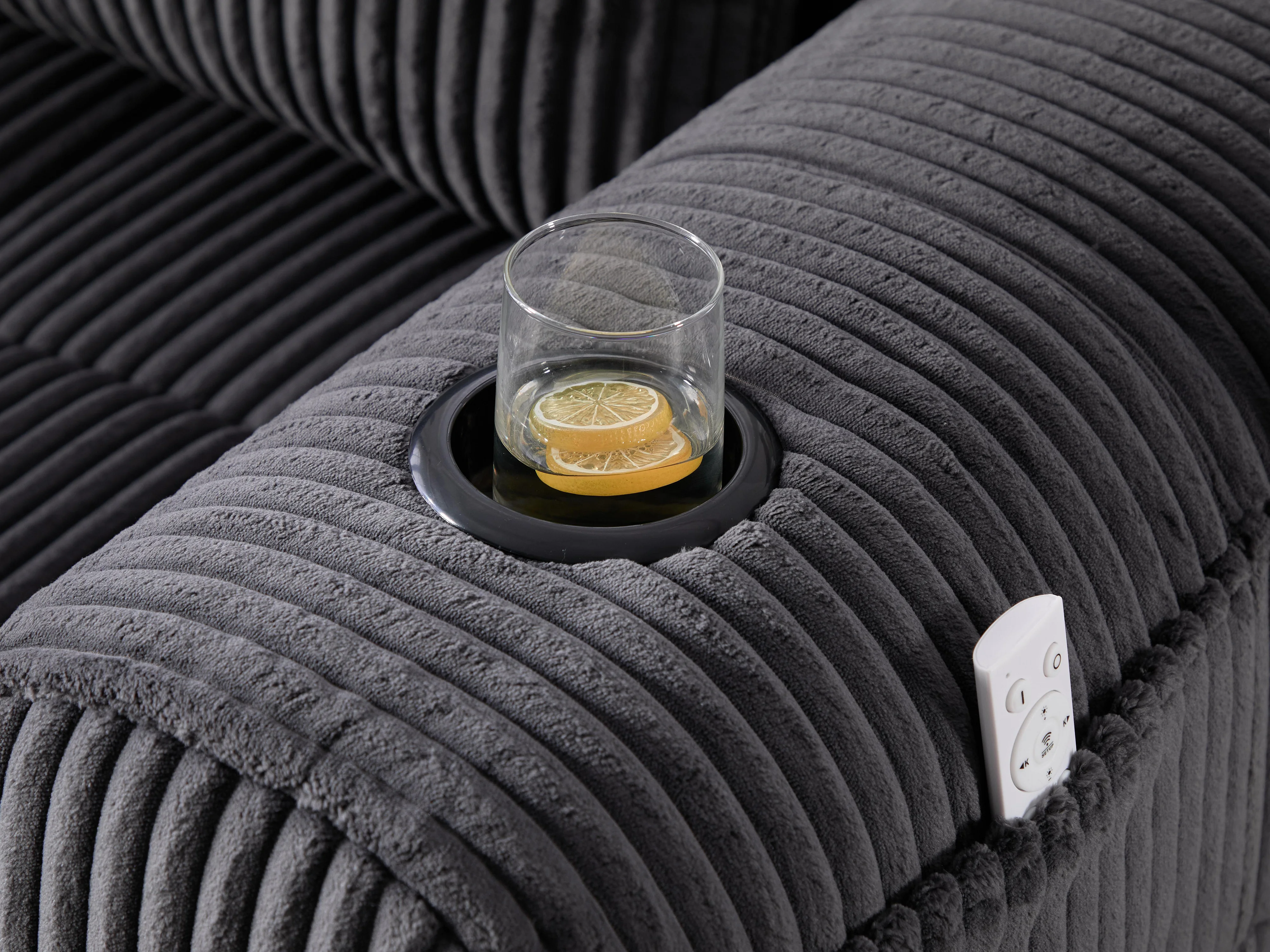 Nube - Méridienne en Velours Côtelé - Mousse Haute Densité, Rangement & Porte-Gobelets – Idéale pour Salon, Studio et Petits Espaces