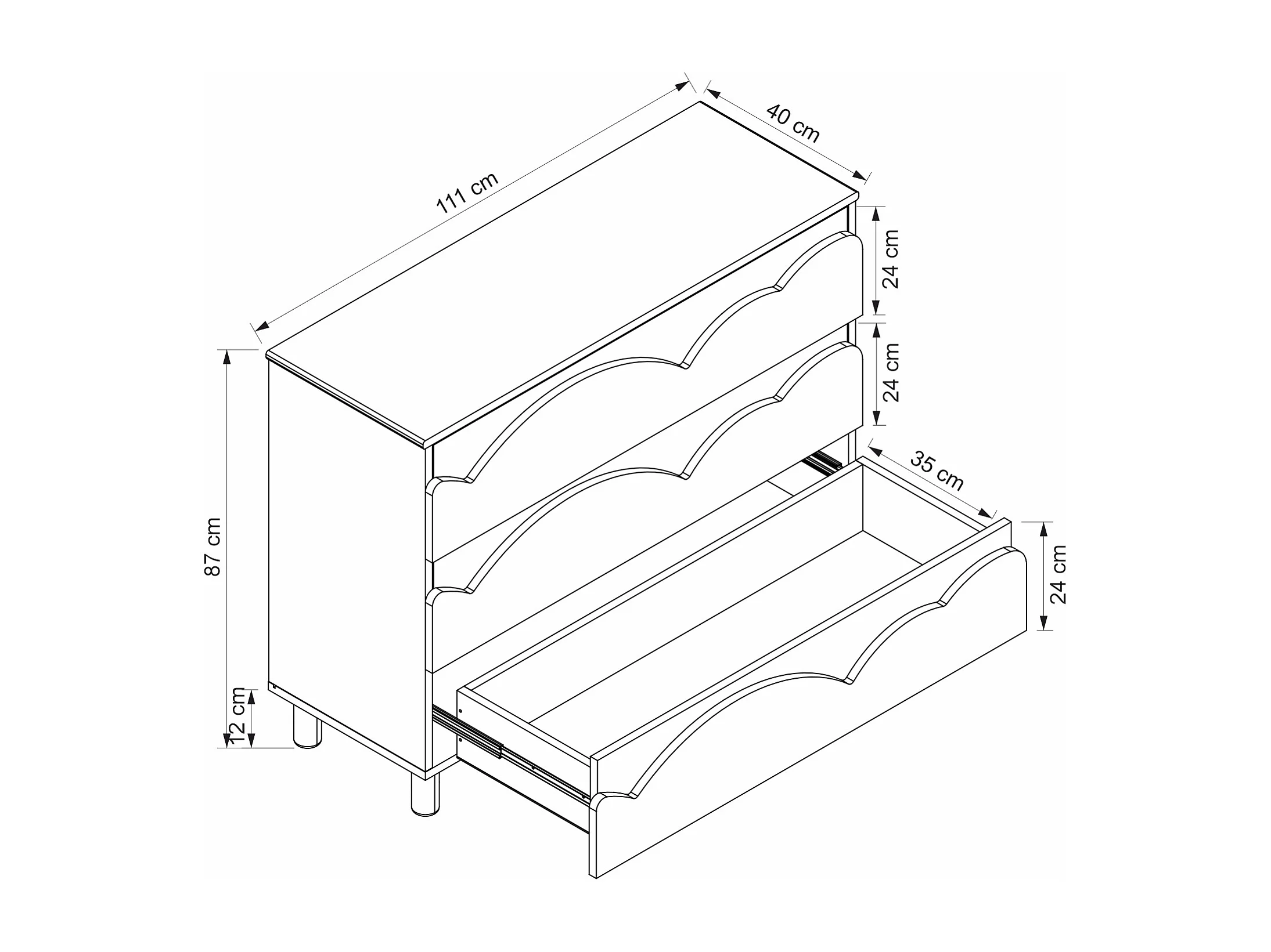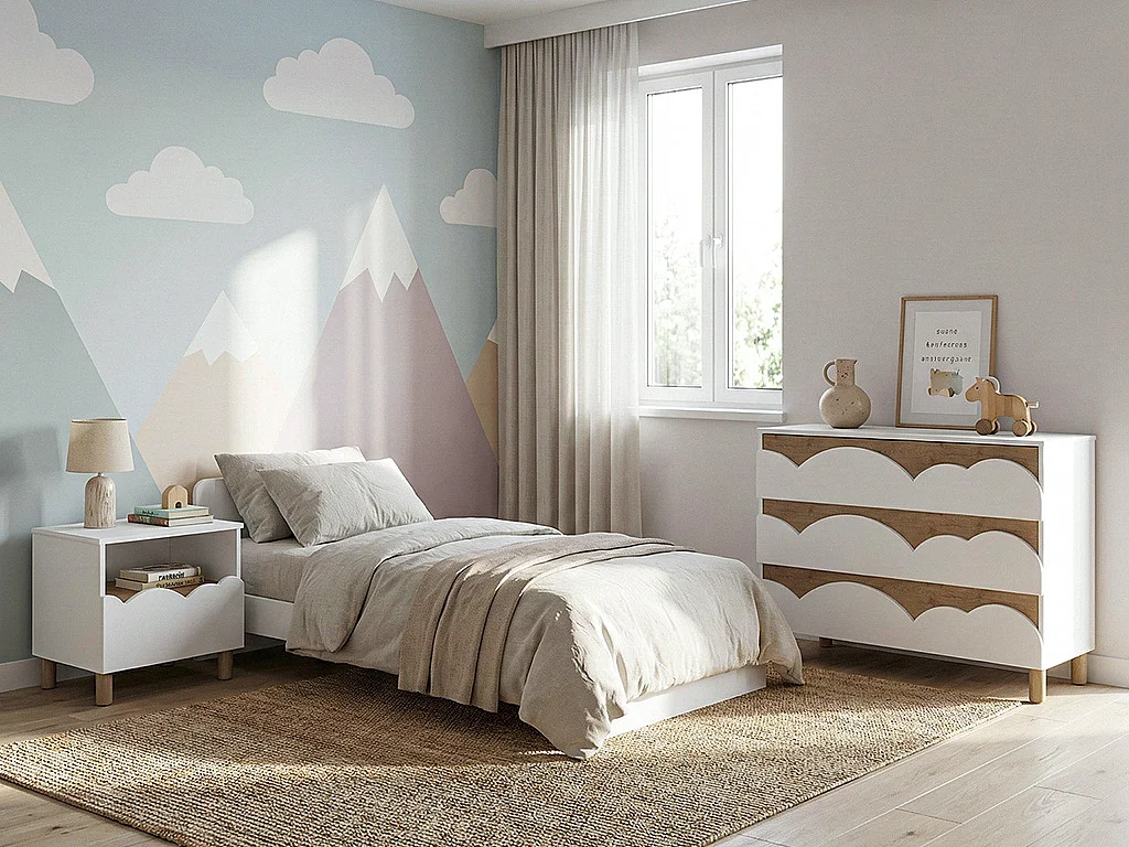 Commode 3 tiroirs – Blanc et naturel – NUBORELA