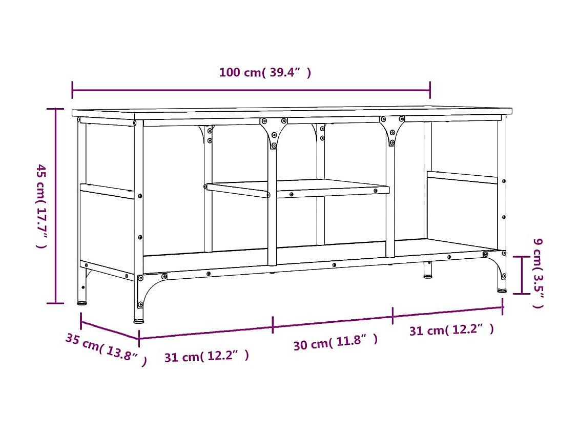 Numa Meuble TV sonoma gris 100x35x45 cm bois d'ingénierie et fer