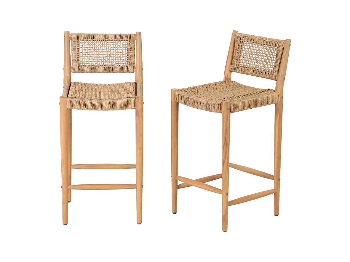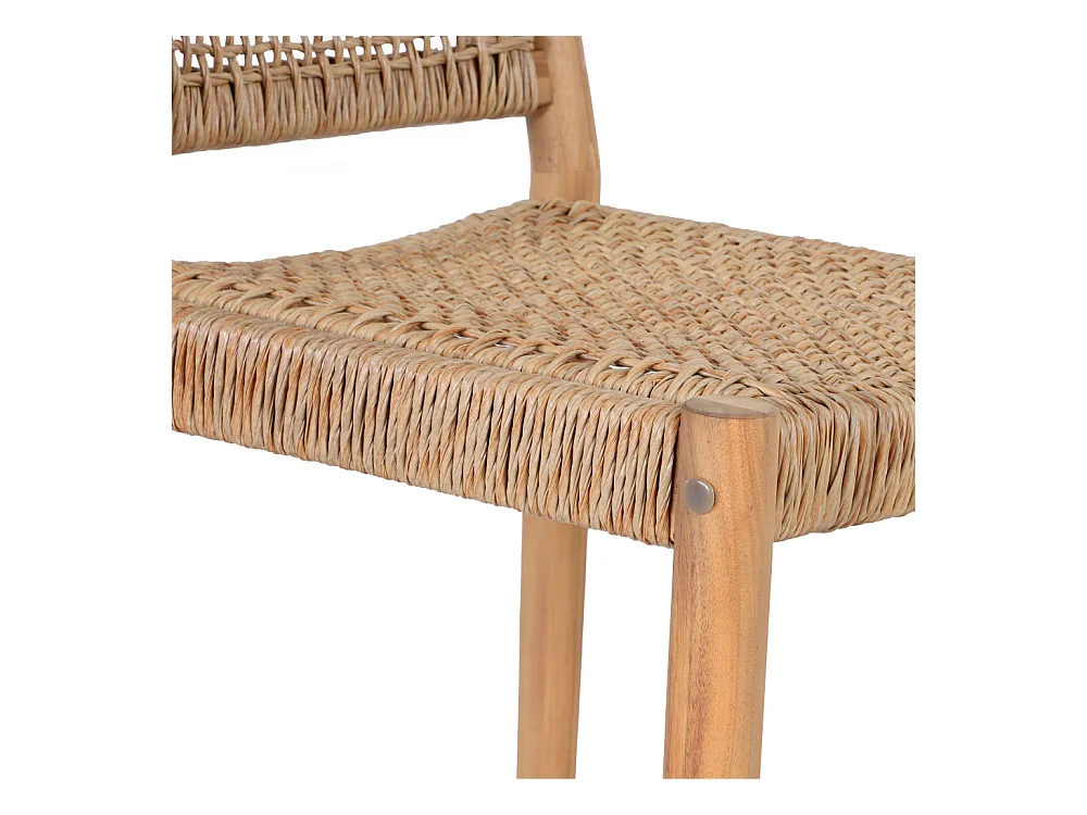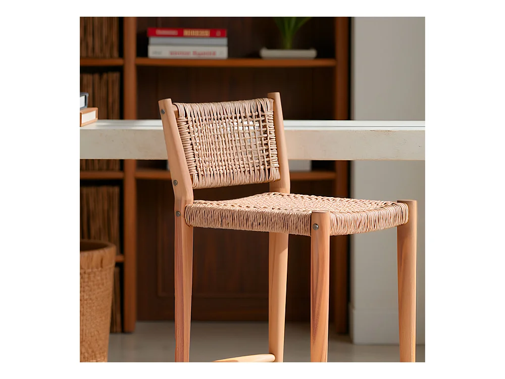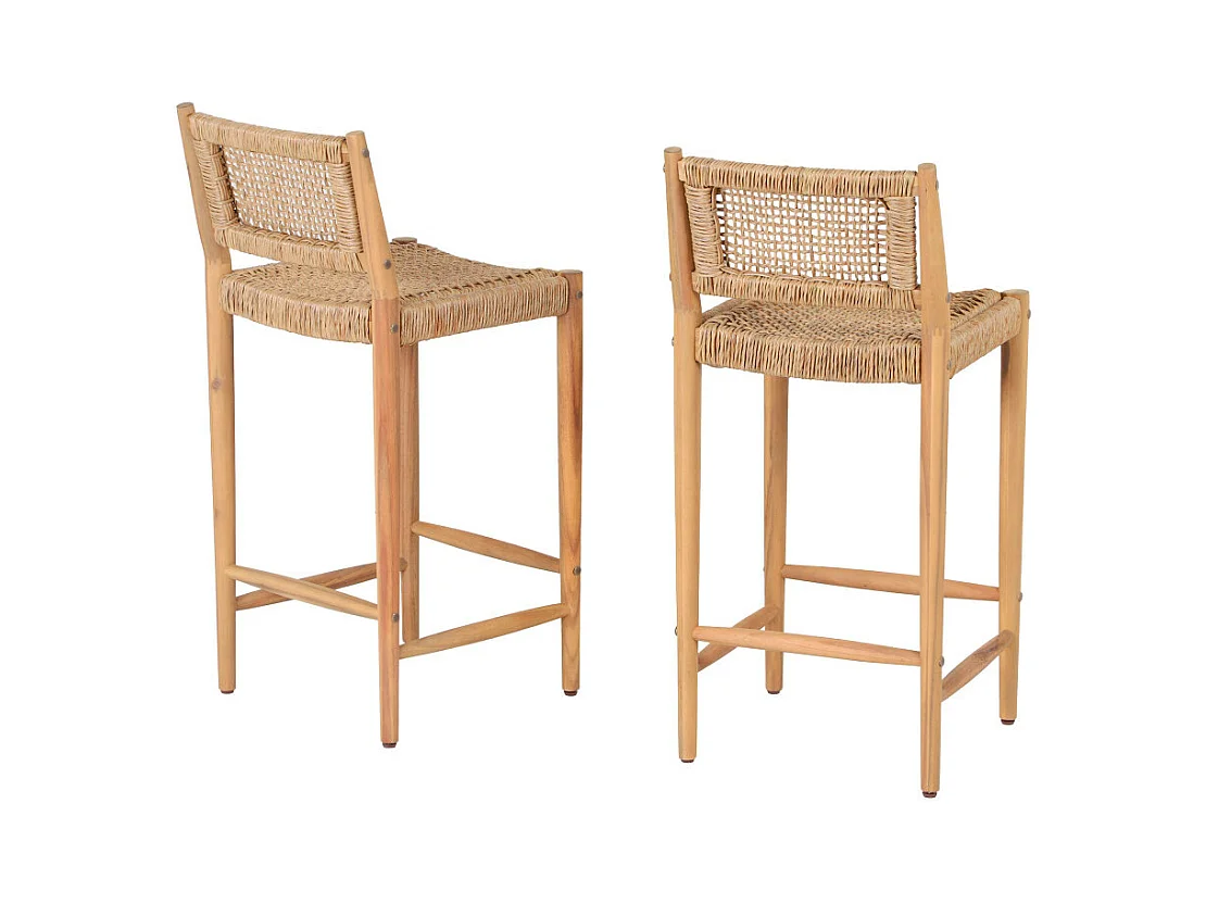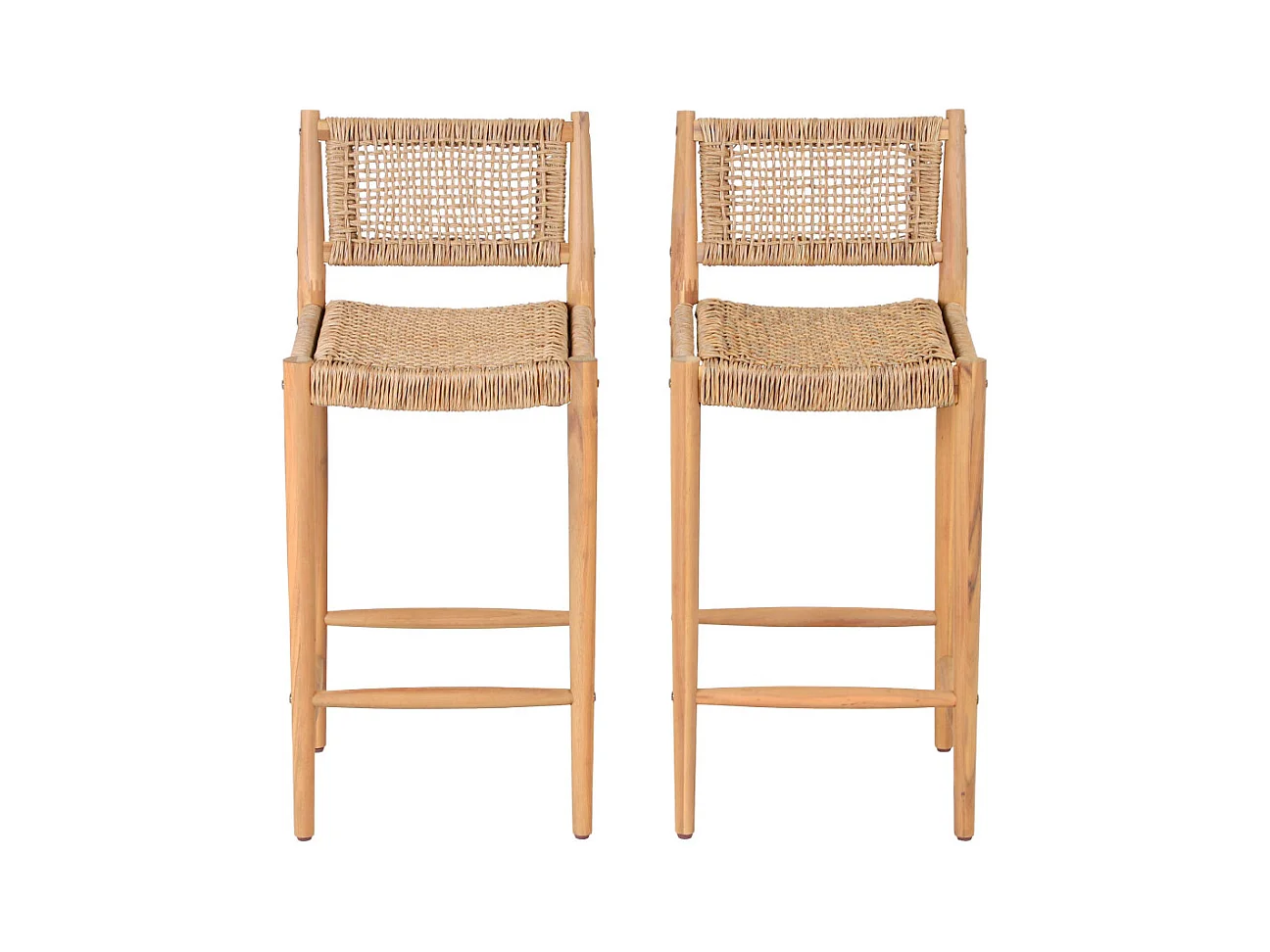 Nuri - Lot de 2 tabourets de bar intérieur/extérieur en bois d'acacia et résine tressée H66cm - Bois clair