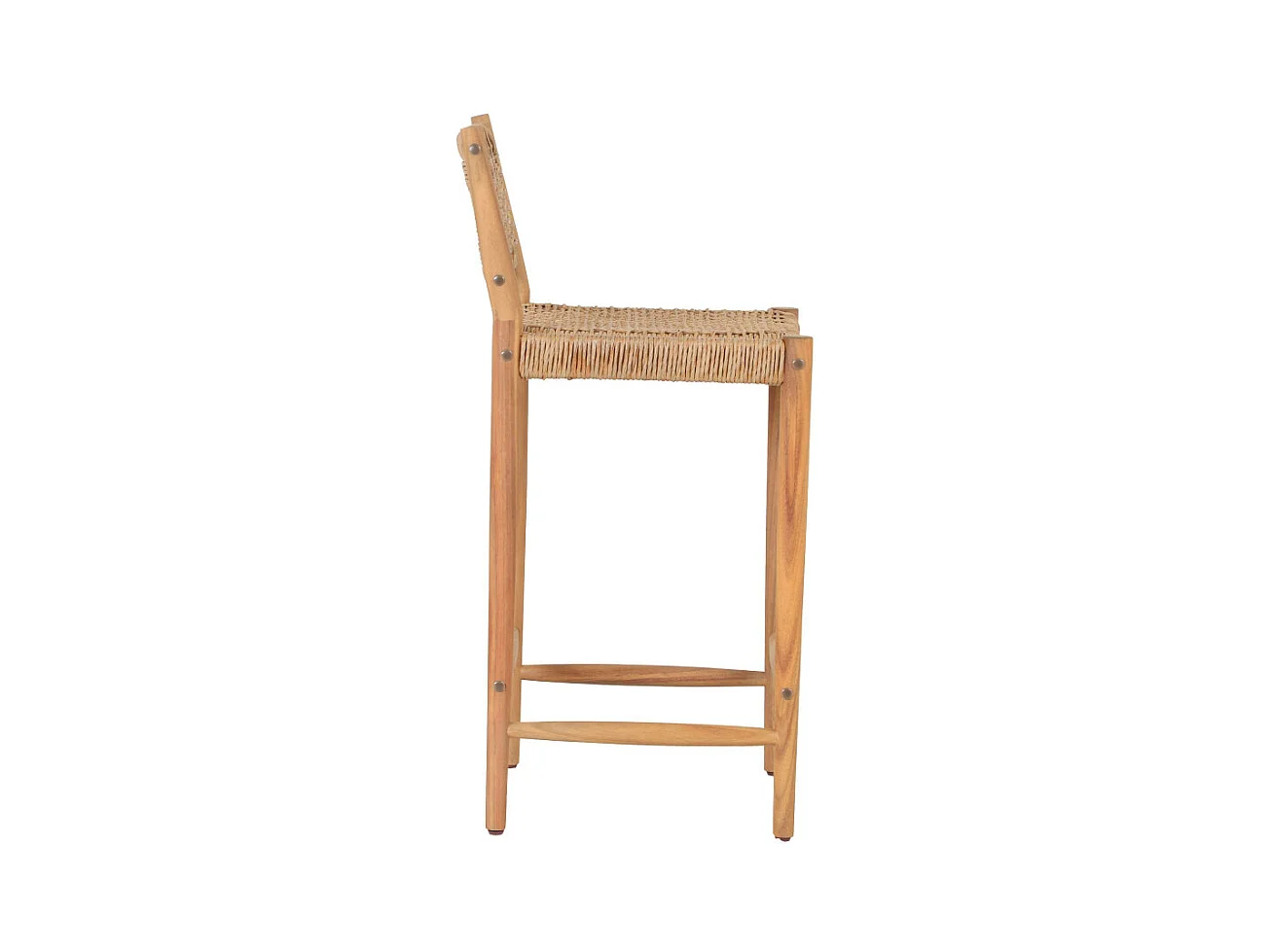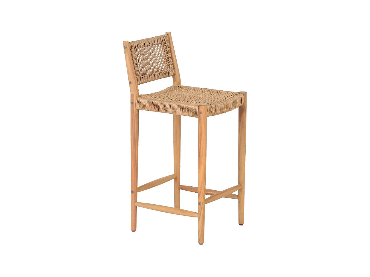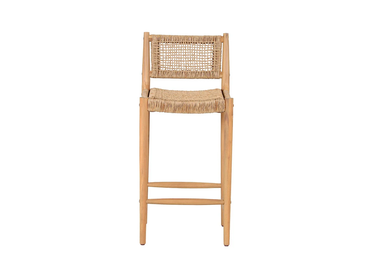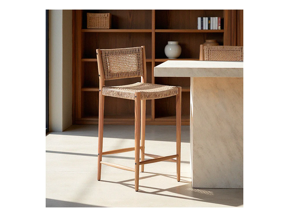 Nuri - Lot de 2 tabourets de bar intérieur/extérieur en bois d'acacia et résine tressée H66cm - Bois clair