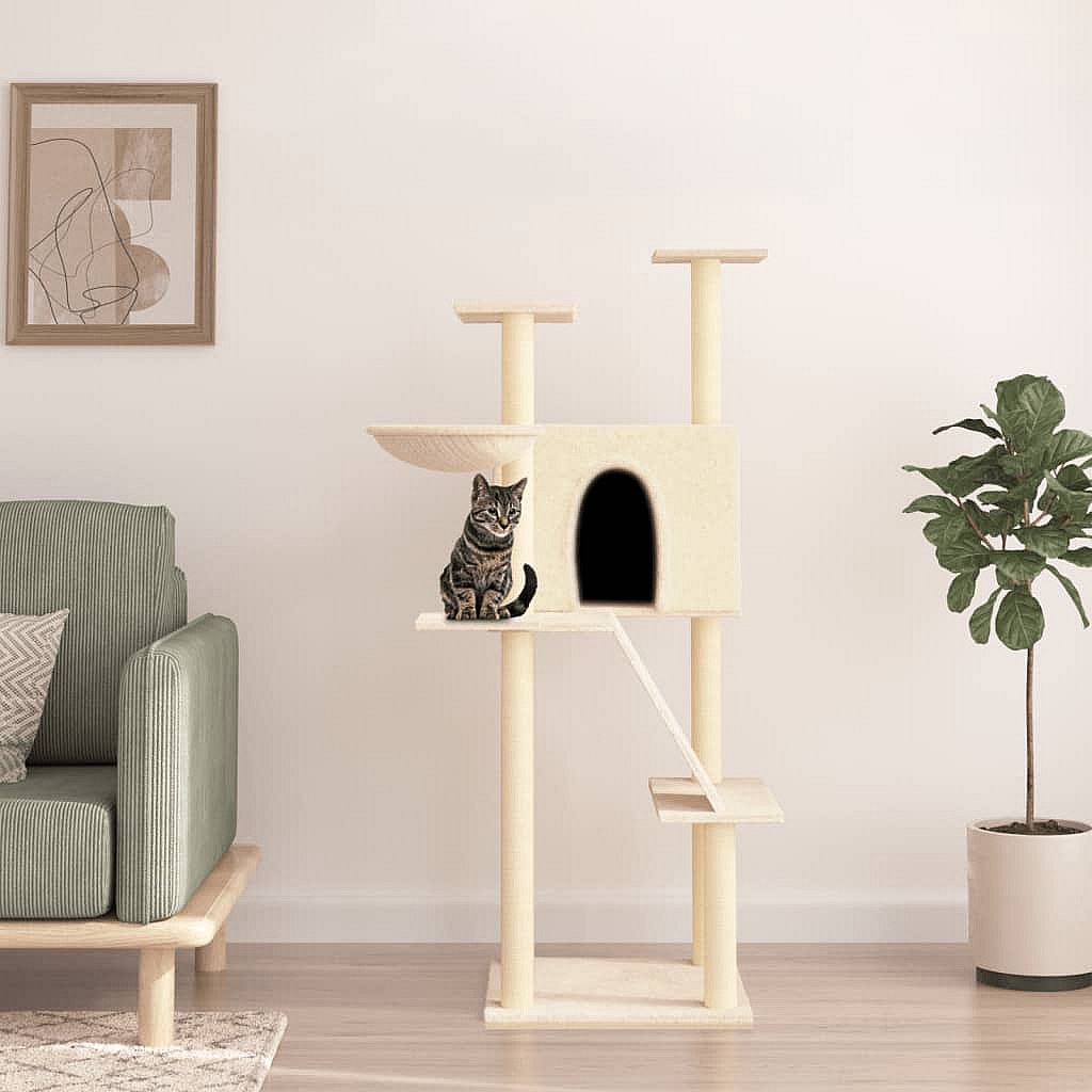 Nyfja Arbre à chat avec griffoirs en sisal crème 143 cm
