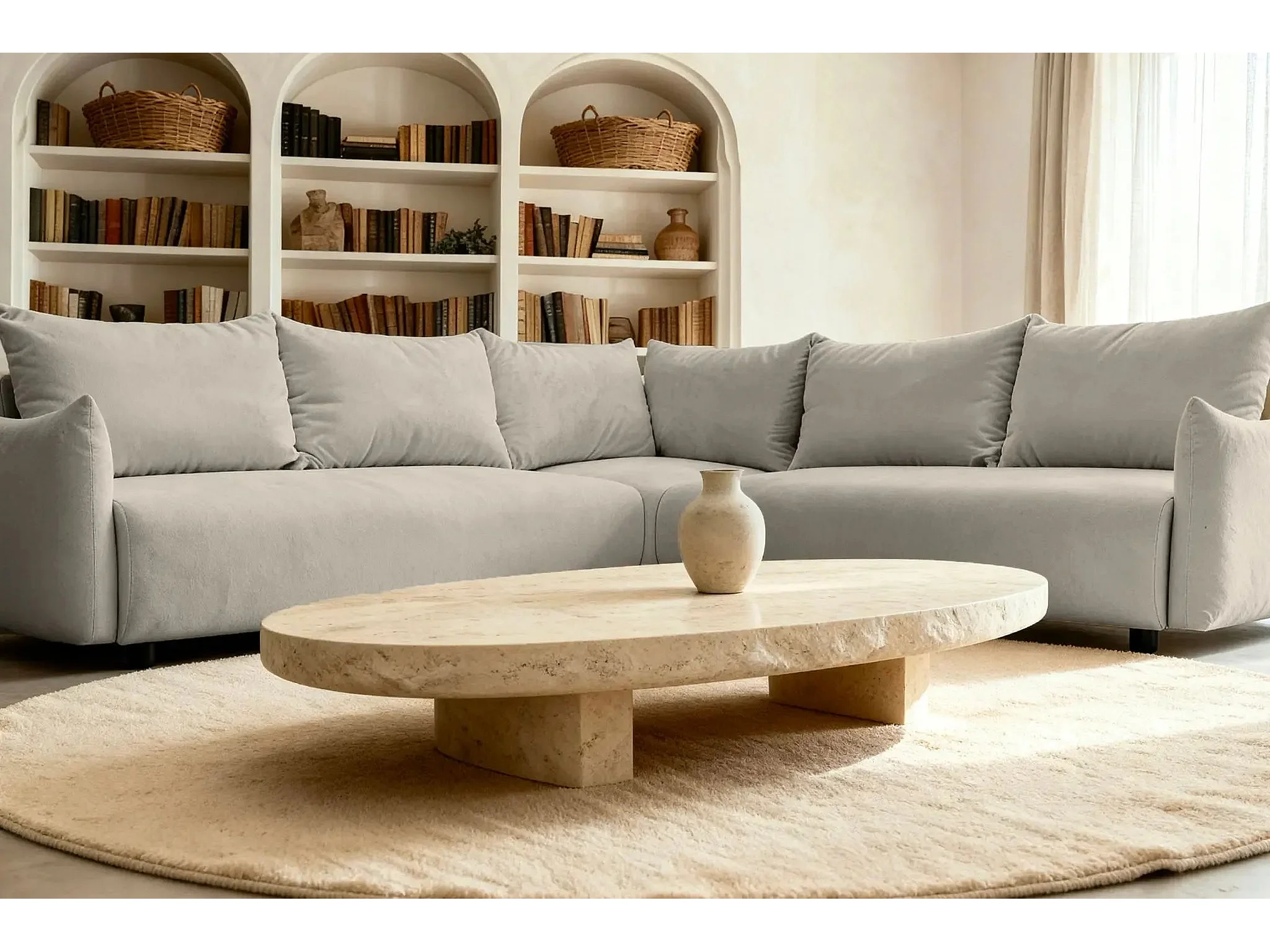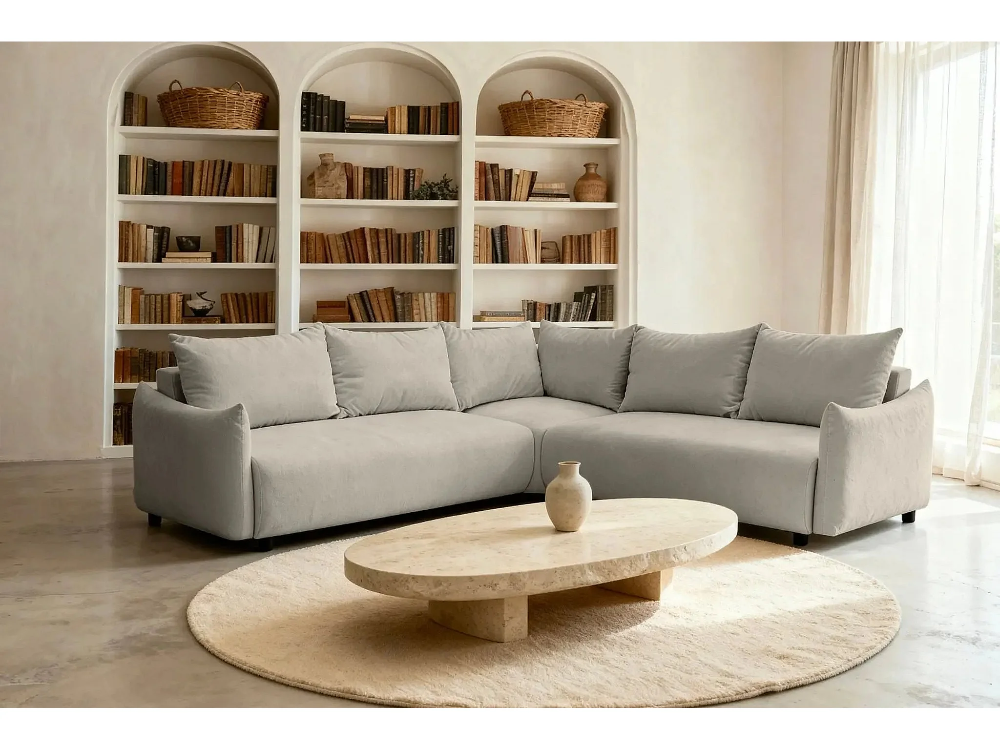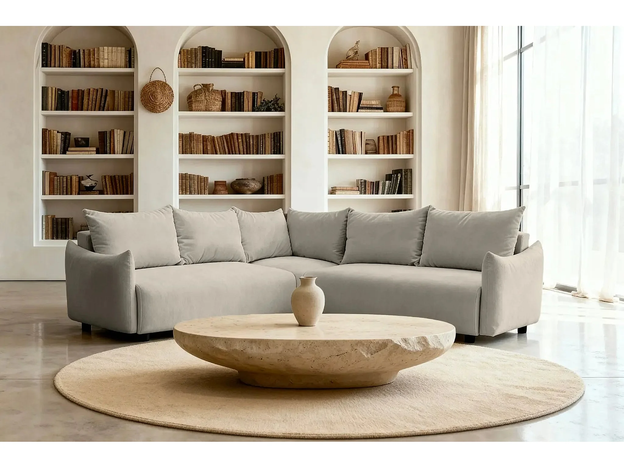 OCEANE - Canapé panoramique 5 places - Taupe