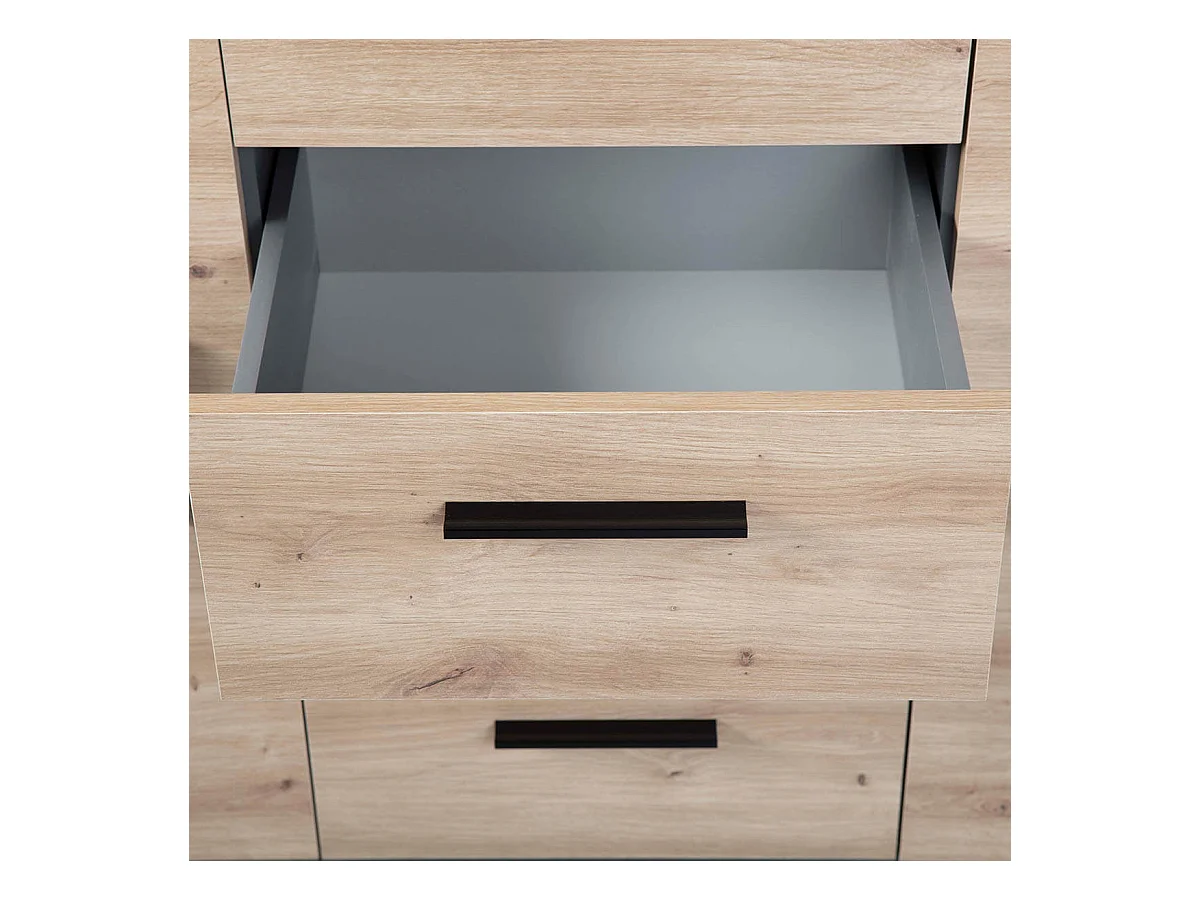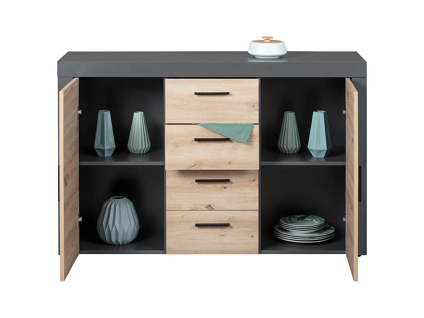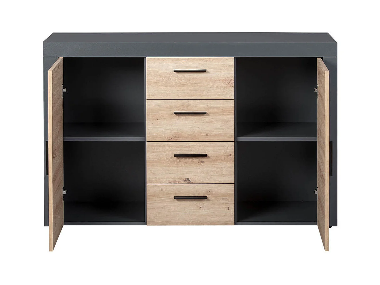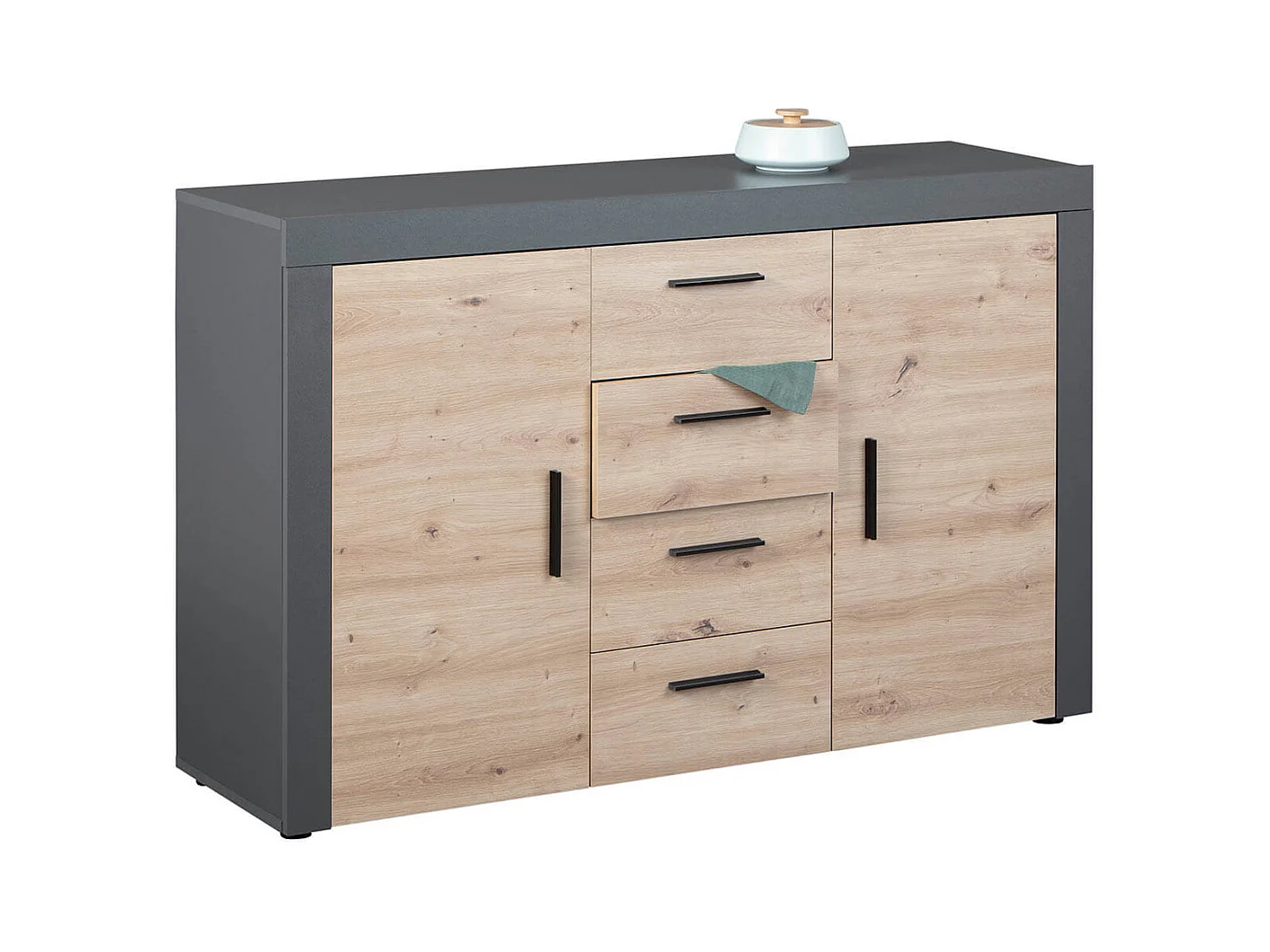OCTOBER - Commode 2 Portes 4 Tiroirs Gris et Effet Bois