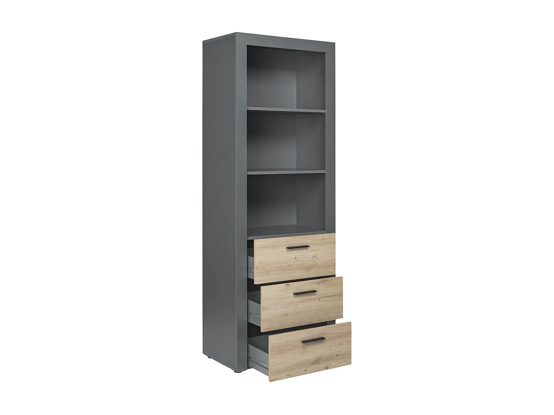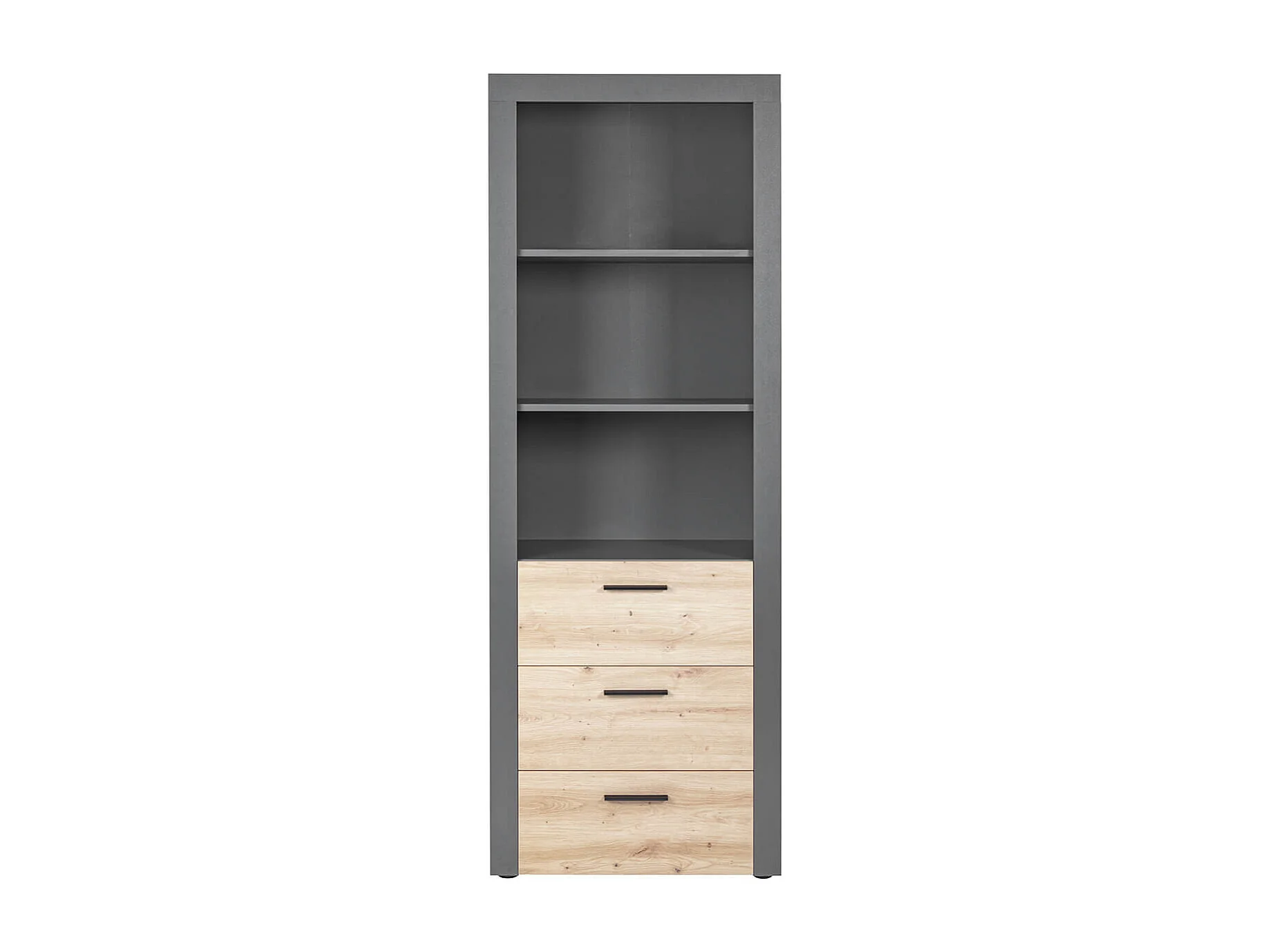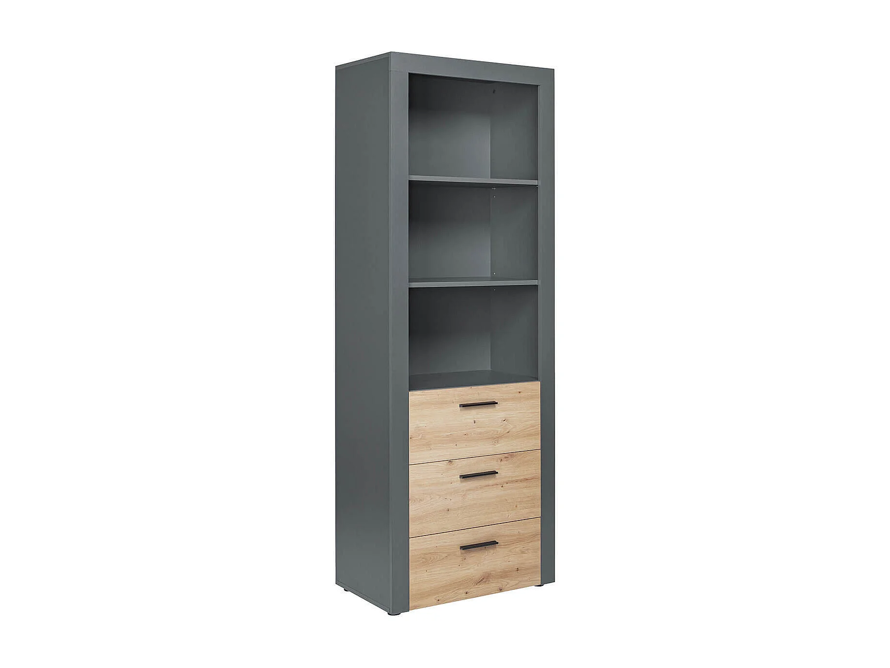 OCTOBER - Etagère 3 Niches 3 Tiroirs Gris et Effet Bois