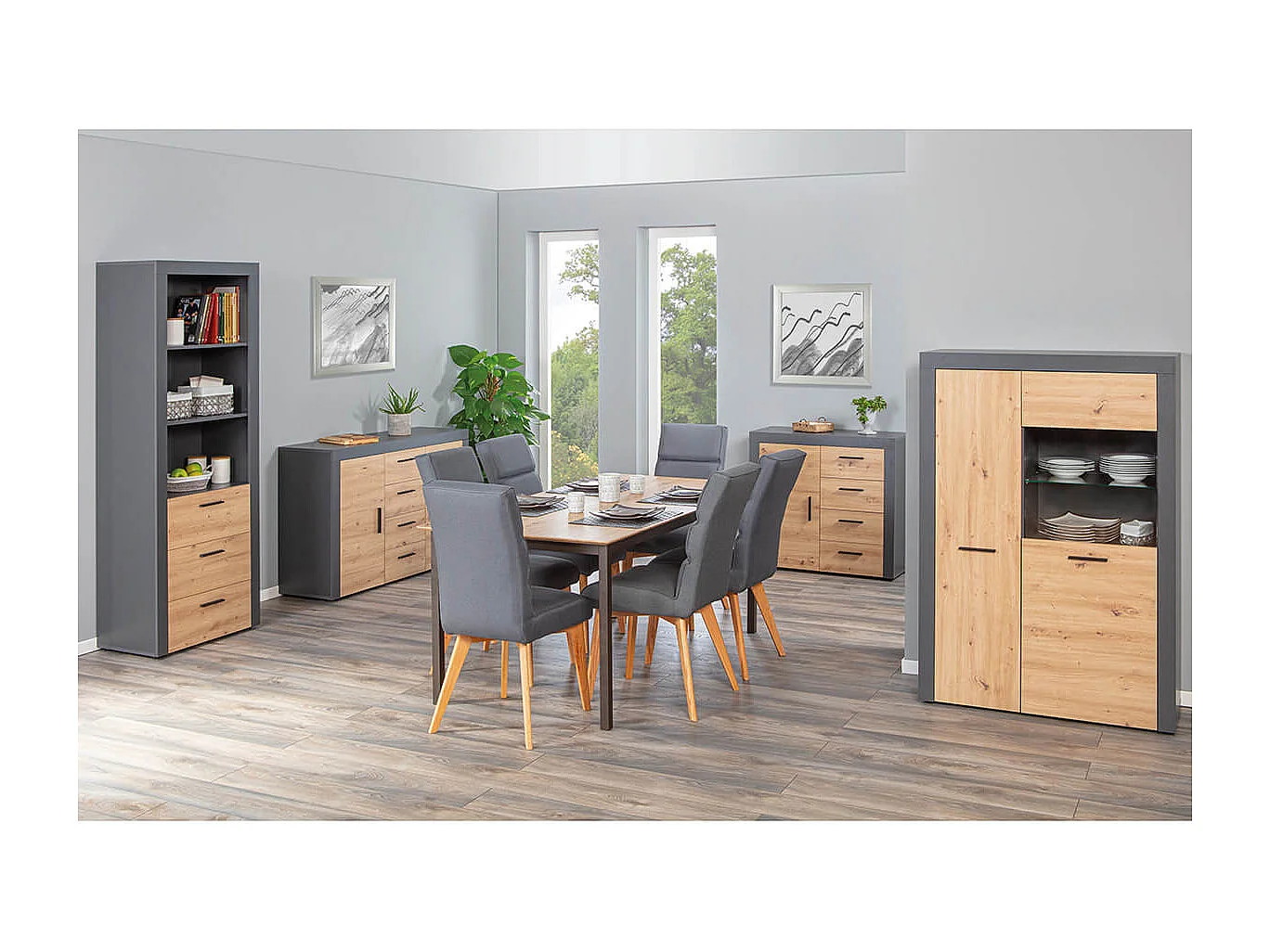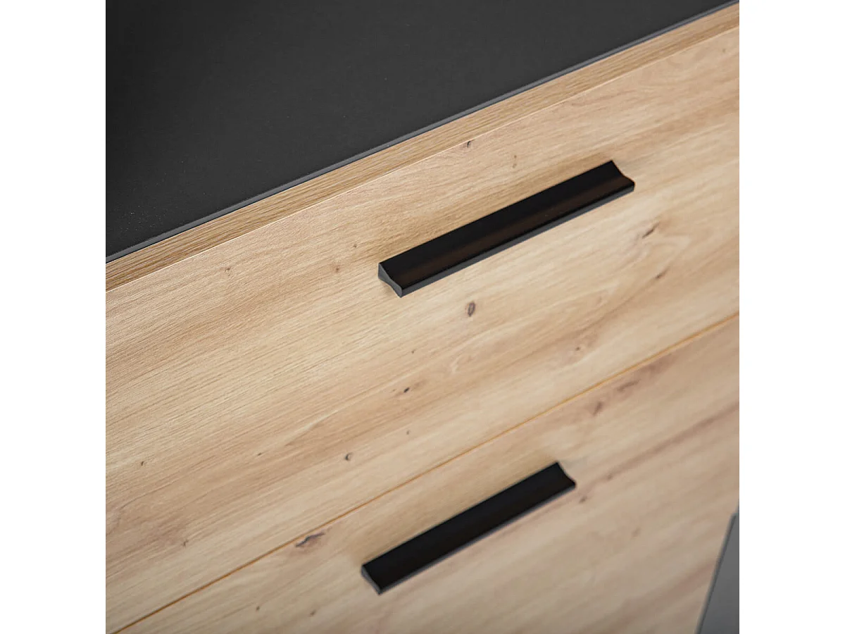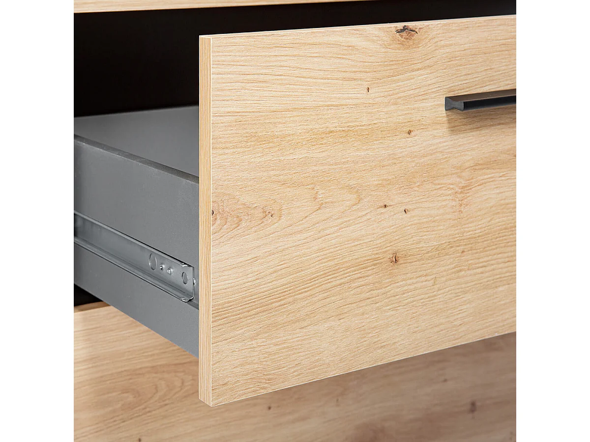 OCTOBER - Etagère 3 Niches 3 Tiroirs Gris et Effet Bois