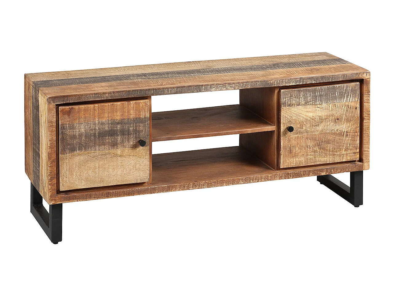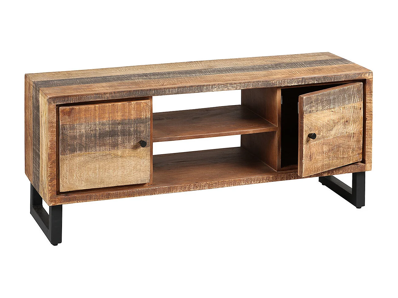ODILON - Meuble TV 2 Portes Acier et Bois Massif