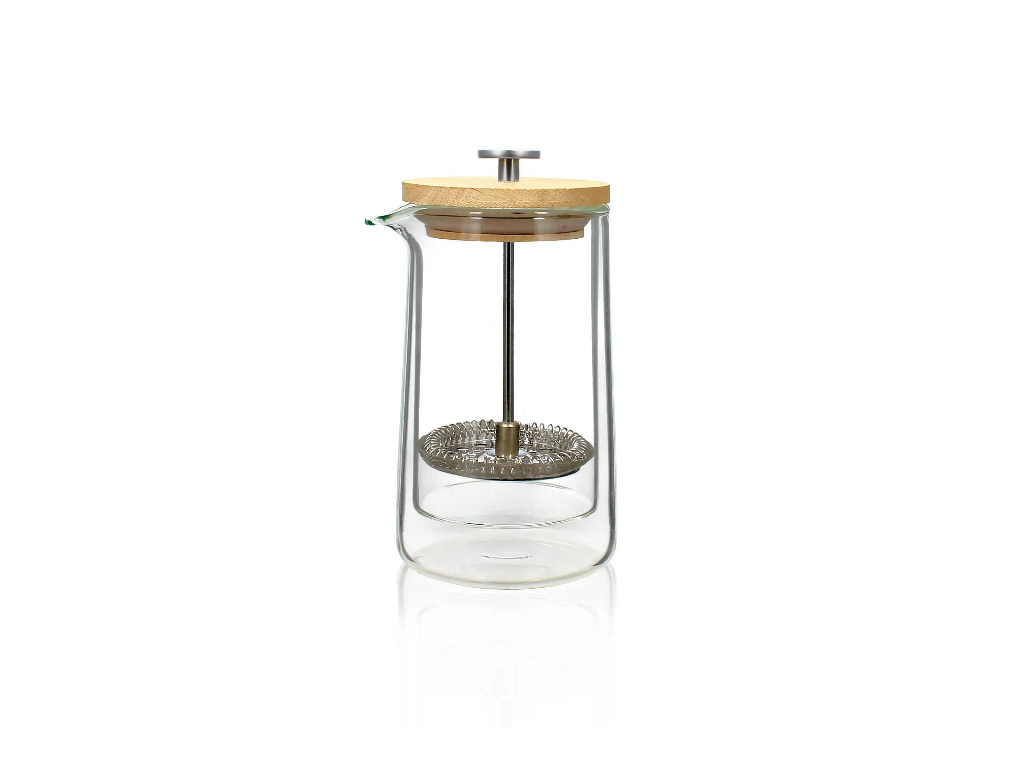 Ogo Living - Cafetiere Piston Octave 350ml En Verre Double Paroi Couvercle Bois