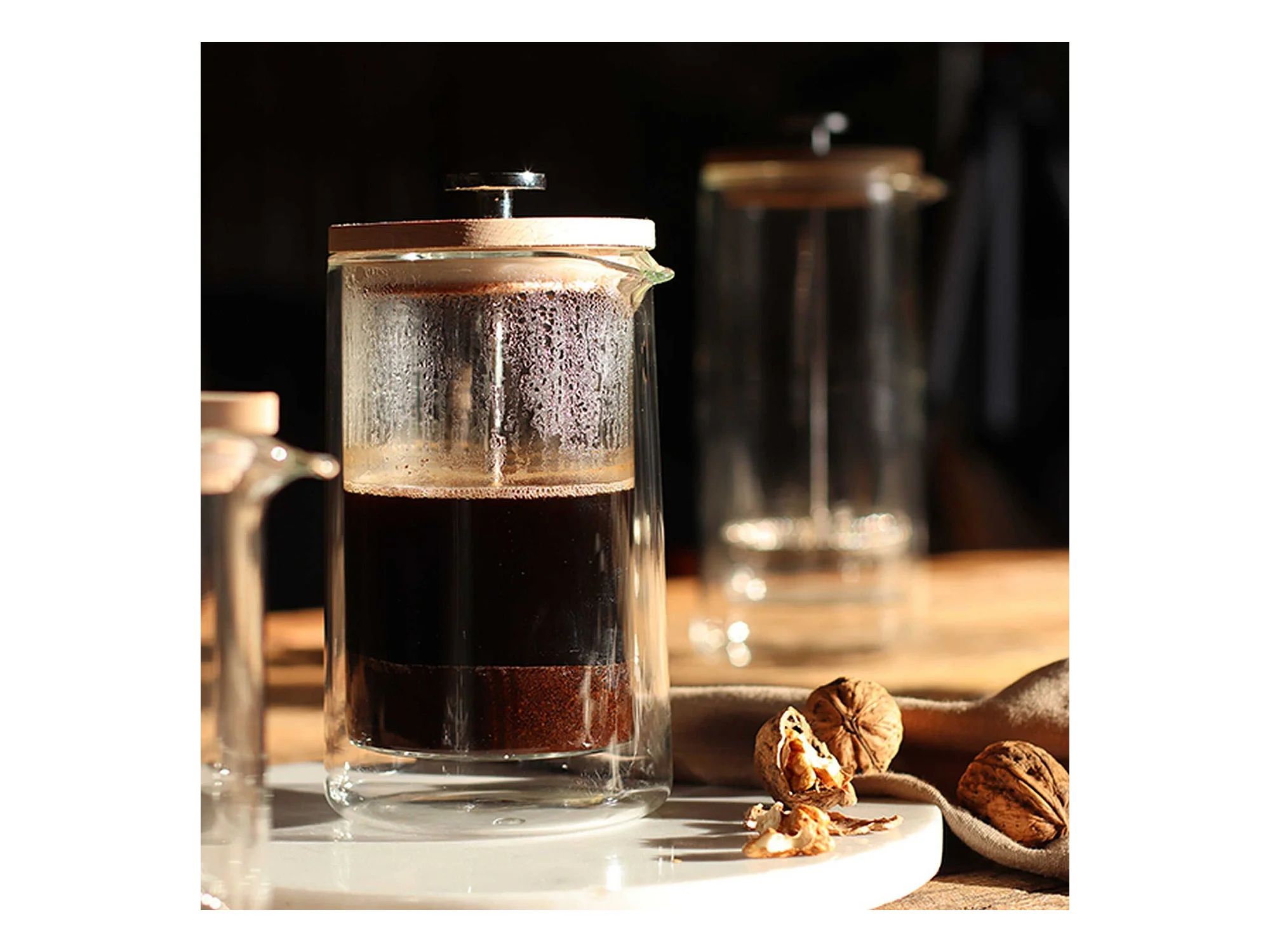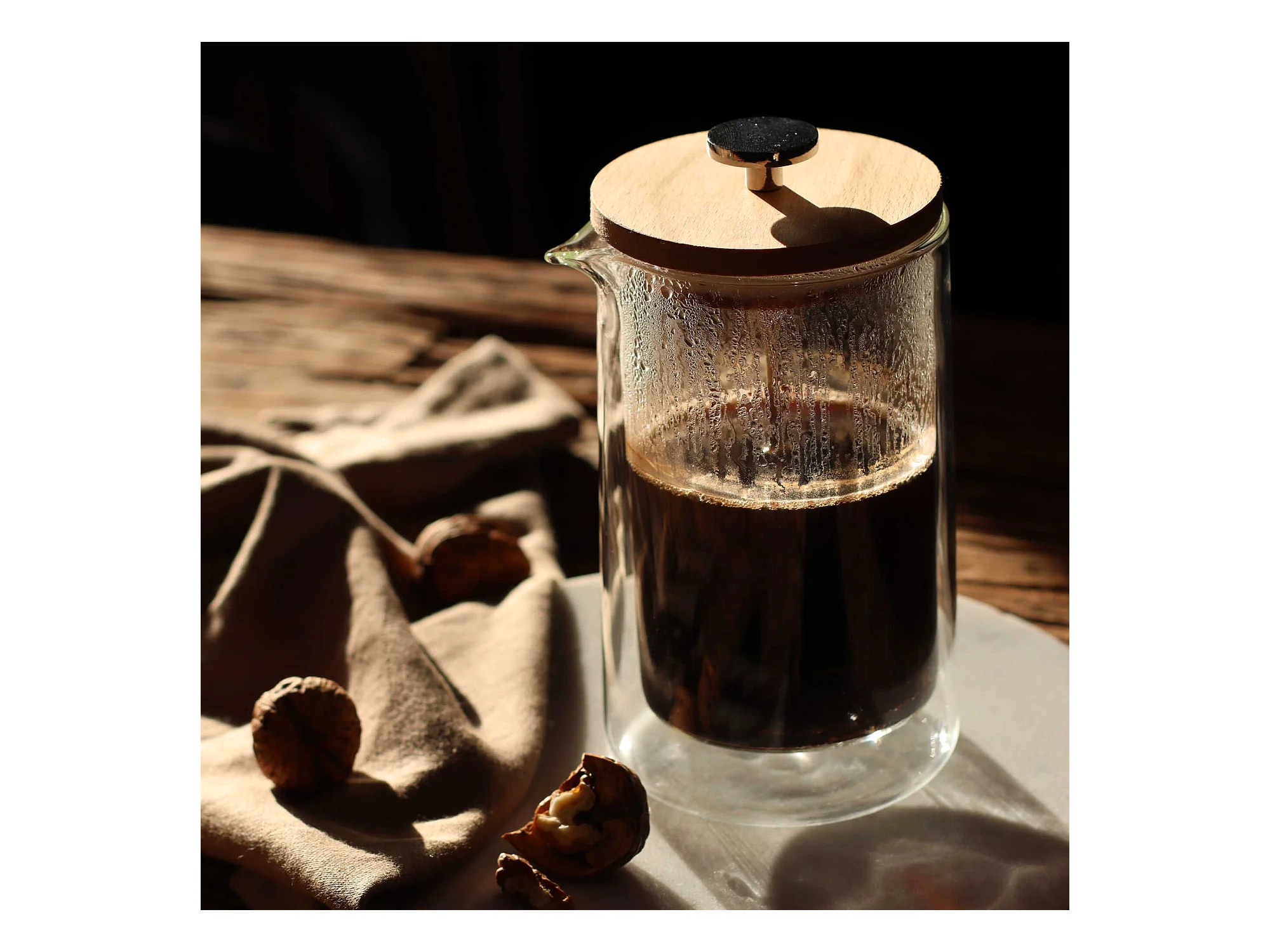 Ogo Living - Cafetiere Piston Octave 500ml En Verre Double Paroi Couvercle Bois